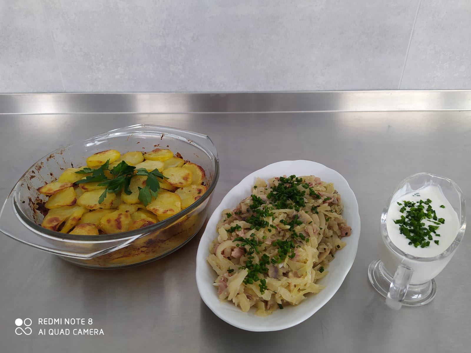 W środę uczniowie klasy 2a i 3a pod czujnym okiem Pani Ani Staniszewskiej przygotowywali zapiekankę z ziemniaków, kapustę z pieczarkami, dip koperkowy i coś na deser. Klasa 2a i część klasy 3a przygotowywała dania w domu natomiast wybrane osoby z klasy 3a przygotowywały dania w szkolnej pracowni gastronomicznej.