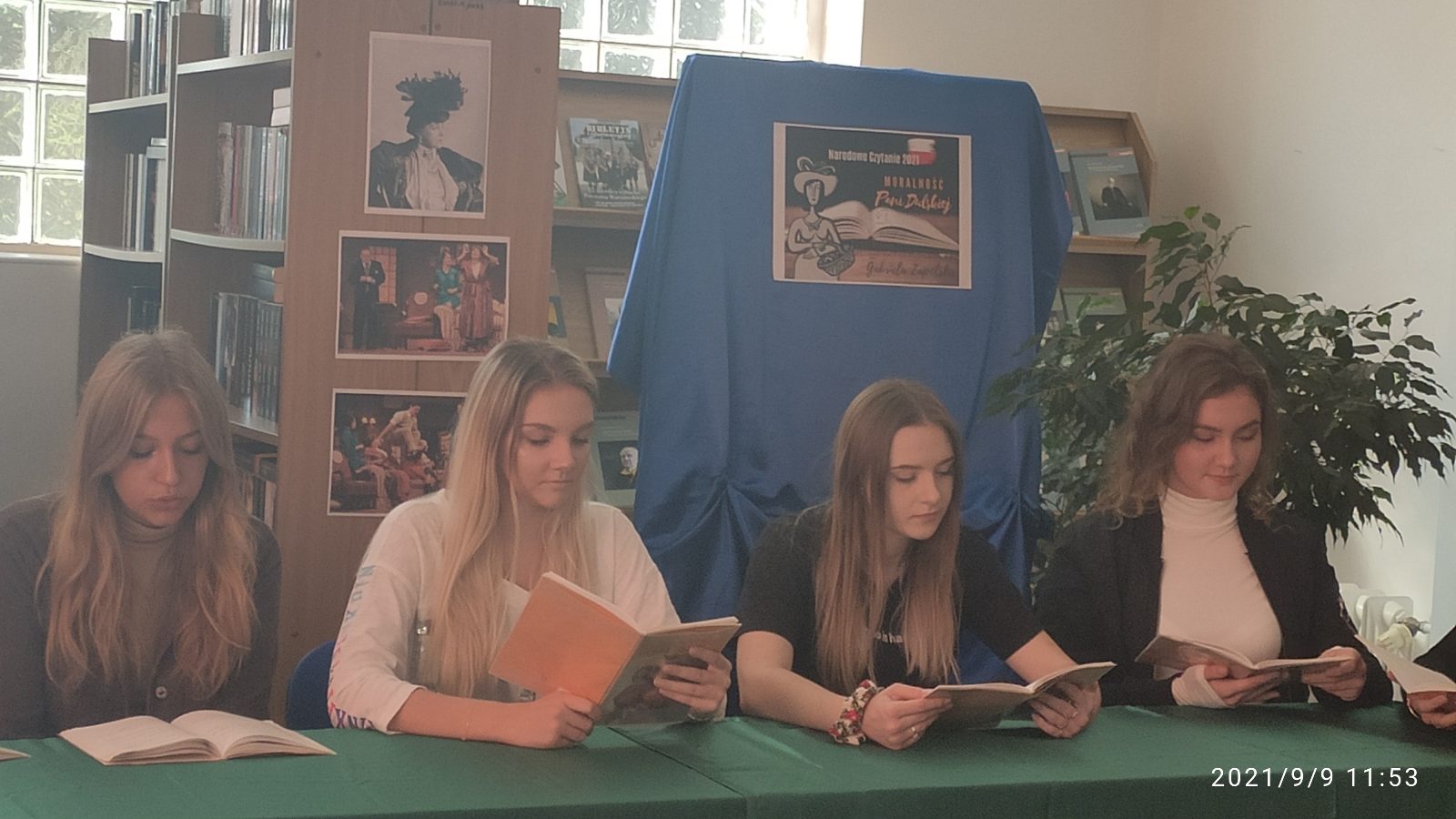 Tradycją naszej szkoły jest udział w ogólnopolskiej akcji Narodowego Czytania. Lekturą tegorocznej, jubileuszowej, dziesiątej edycji wydarzenia była „Moralność pani Dulskiej”. W atmosferę mieszczańskiego Krakowa z początku XX wieku wprowadziła nas autorka sztuki, pani Gabriela Zapolska „pisarka i …aktorka, kobita wyzwolona, emancypantka, demaskatorka fałszu i pruderii…”(w tej roli Magdalena Zemelka).