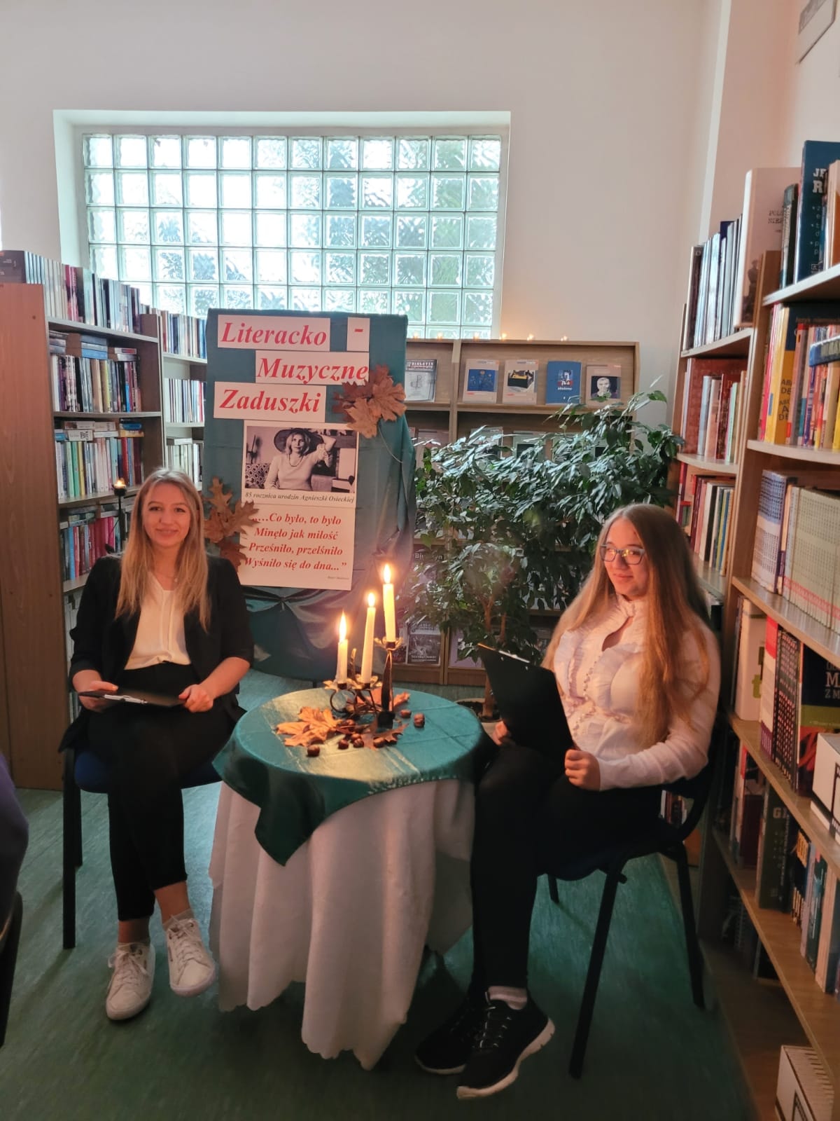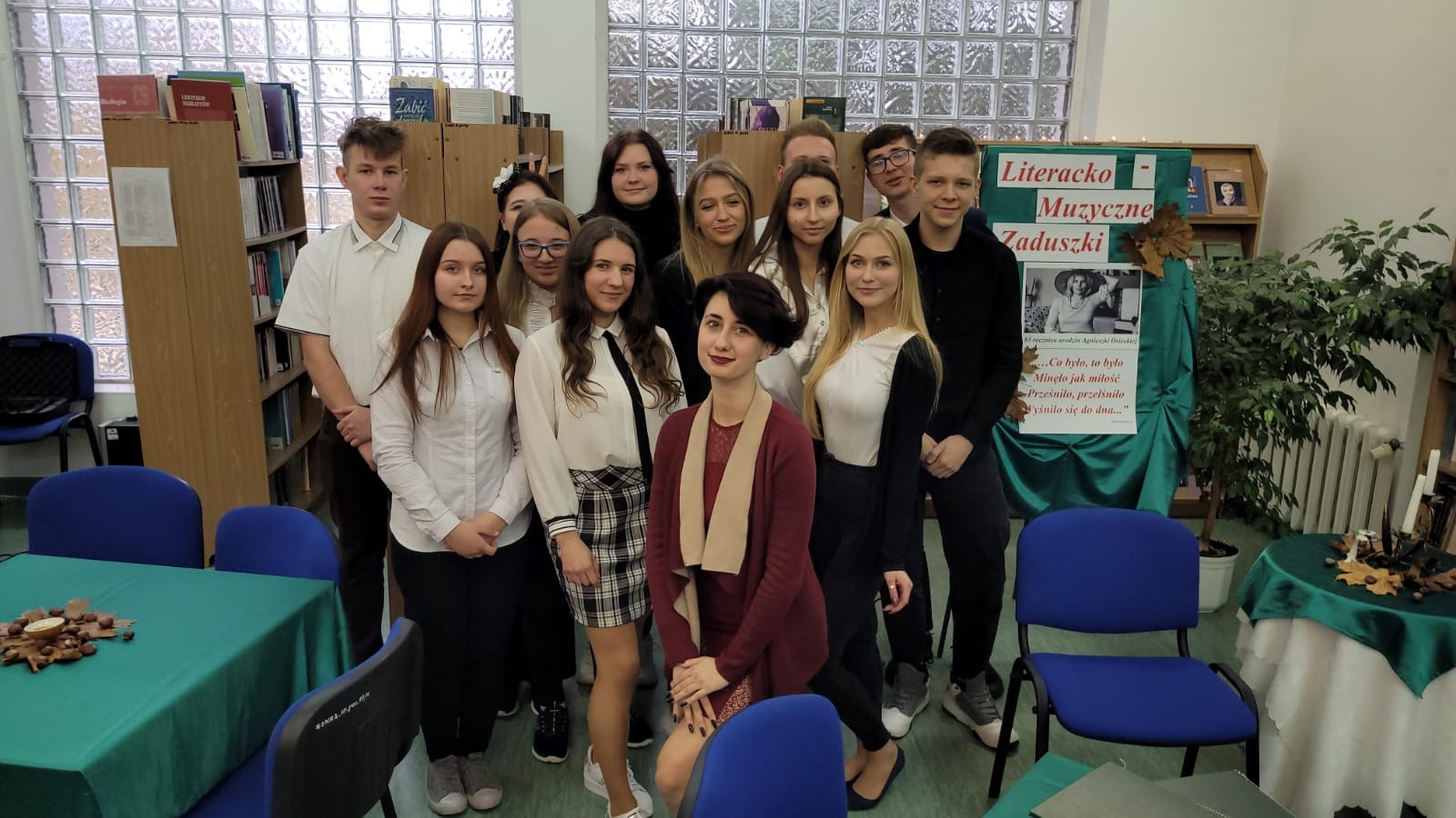 Prawdziwa, ponadczasowa artystka, niebanalna, nieuchwytna. Tylko ona potrafiła utrwalać chwile w zabawny i trafny sposób. Taka była Agnieszka Osiecka. Legendarna poetka i autorka teksów piosenek skończyłaby w tym roku 85 lat. Napisała ponad dwa tysiące tekstów piosenek. Nie była tylko poetką. Pisała również opowiadania, bajki, książki fabularne, była również autorką spektakli teatralnychi telewizyjnych. Dnia 5 listopada w jesiennej atmosferze i zaduszkowym nastroju w bibliotece szkolnej odbyło się literacko-muzyczne spotkanie poświęcone pamięci i twórczości Agnieszki Osieckiej.