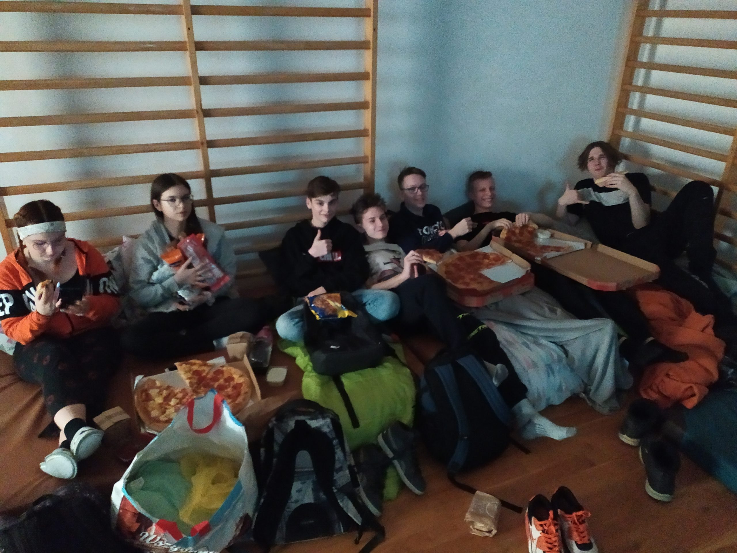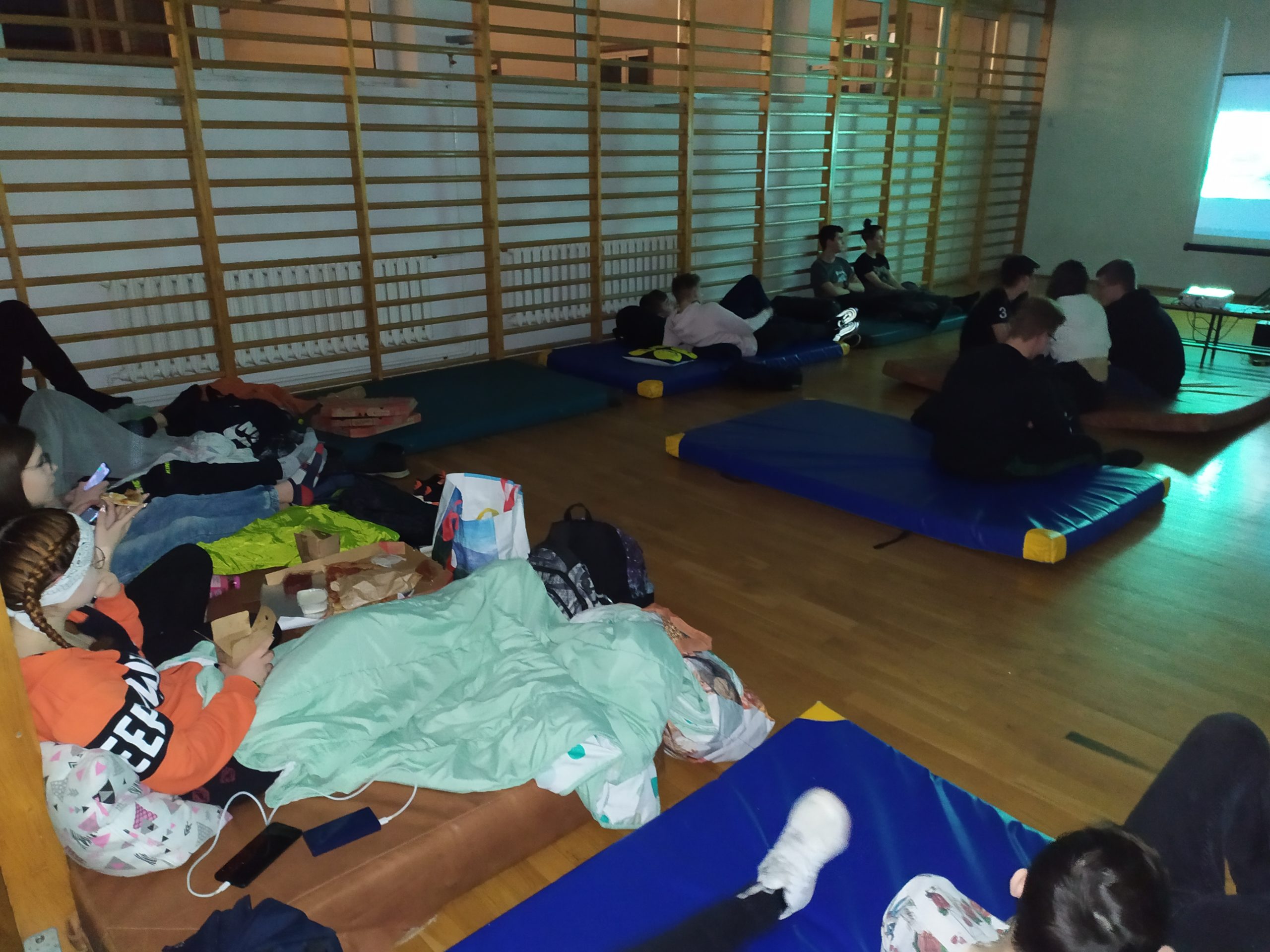Opiekunami na nocnym spotkaniu byli nauczyciele: Pani mgr Małgorzata Chełmińska, Pani mgr inż. Paulina Skorupa, Pan mgr inż. Radosław Skorupa, Pan mgr Andrzej Mścichowski, Pani mgr Sylwia Kuźniak. Zachęcamy do obejrzenia fotorelacji