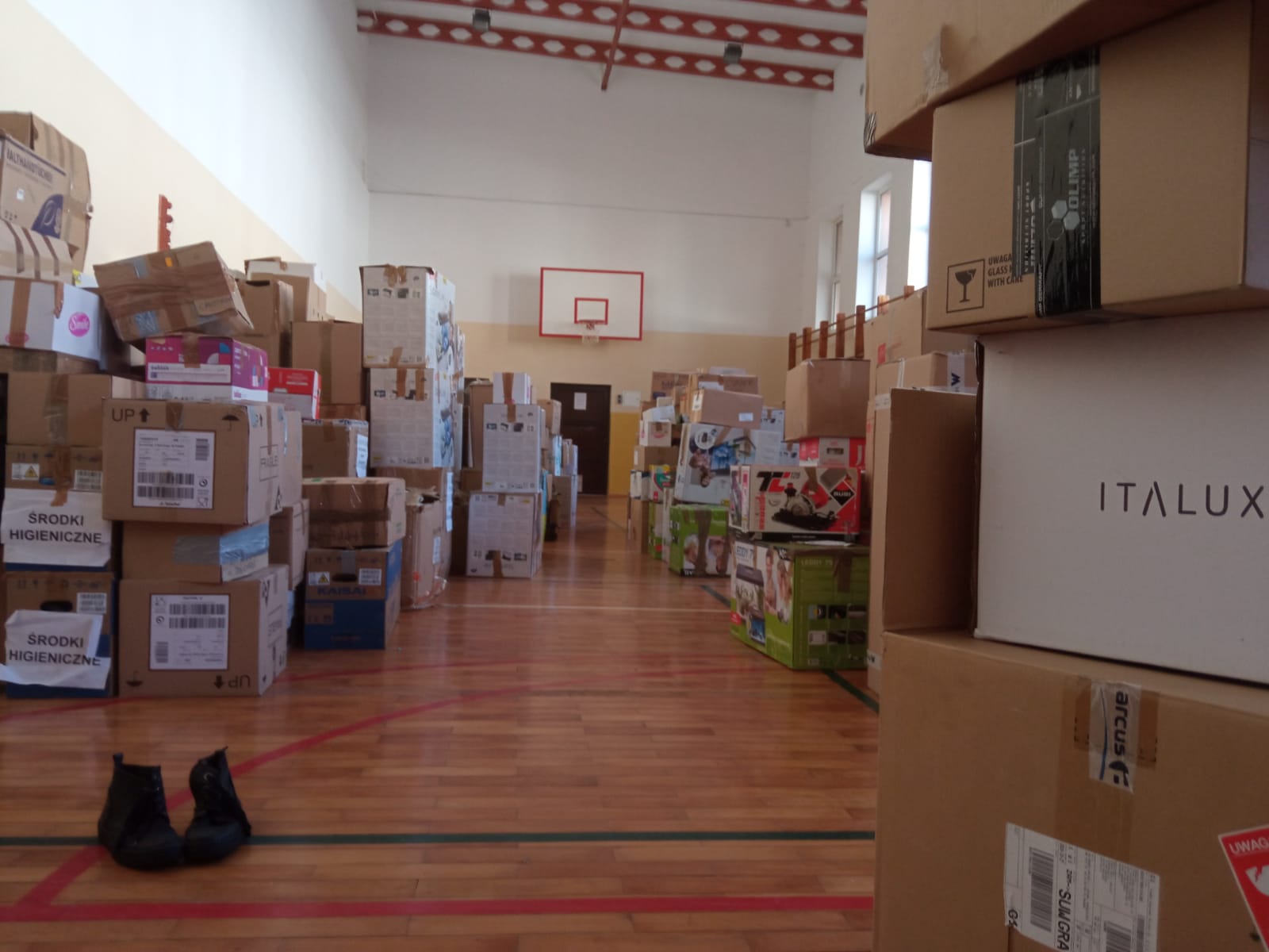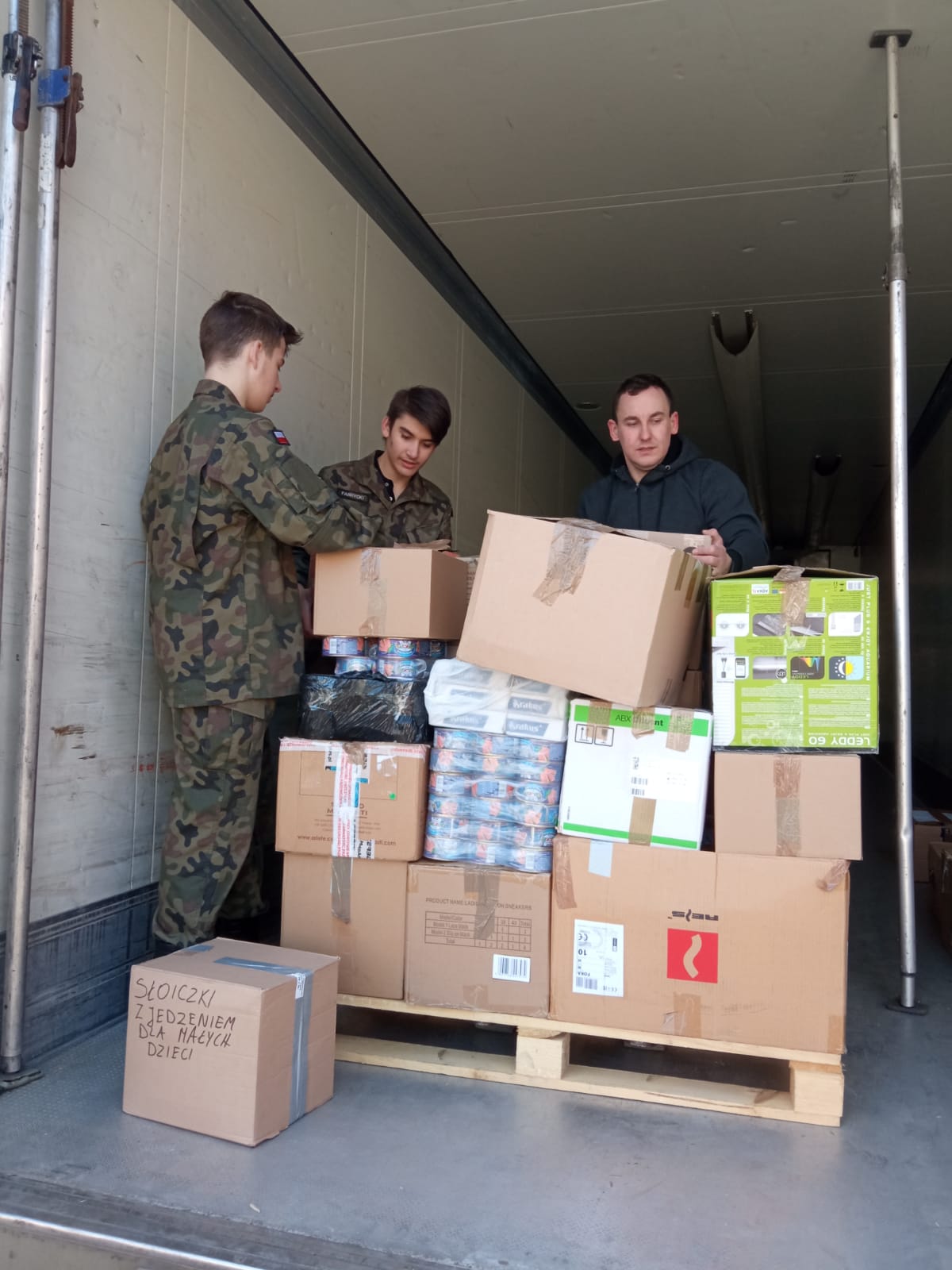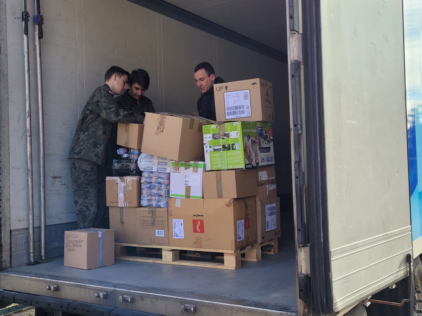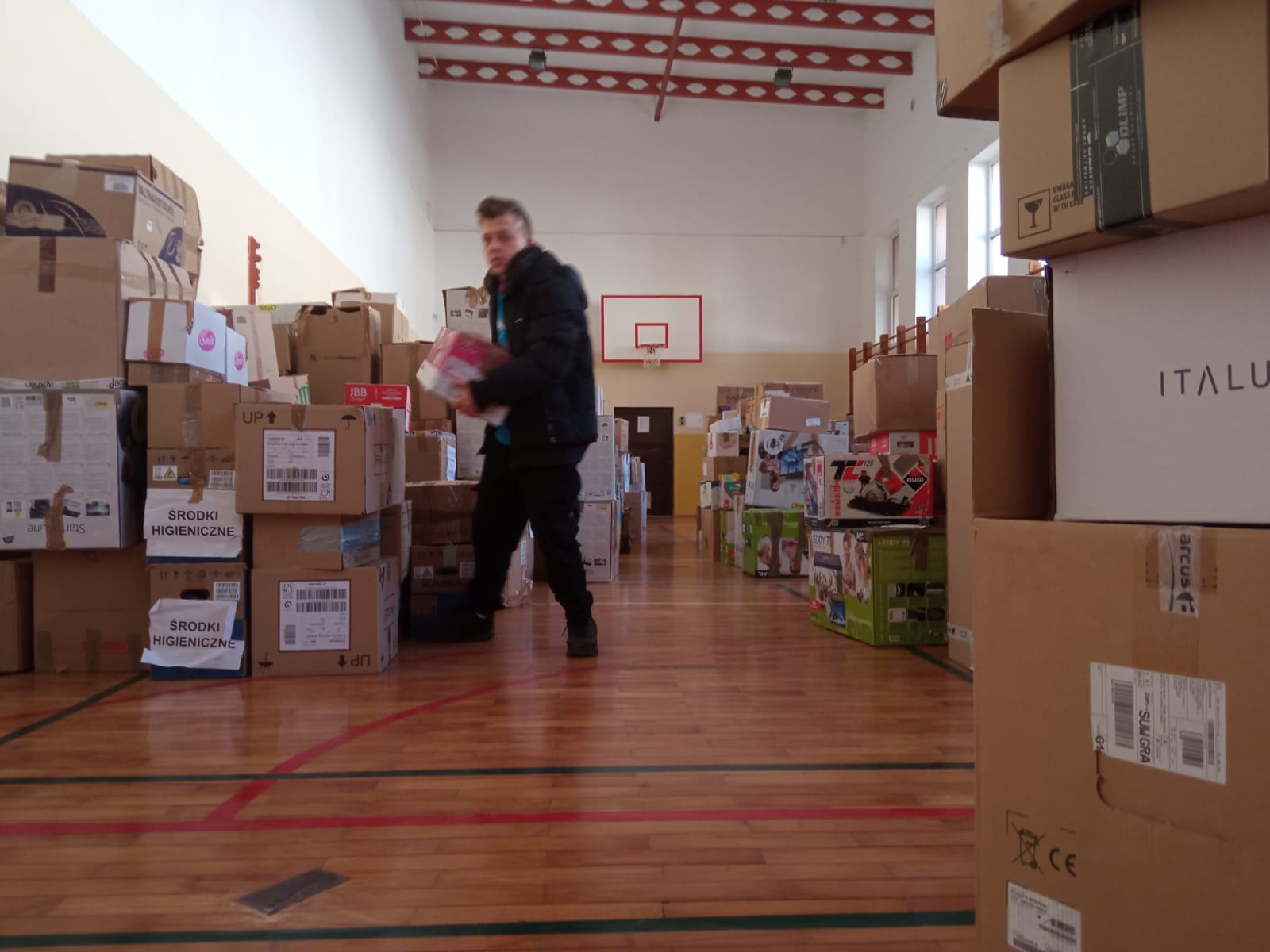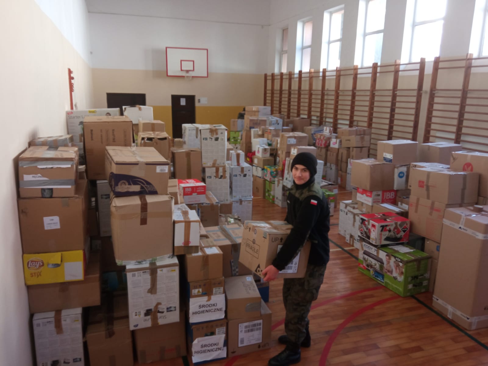 uczestniczyli w sortowaniu, pakowaniu i przenoszeniu darów, które trafią do osób poszkodowanych przez wojnę na Ukrainie.