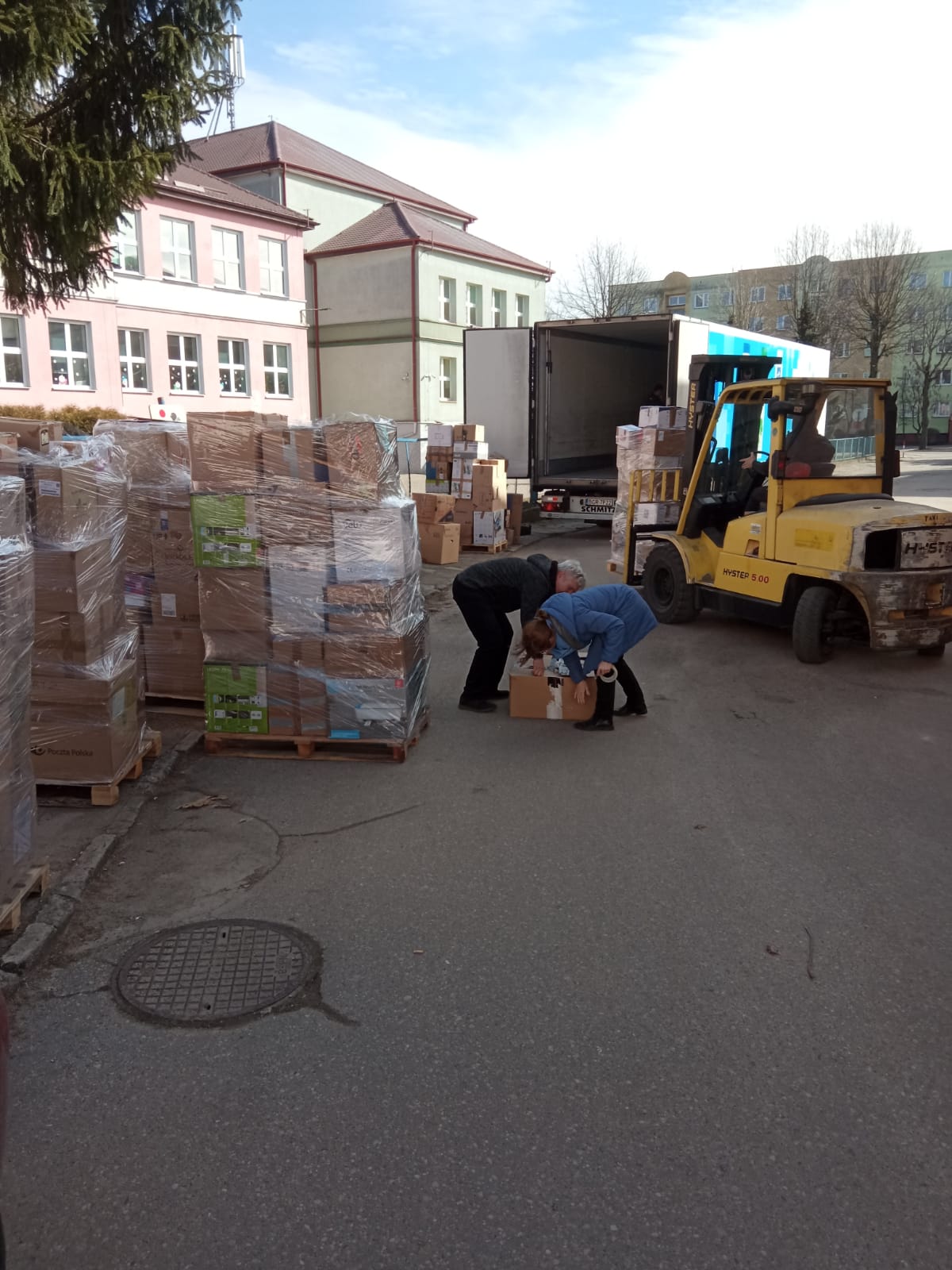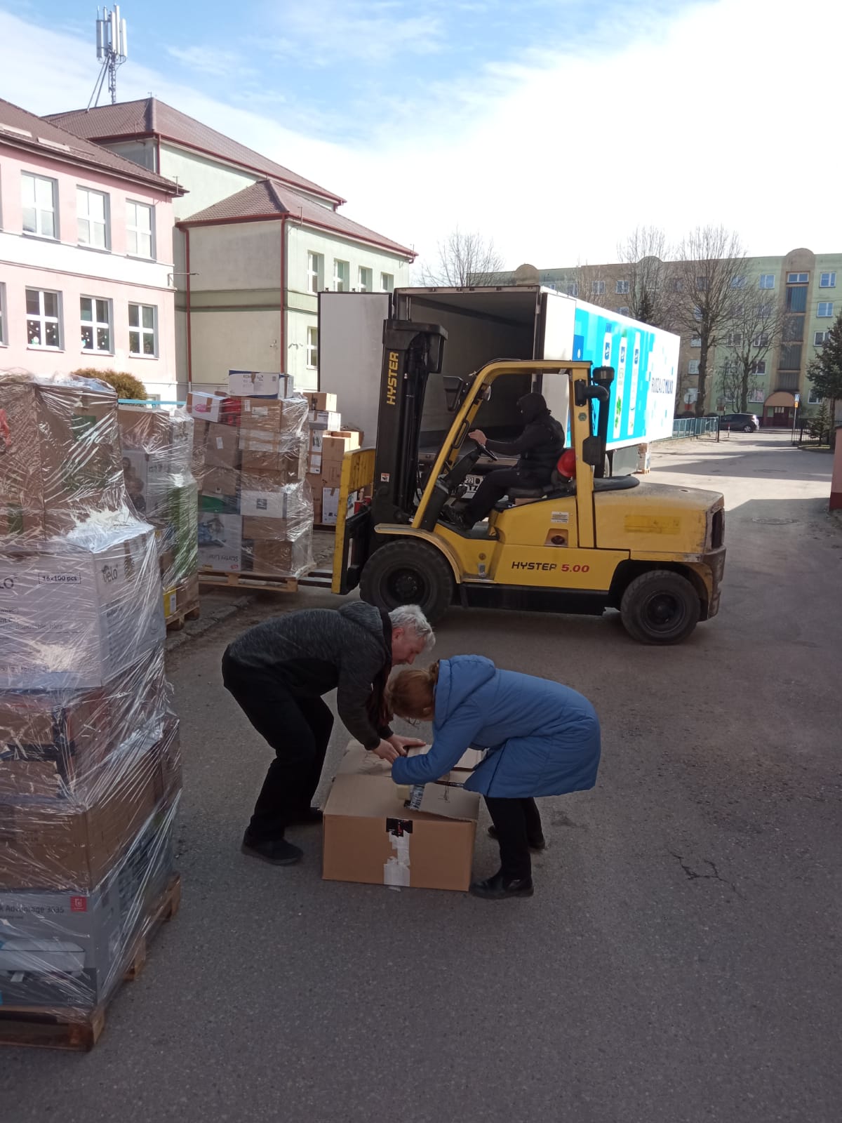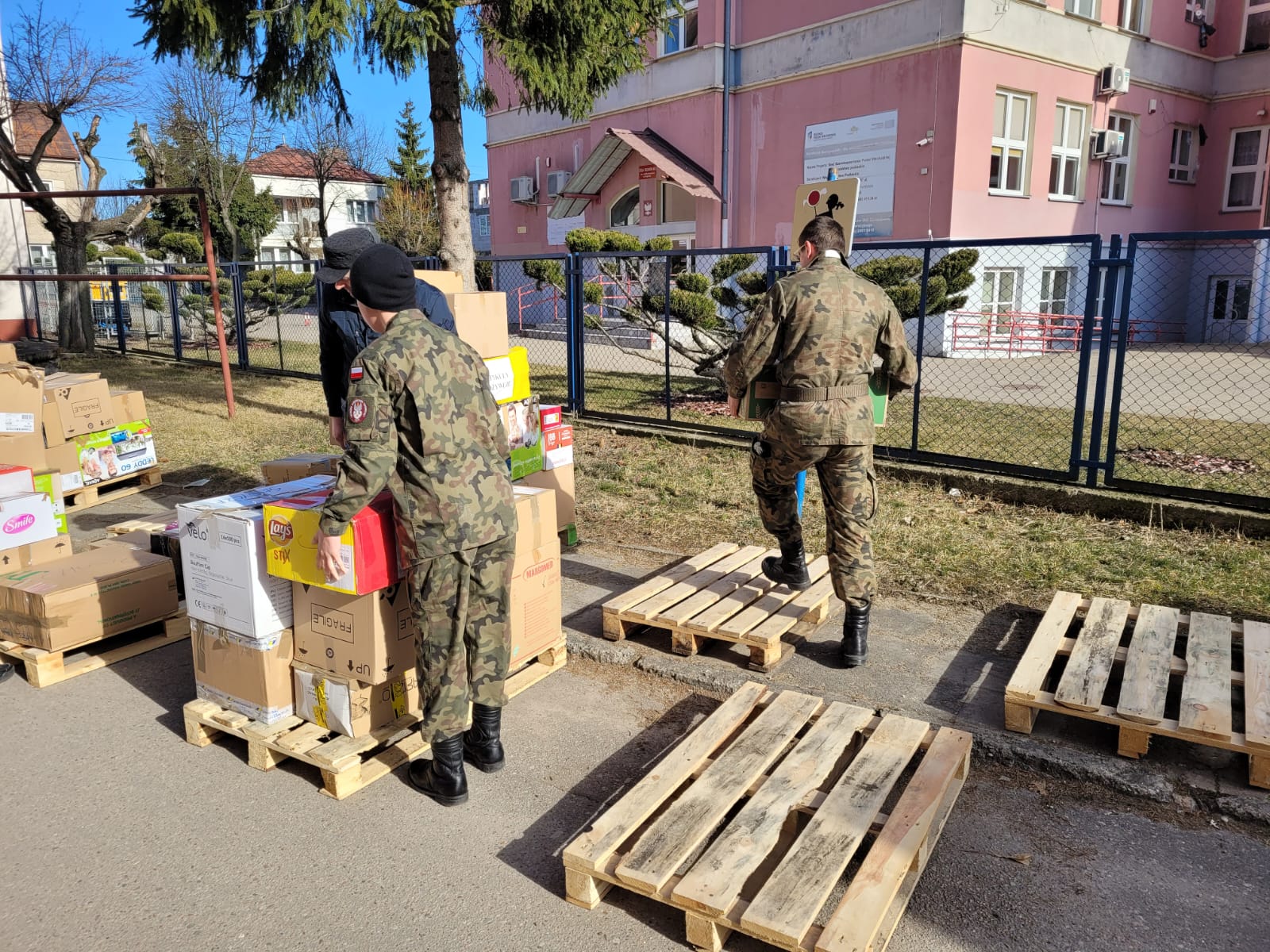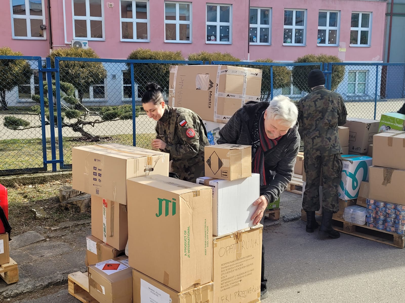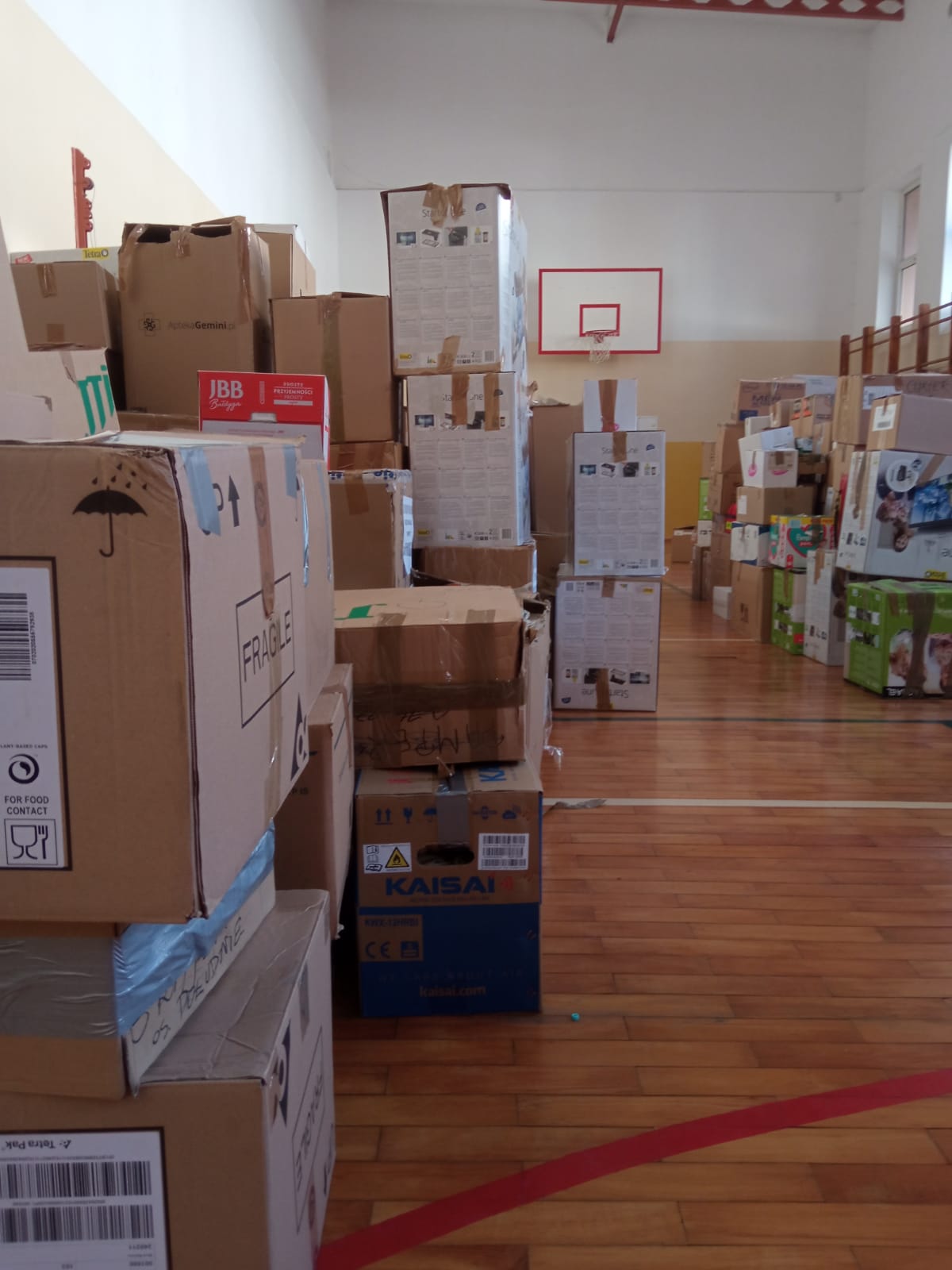 uczestniczyli w sortowaniu, pakowaniu i przenoszeniu darów, które trafią do osób poszkodowanych przez wojnę na Ukrainie.