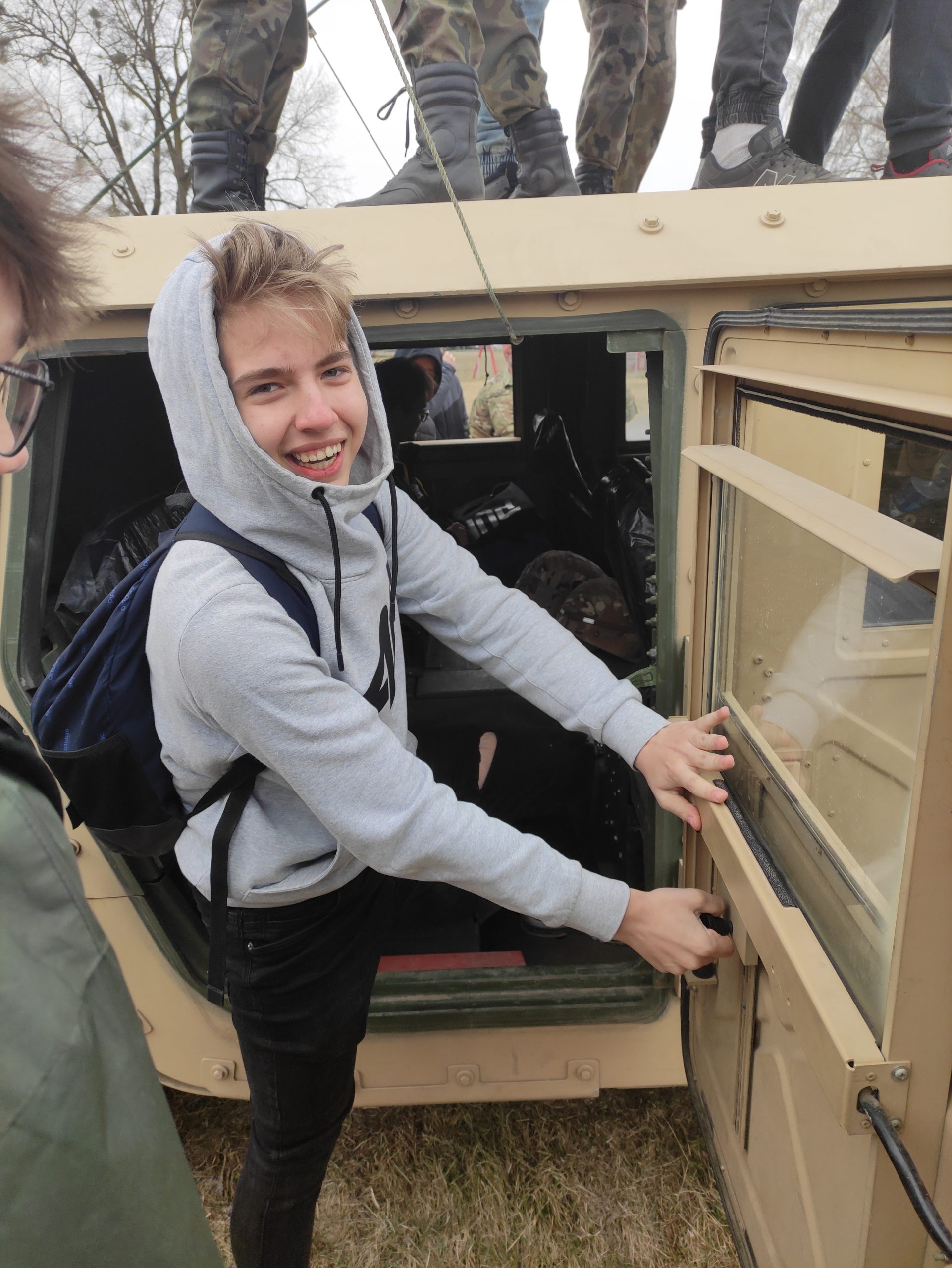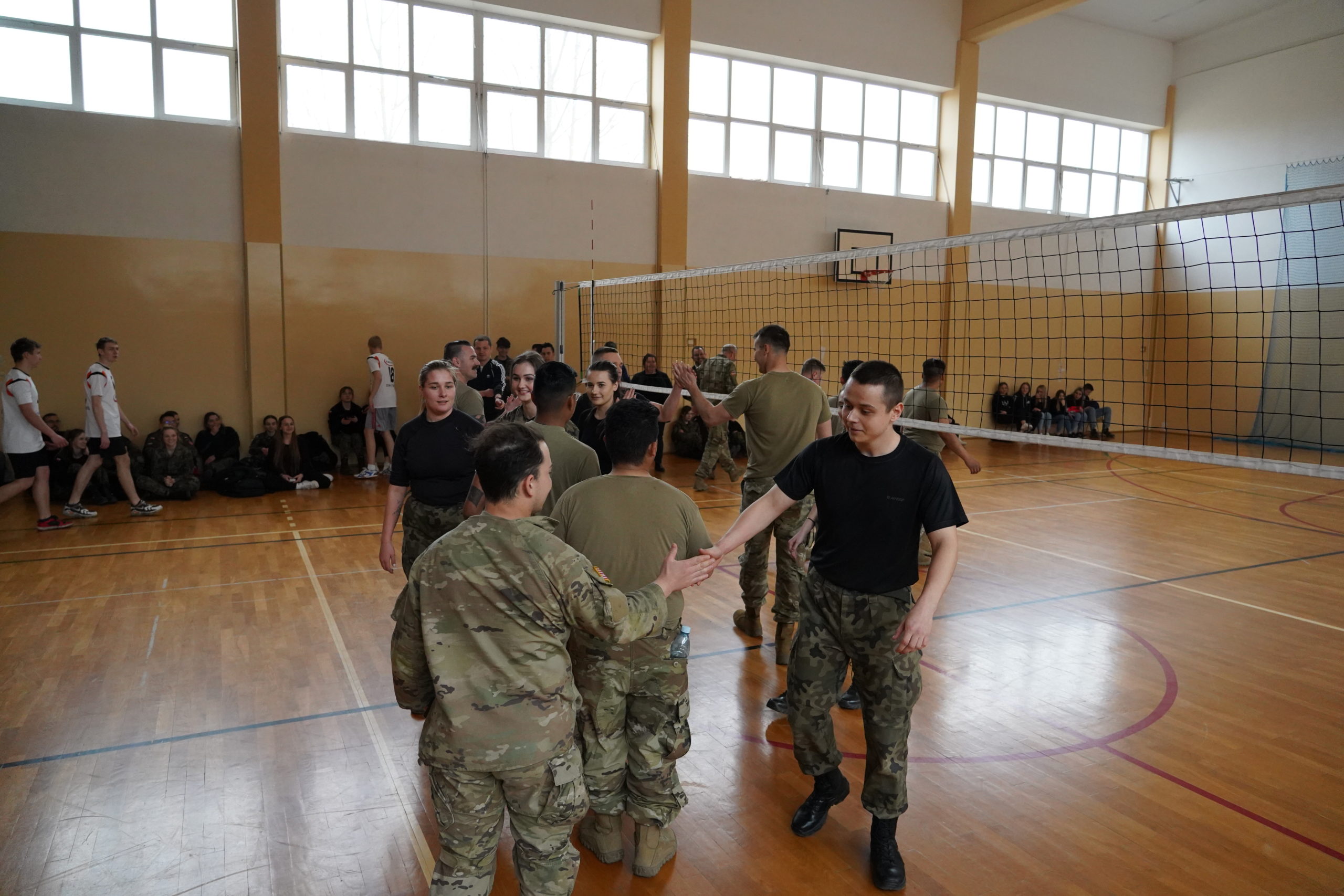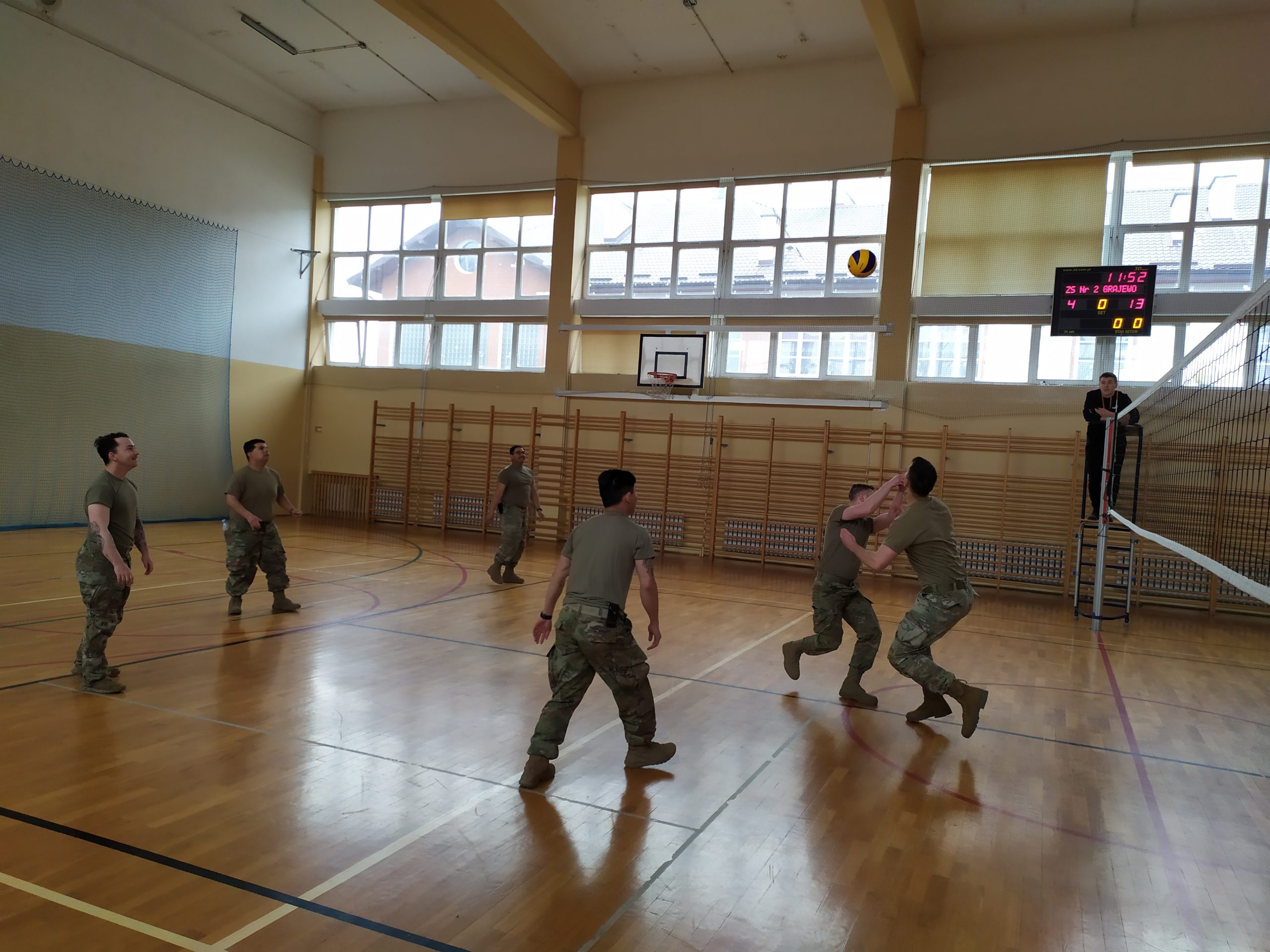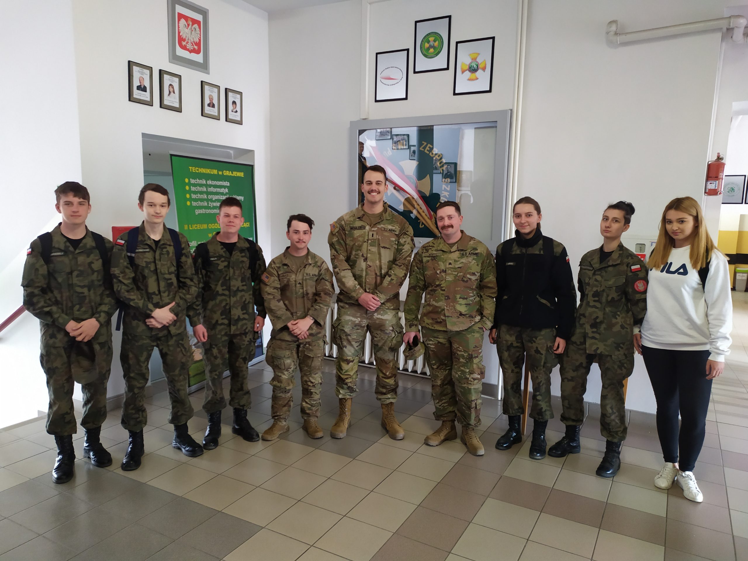 04.2022r. w ramach dobrej współpracy odwiedziło nas kilku żołnierzy z kompanii alpha stacjonującej w Bemowie Piskim. Grupa żołnierzy pod komendą kapitana Jeffreya Hansona zaprezentowała swoje wozy bojowe. Uczniowie mieli okazję porozmawiać o służbie w wojsku w USA, „podszlifować” j. angielski w rozmowach oraz zrobić sobie wspólne zdjęcie. Zwieńczeniem spotkania były dwa pokazowe mecze piłki siatkowej. Oba mecze zakończyły się zwycięstwem uczniów Zespołu Szkół Nr 2 im. 9. PSK w Grajewie.