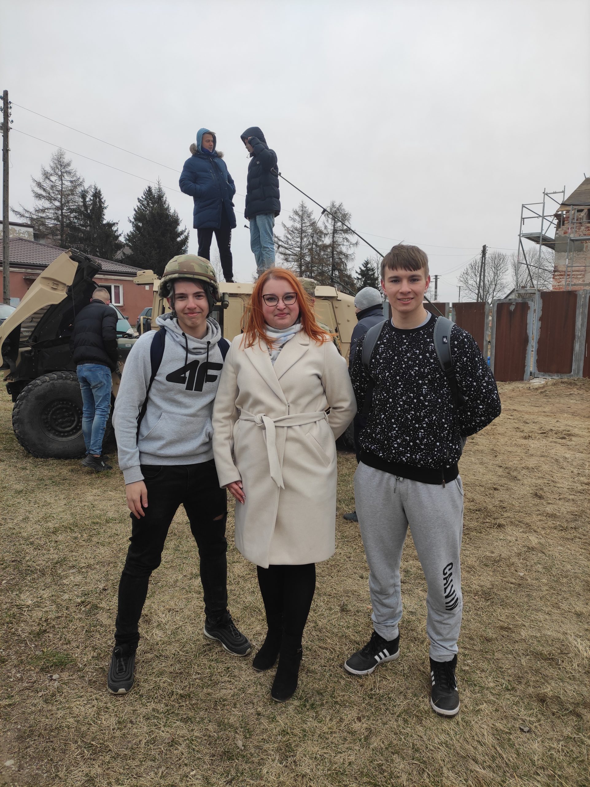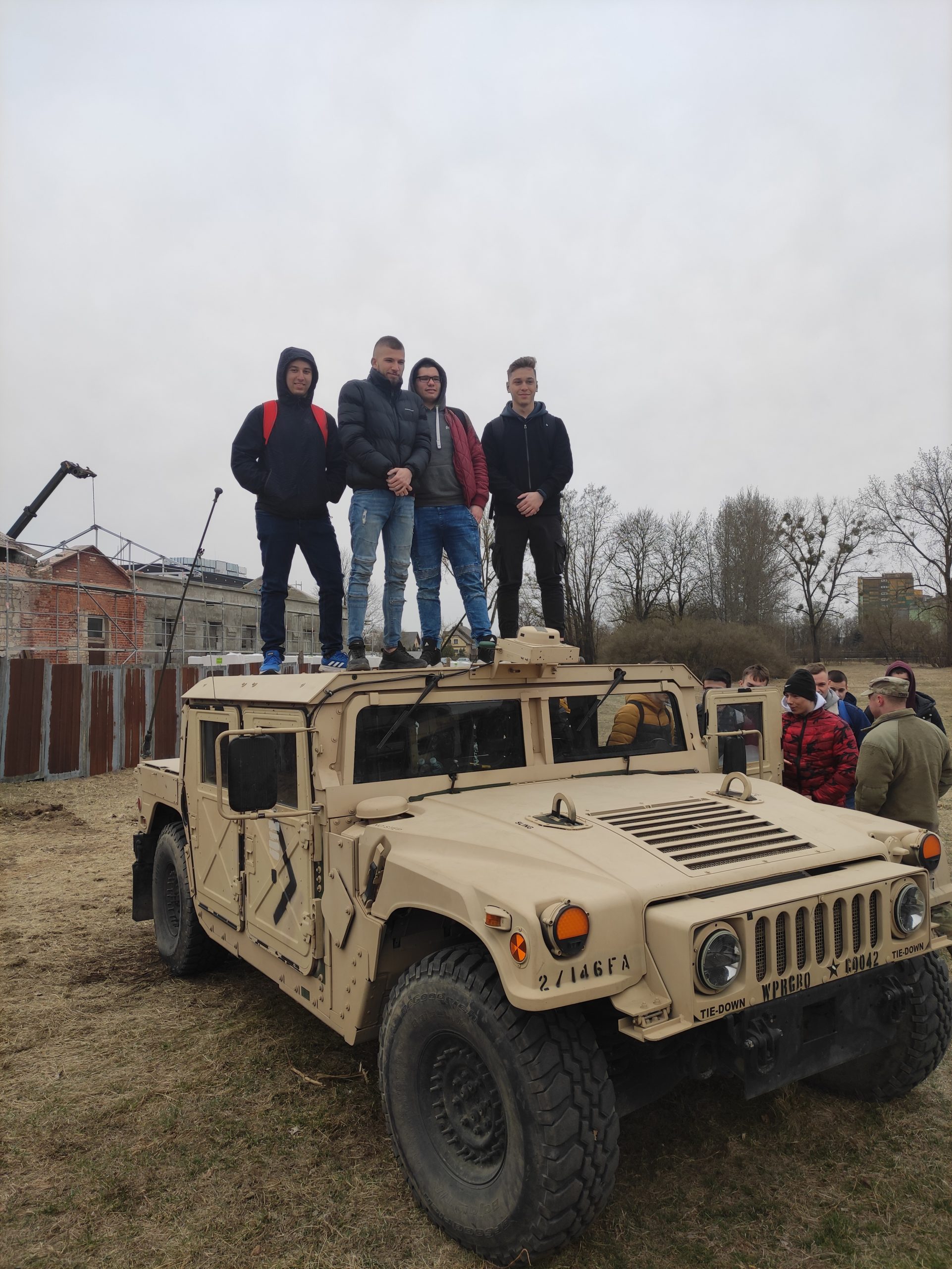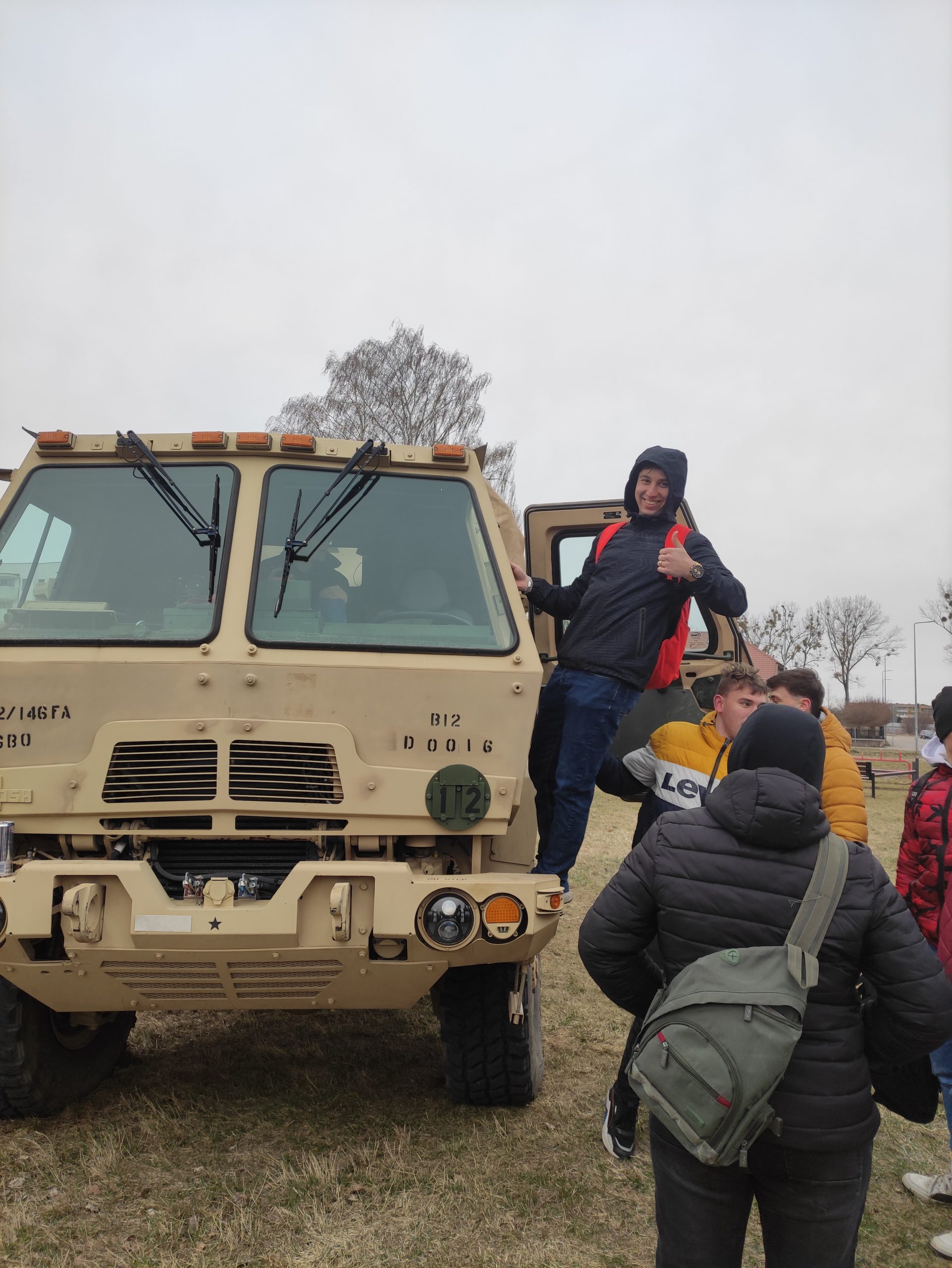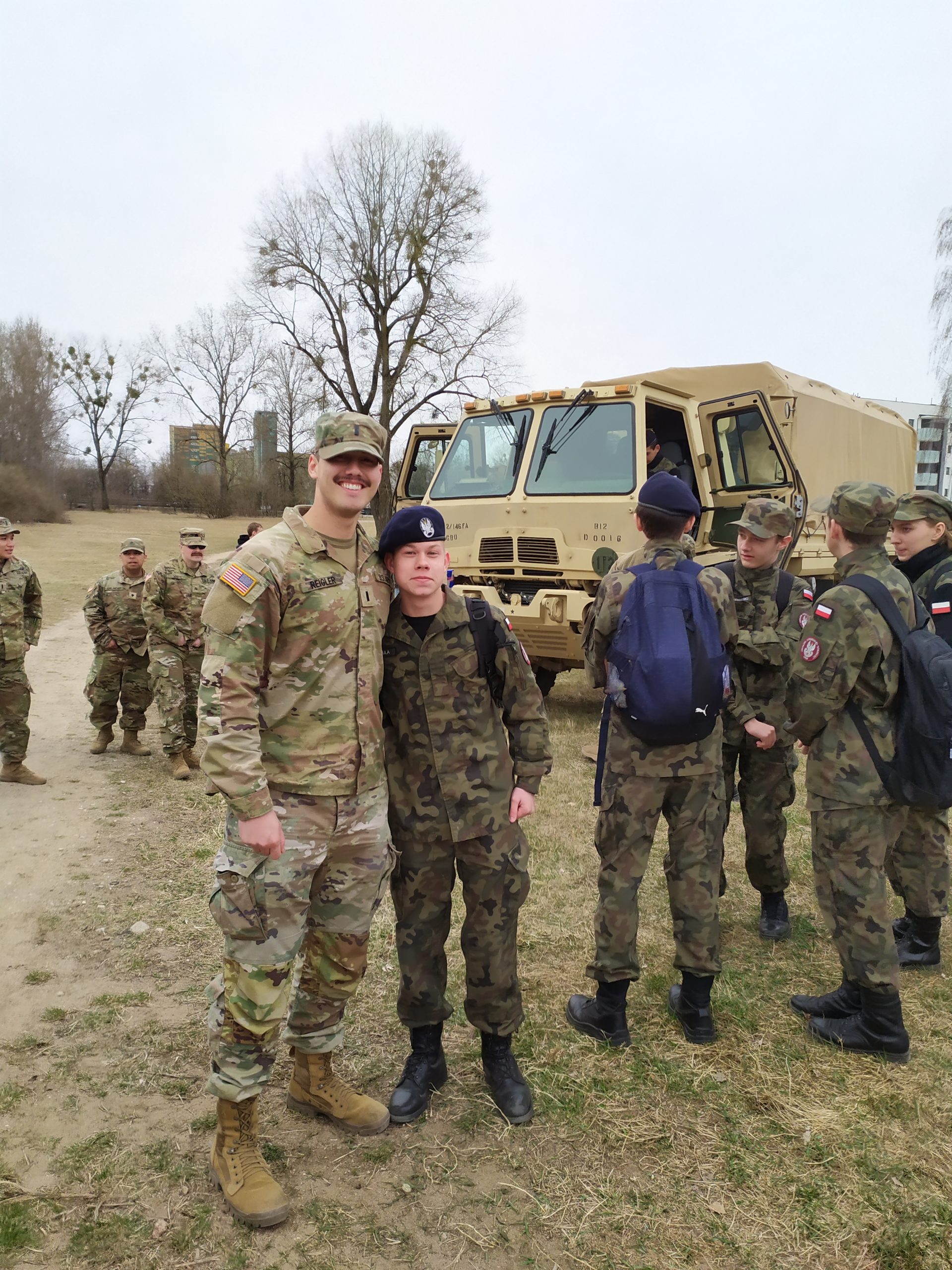 01.04.2022r. w ramach dobrej współpracy odwiedziło nas kilku żołnierzy z kompanii alpha stacjonującej w Bemowie Piskim. Grupa żołnierzy pod komendą kapitana Jeffreya Hansona zaprezentowała swoje wozy bojowe. Uczniowie mieli okazję porozmawiać o służbie w wojsku w USA, „podszlifować” j. angielski w rozmowach oraz zrobić sobie wspólne zdjęcie. Zwieńczeniem spotkania były dwa pokazowe mecze piłki siatkowej.