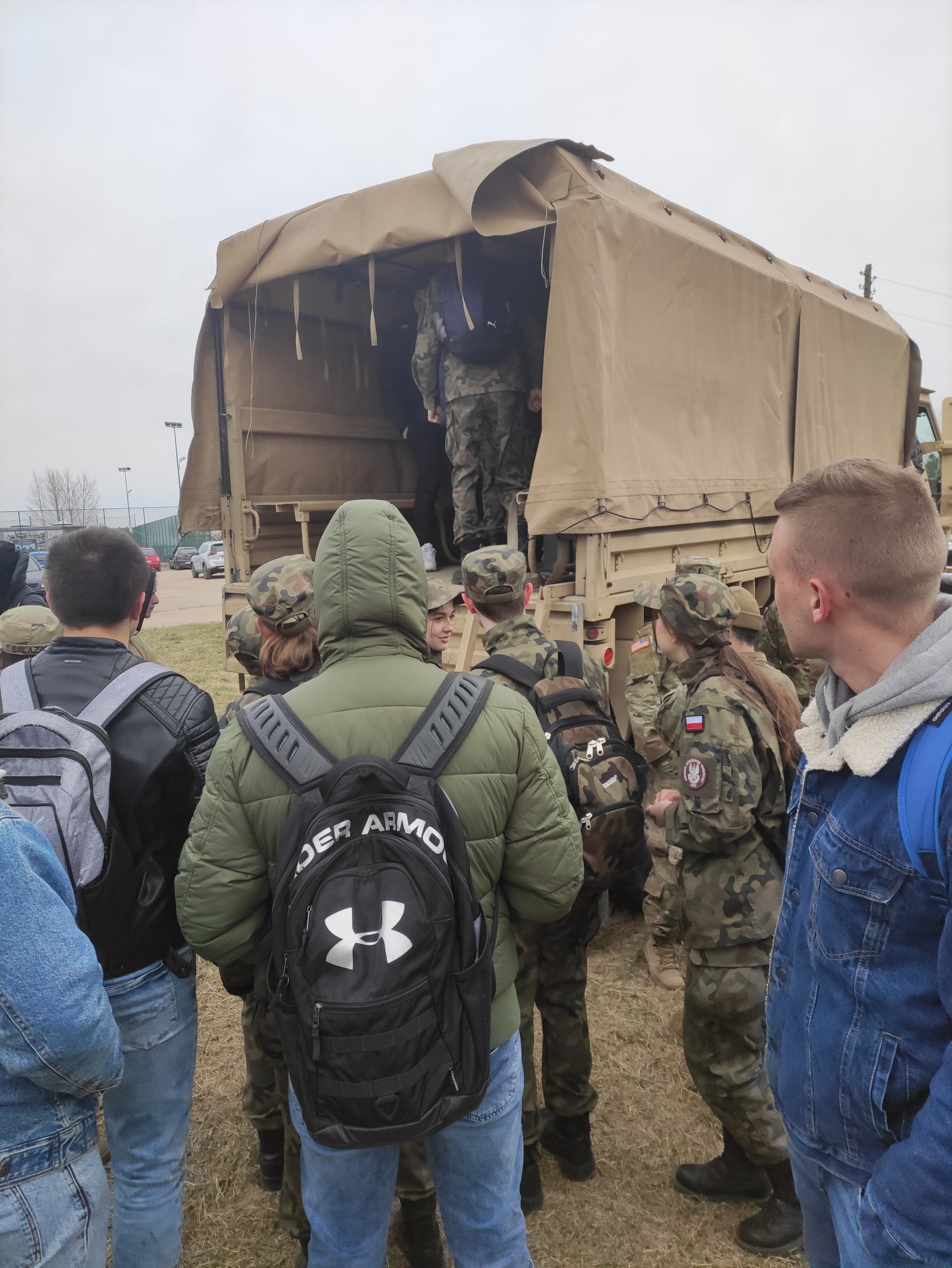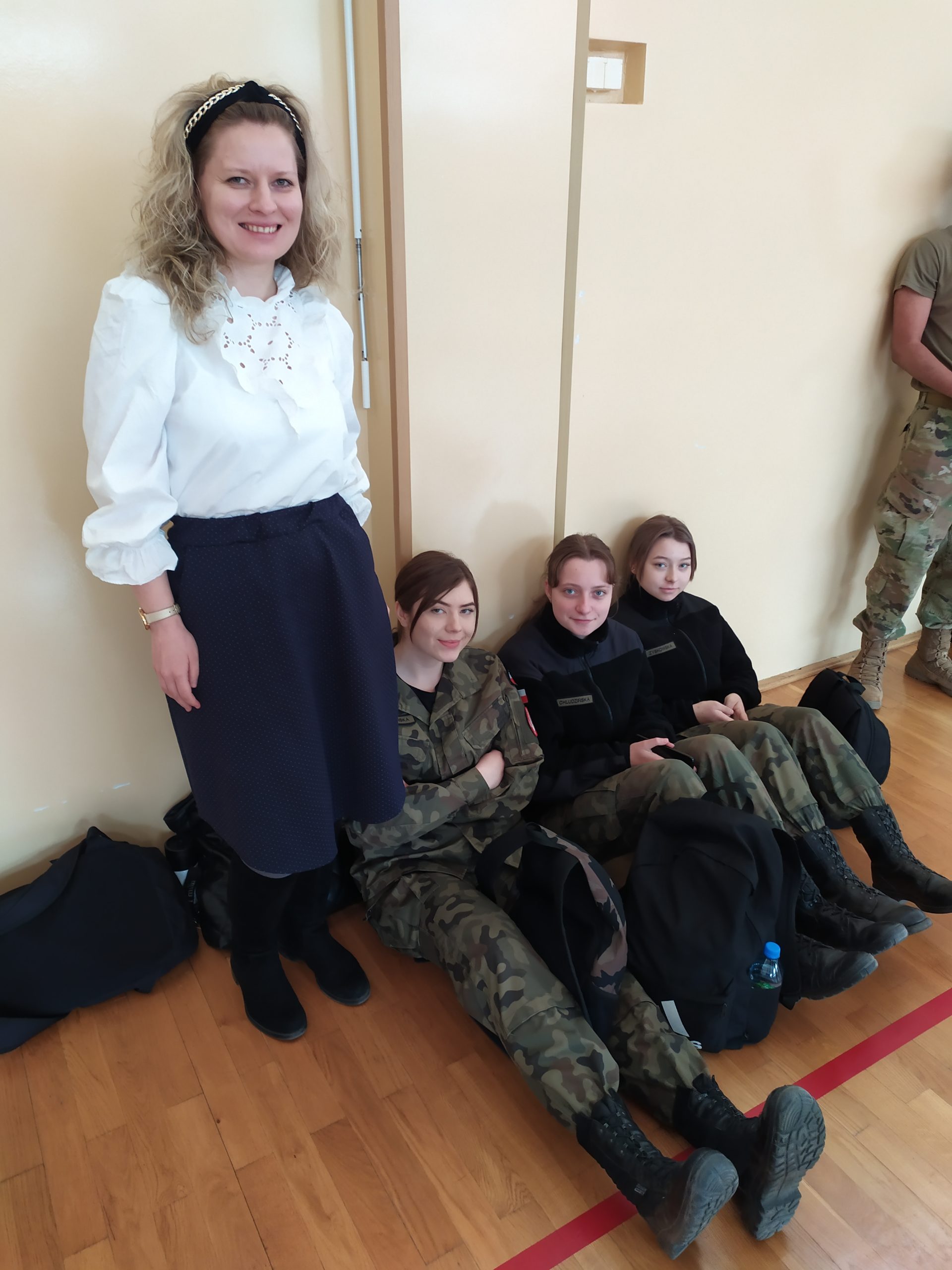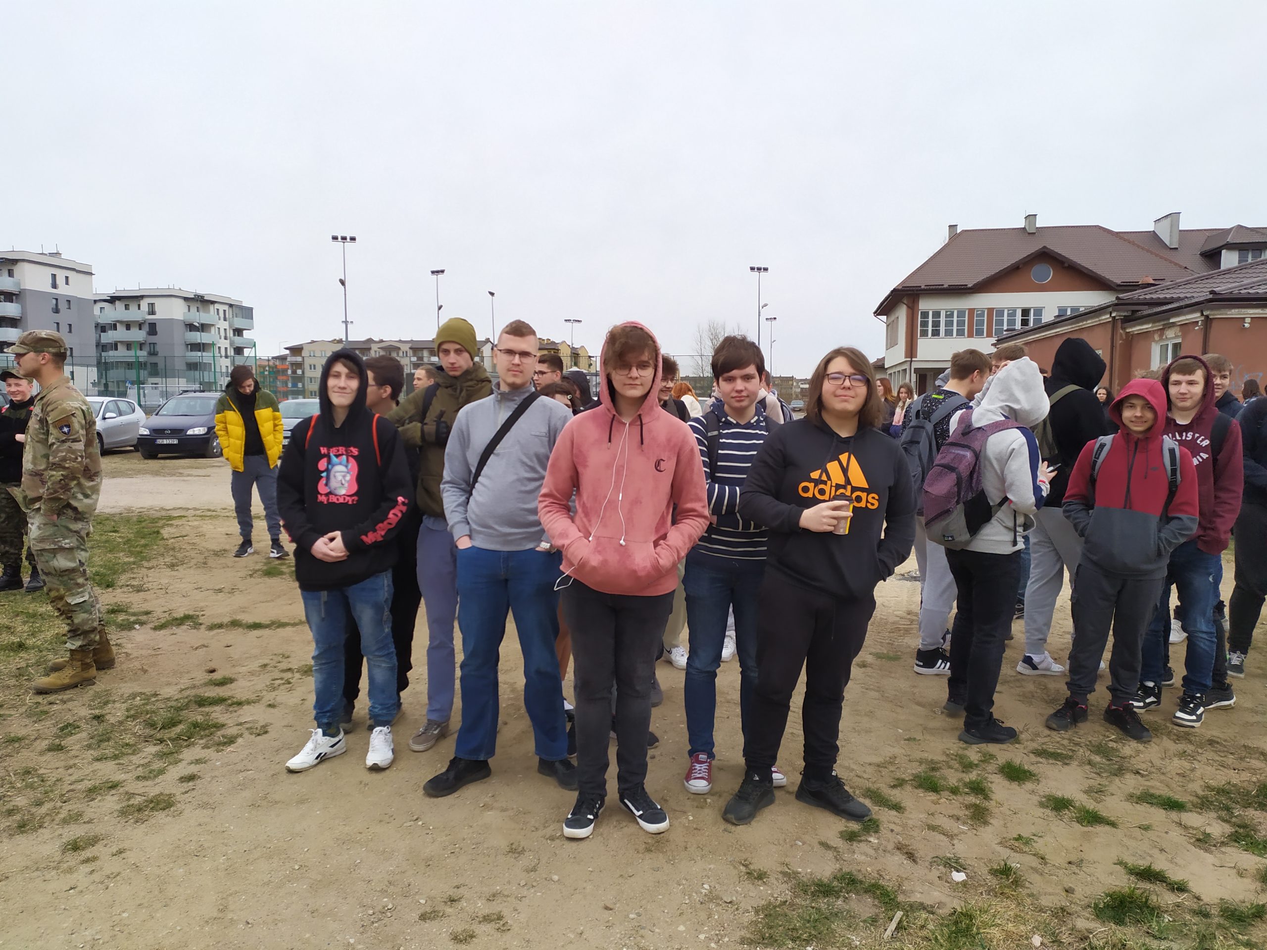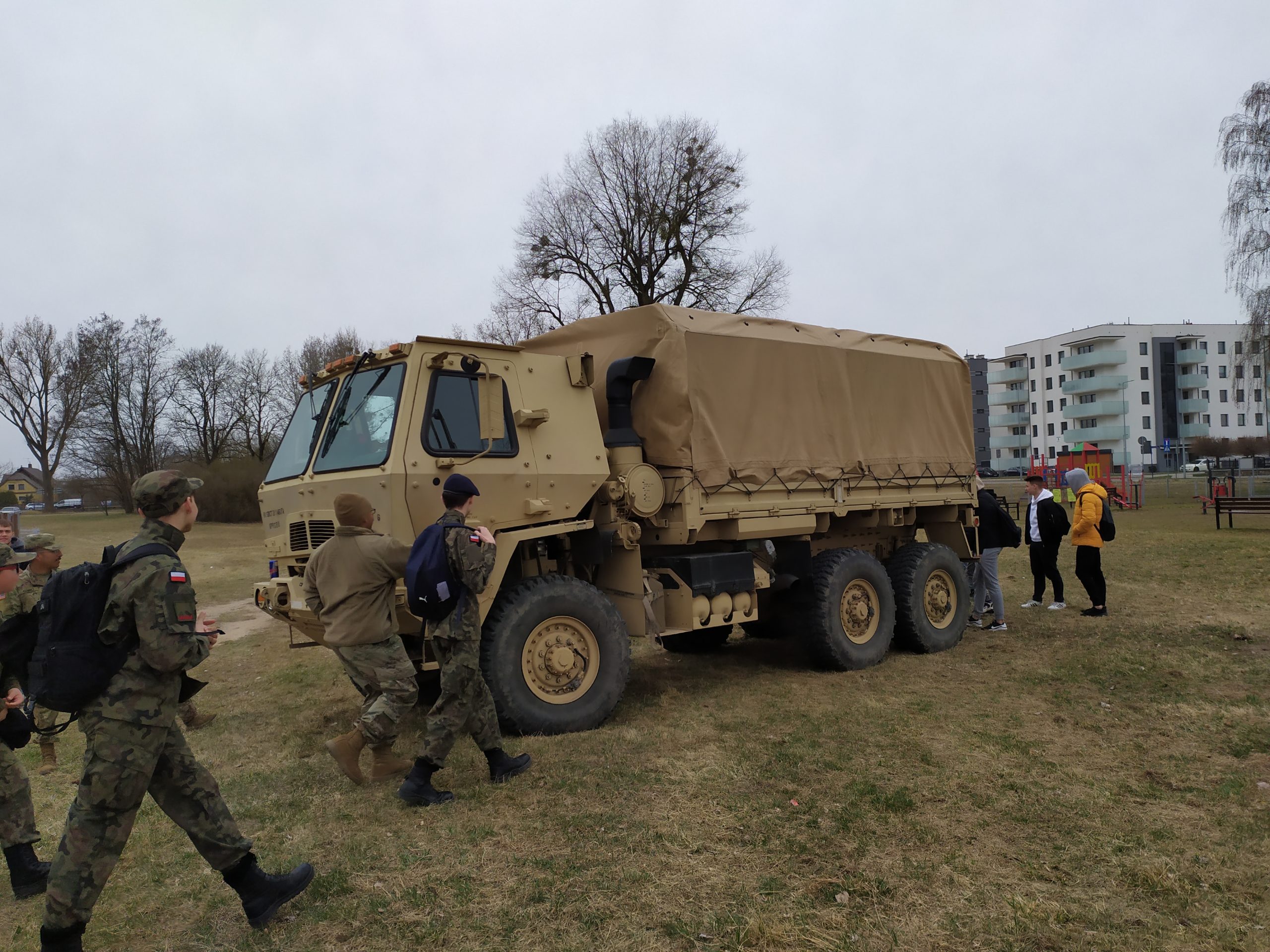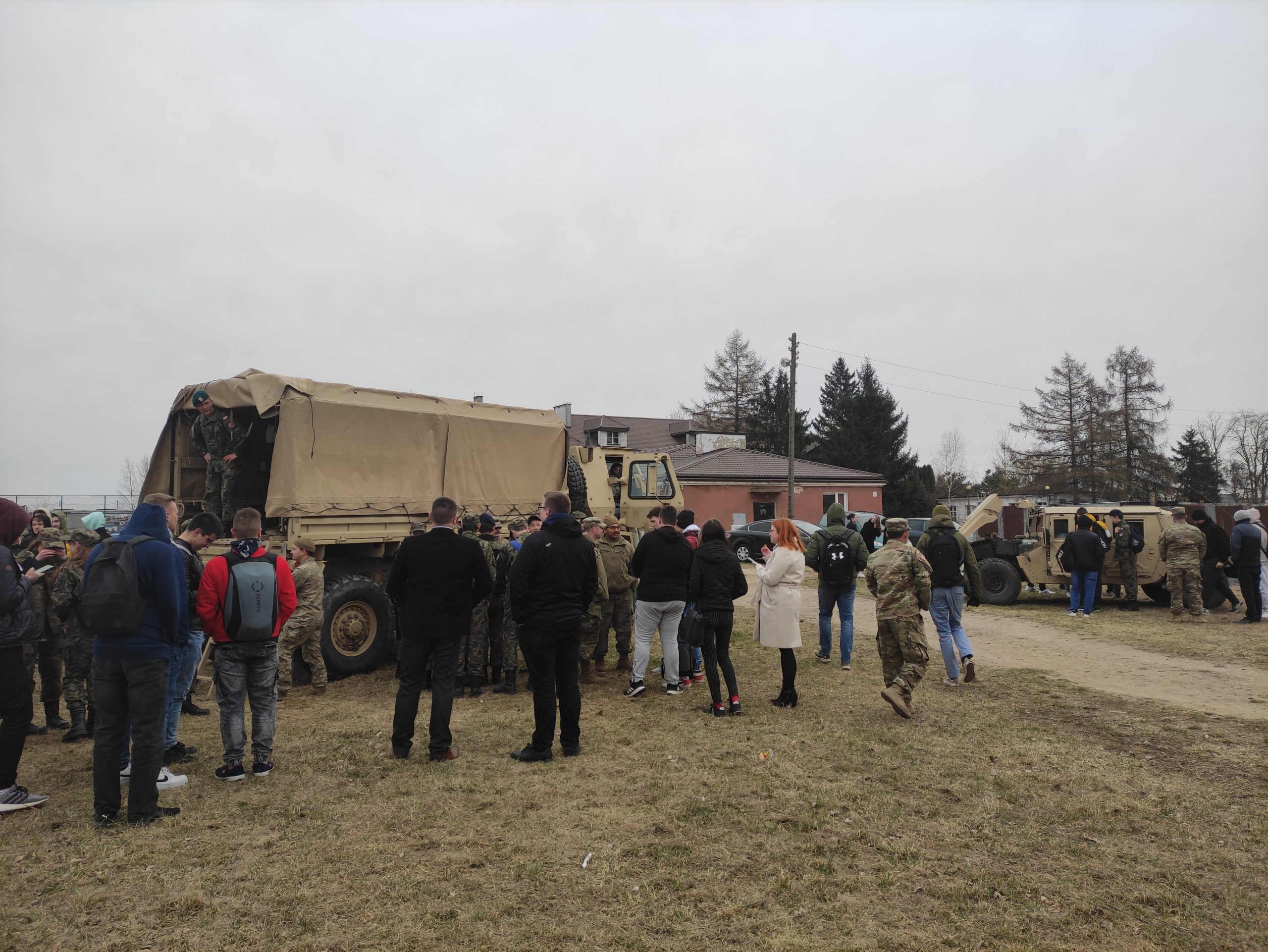 01.04.2022r. w ramach dobrej współpracy odwiedziło nas kilku żołnierzy z kompanii alpha stacjonującej w Bemowie Piskim. Grupa żołnierzy pod komendą kapitana Jeffreya Hansona zaprezentowała swoje wozy bojowe. Uczniowie mieli okazję porozmawiać o służbie w wojsku w USA, „podszlifować” j. angielski w rozmowach oraz zrobić sobie wspólne zdjęcie. Zwieńczeniem spotkania były dwa pokazowe mecze piłki siatkowej.