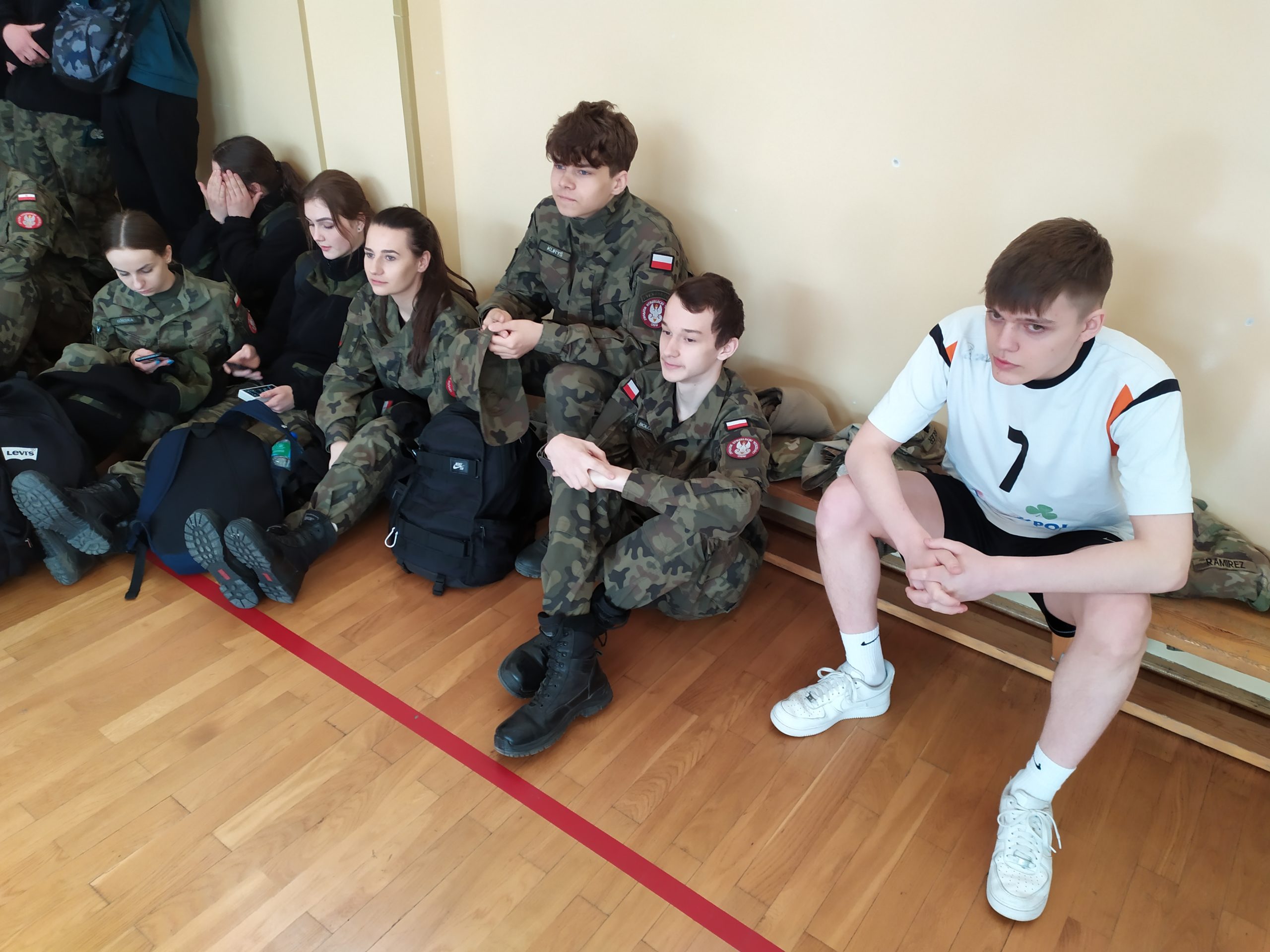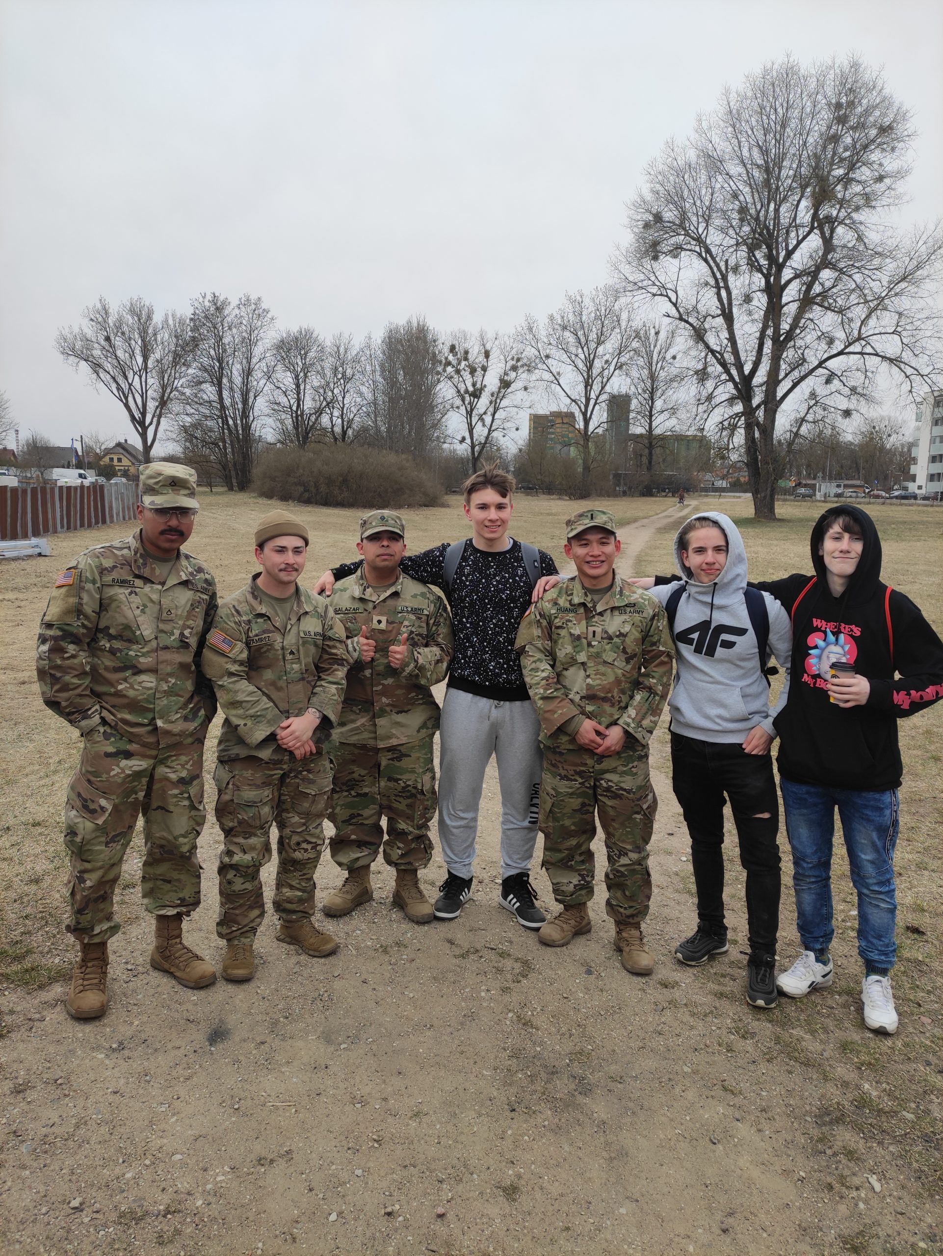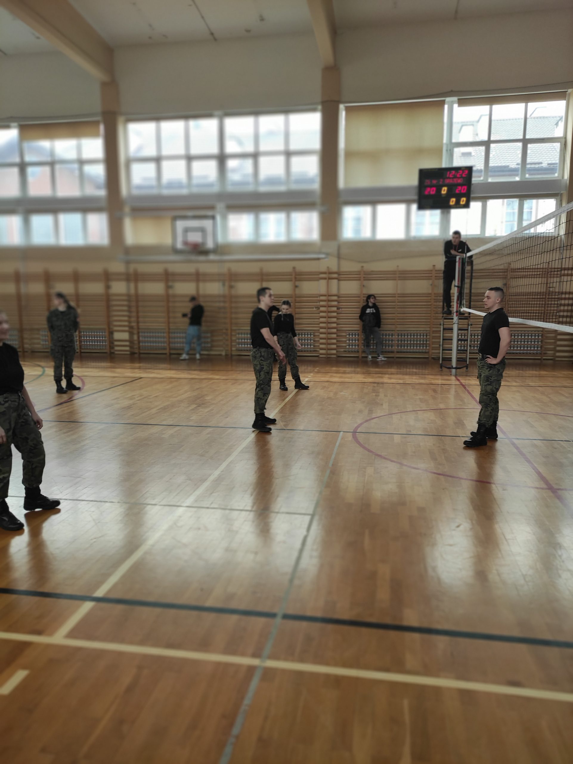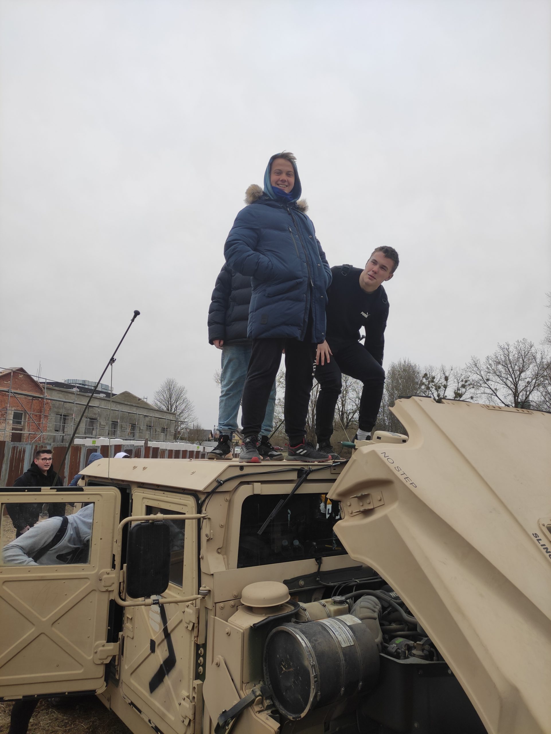 01.04.2022r. w ramach dobrej współpracy odwiedziło nas kilku żołnierzy z kompanii alpha stacjonującej w Bemowie Piskim. Grupa żołnierzy pod komendą kapitana Jeffreya Hansona zaprezentowała swoje wozy bojowe. Uczniowie mieli okazję porozmawiać o służbie w wojsku w USA, „podszlifować” j. angielski w rozmowach oraz zrobić sobie wspólne zdjęcie. Zwieńczeniem spotkania były dwa pokazowe mecze piłki siatkowej.