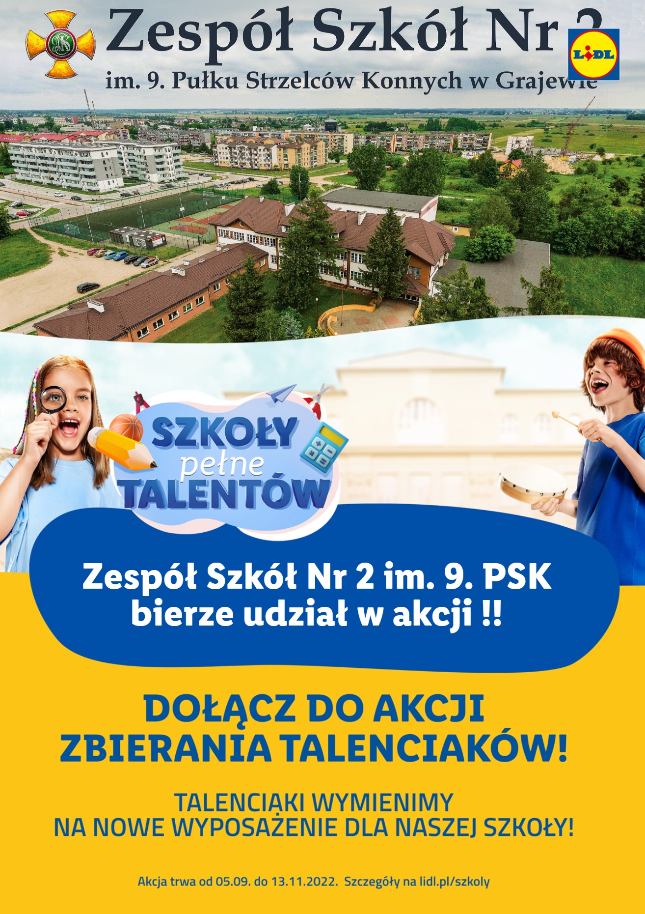ZS Nr 2 im. 9. PSK w Grajewie bierze udział w akcji Lidl „Szkoły pełne talentów” w związku z czym zbieramy talenciaki.