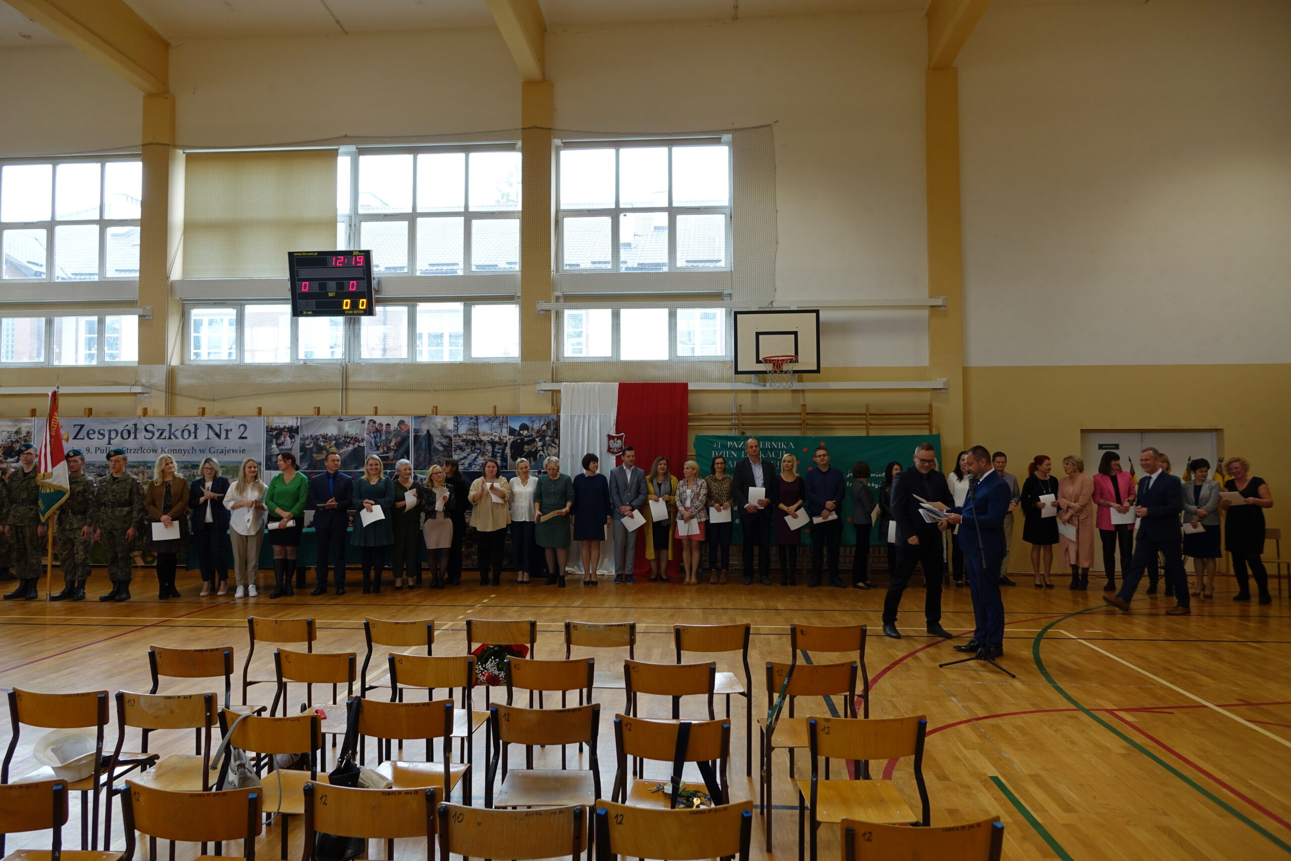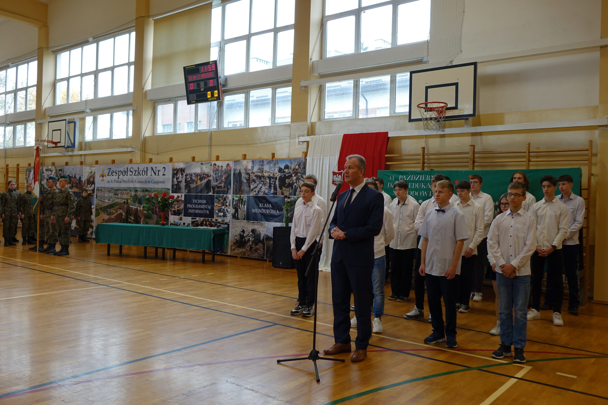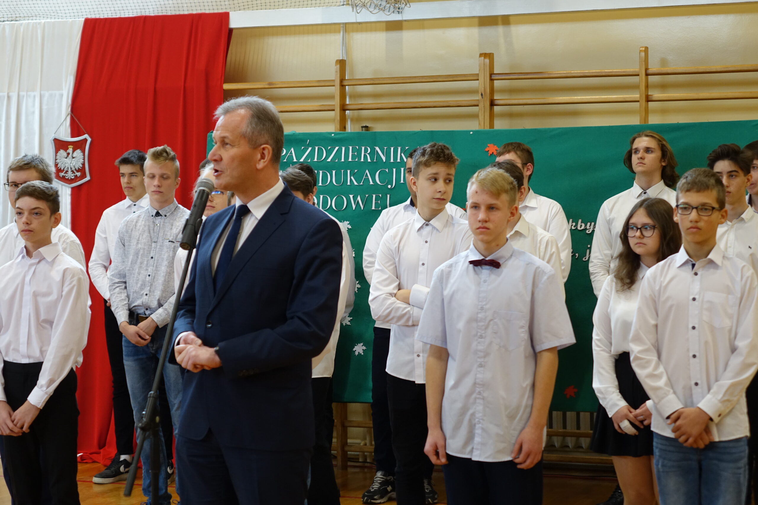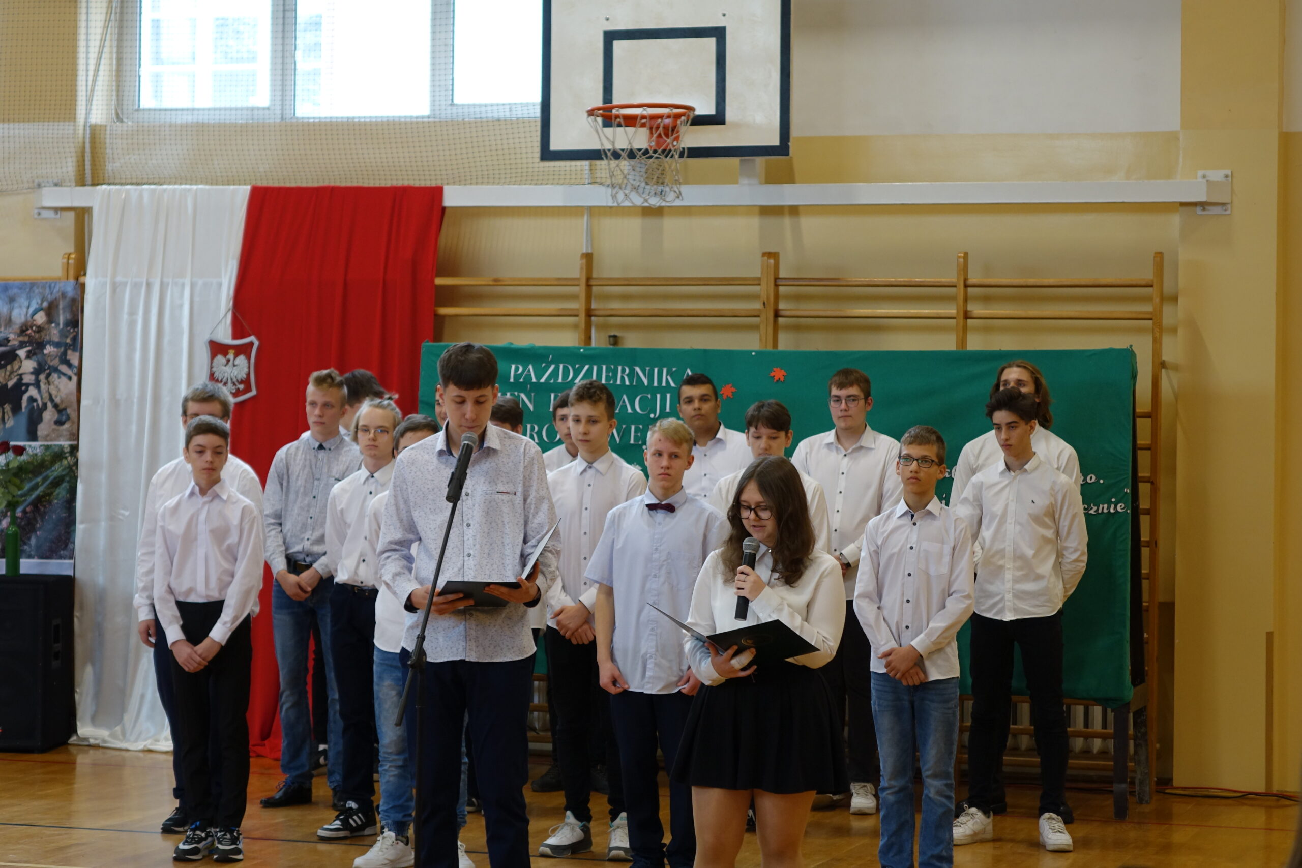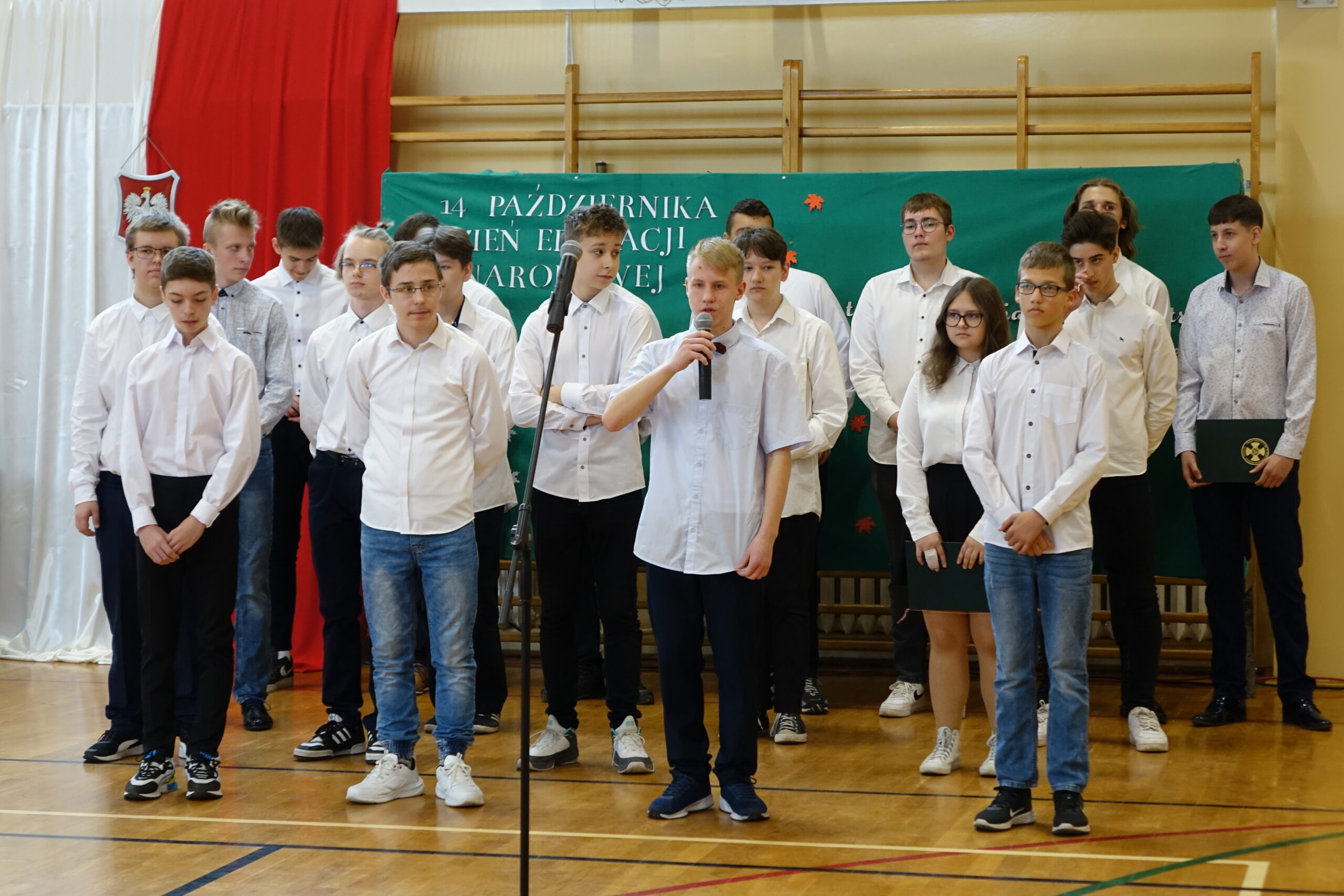 W dniu 13 października 2022 r. na sali gimnastycznej naszej szkoły odbył się uroczysty apel z okazji Dnia Edukacji Narodowej. Część artystyczną przygotowali uczniowie klasy 2d SP (technik informatyk) wraz z wychowawcą Panią Marzeną Sulkowską.