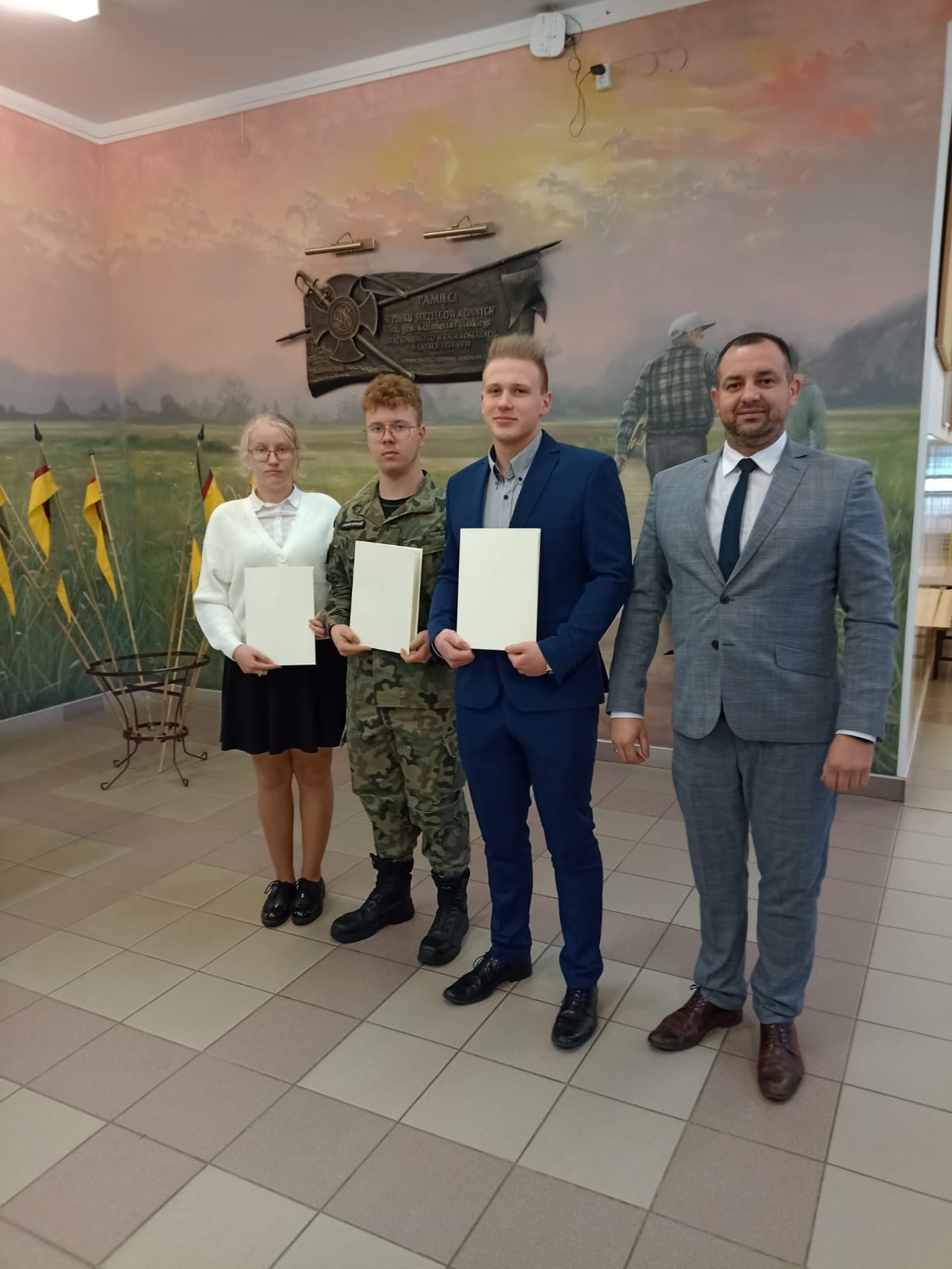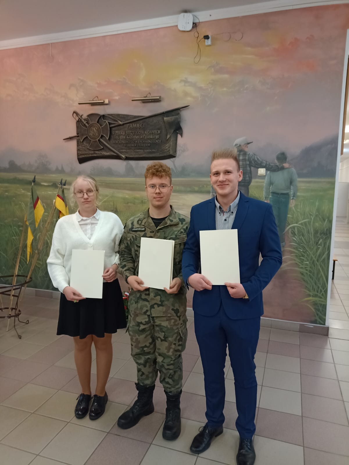 Troje uczniów Zespołu Szkół Nr 2 im. 9 Pułku Strzelców Konnych w Grajewie, którzy w roku szkolnym 2021/2022 uzyskali najwyższą średnią ocen w szkole,