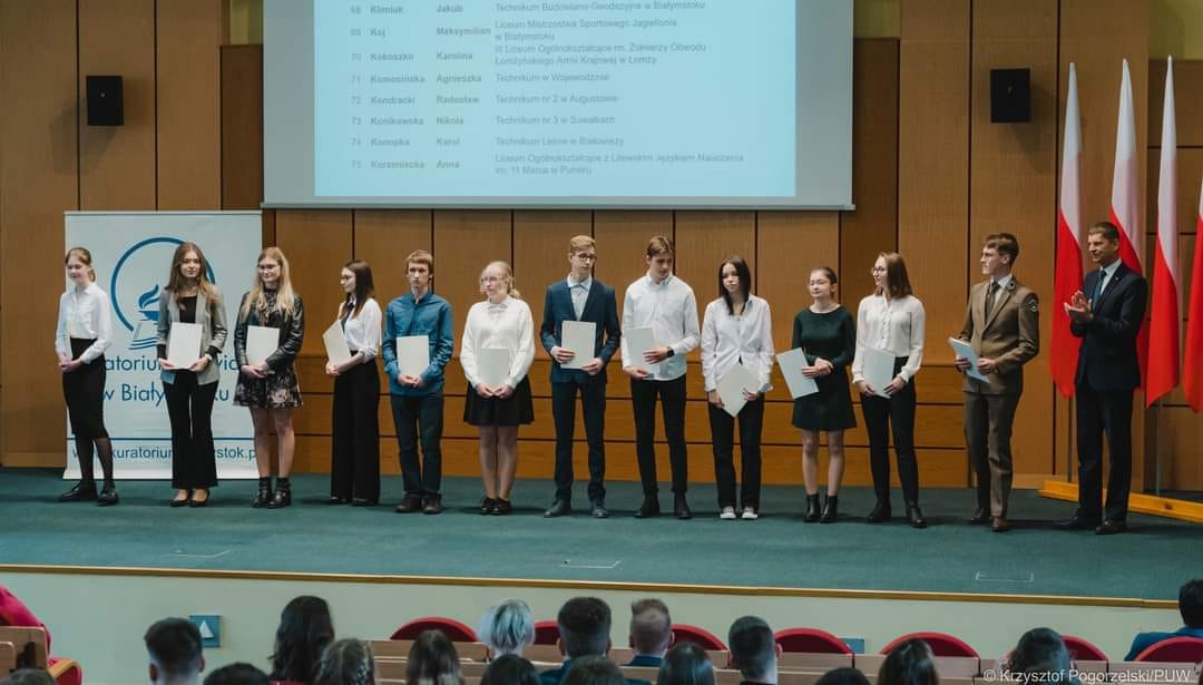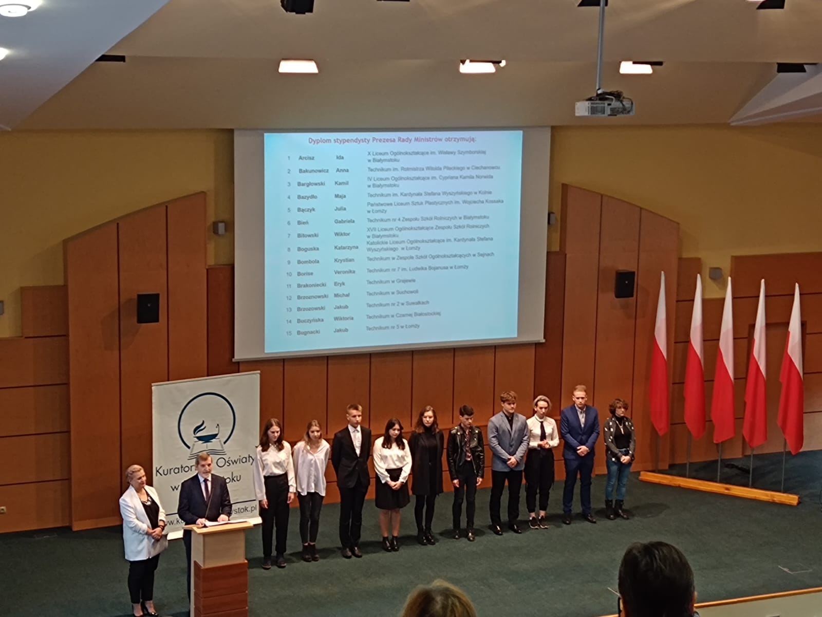 W piątek 18 listopada 2022 r. w sali konferencyjnej Podlaskiego Urzędu Wojewódzkiego w Białymstoku odbyło się uroczyste wręczenie najzdolniejszym uczniom szkół ponadgimnazjalnych i ponadpodstawowych w województwie podlaskim dyplomów Stypendysty Prezesa Rady Ministrów na rok szkolny 2022/2023.