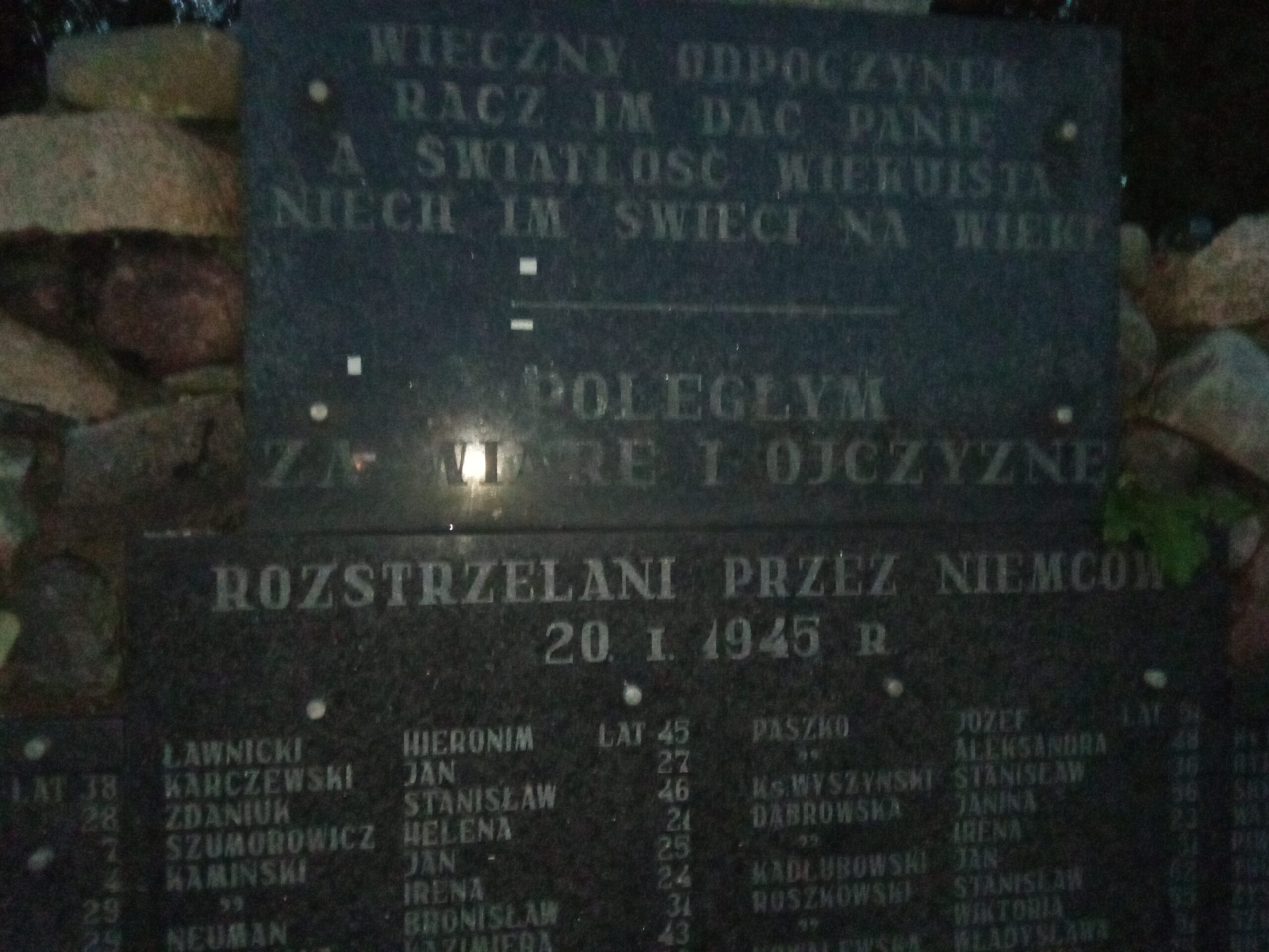 20.01.1945. w lesie „kosówka” Niemcy rozstrzelali wiele Polskich rodzin, w tym dzieci i kobiety. W marcu 1945 przeprowadzono ekshumacje ofiar i pochowano zmarłych na cmentarzu w Grajewie.