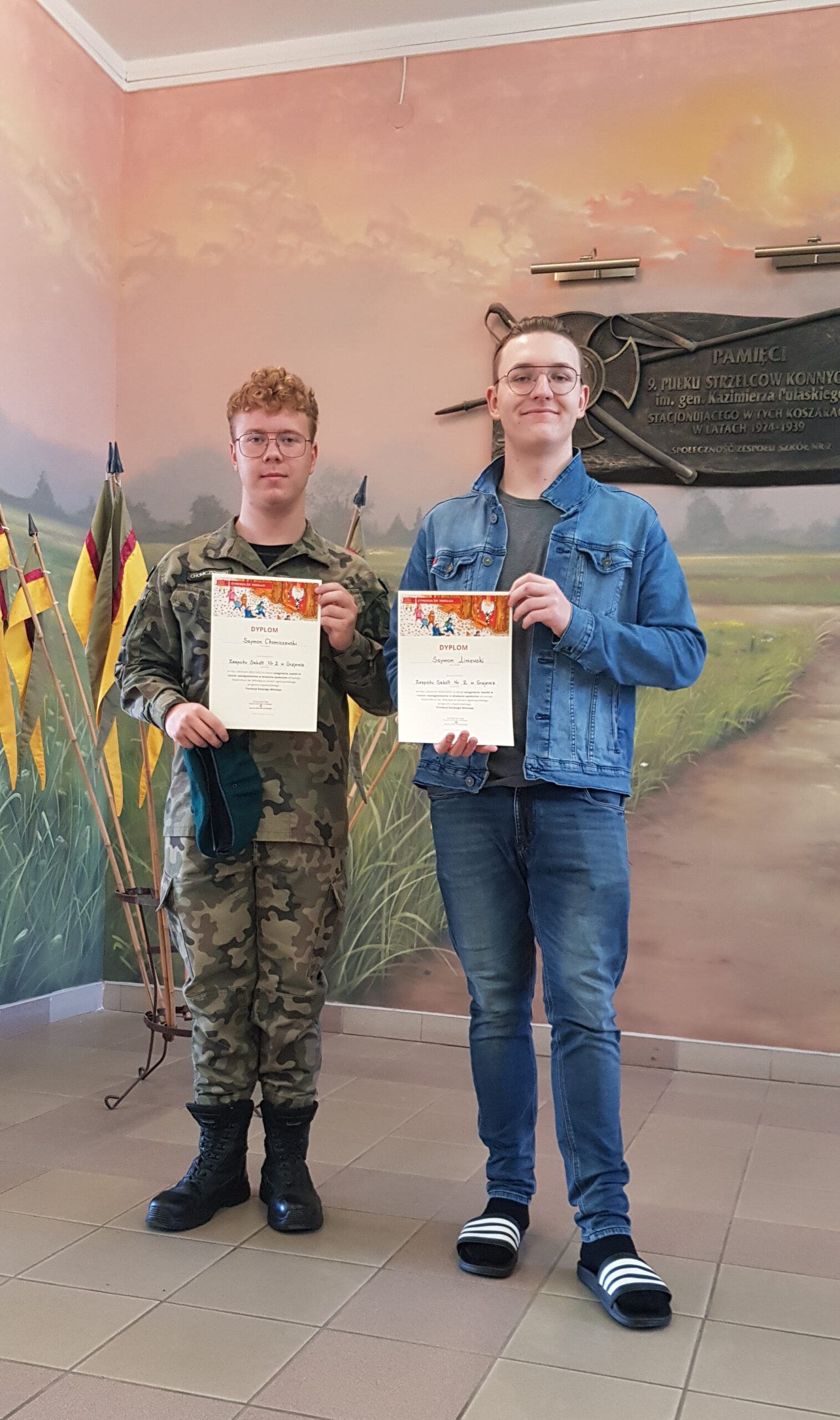 Fundacja Świętego Mikołaja cały czas jest z nami. Od kilku lat wspólnie wspieramy niezwykle uzdolnionych i chcących dzielić się swoim talentem i dobrem z innymi – uczniów naszej szkoły. Z dumą informujemy, że w tym roku szkolnym stypendium w wysokości 3 tyś. złotych otrzymali: Szymon Liniewski (kl. IVw) i Szymon Chomiczewski (kl. IIw). Obydwaj uczniowie wyróżniają się wysokimi wynikami w dziedzinach, którymi się pasjonują. Pierwszy z nich kocha taniec towarzyski i czynnie uczestniczy w działaniach wolontariackich. Drugi zaś interesuje się historią i aktywnie uczestniczy w organizacji społeczno-wychowawczej „Strzelec”. To uczniowie ambitni, kreatywni, pełni energii z ogromnym zaangażowaniem włączający się w realizacją projektów edukacyjnych.
