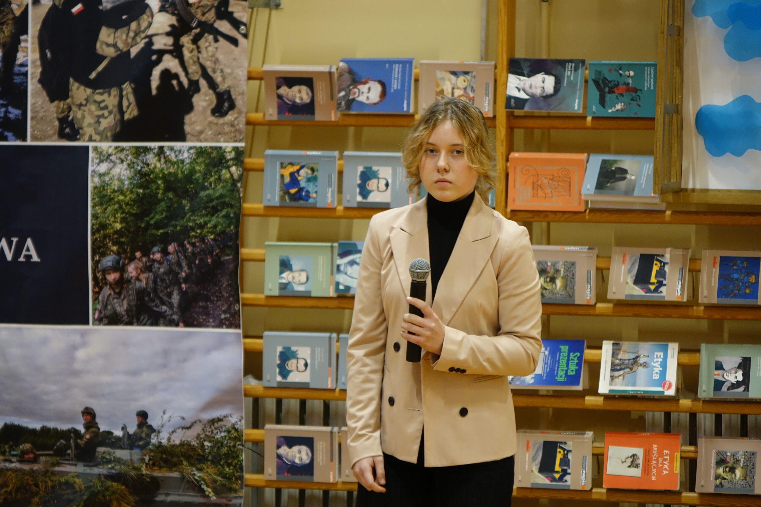 „Razem być. Ładniej żyć. Przestańmy kryć sympatii nić…” – w absolutnie niezwykły sposób wyśpiewała Zuzia Komor! Te kilka słów, to nie tylko poruszający tekst piosenki, jakiej mogliśmy wysłuchać na podsumowaniu obchodów Międzynarodowego Miesiąca Bibliotek Szkolnych oraz działań Wolontariuszy w Jednostce.