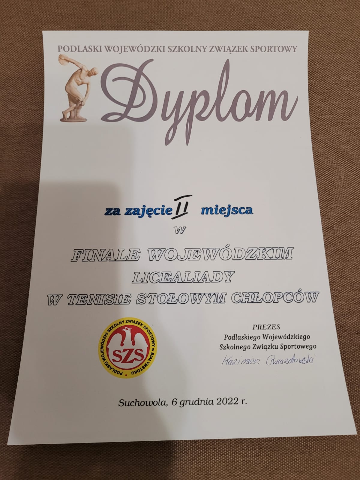 7 grudnia 2022 r. w Suchowoli odbył się Finał Licealiady Województwa Podlaskiego w Tenisie Stołowym Chłopców.