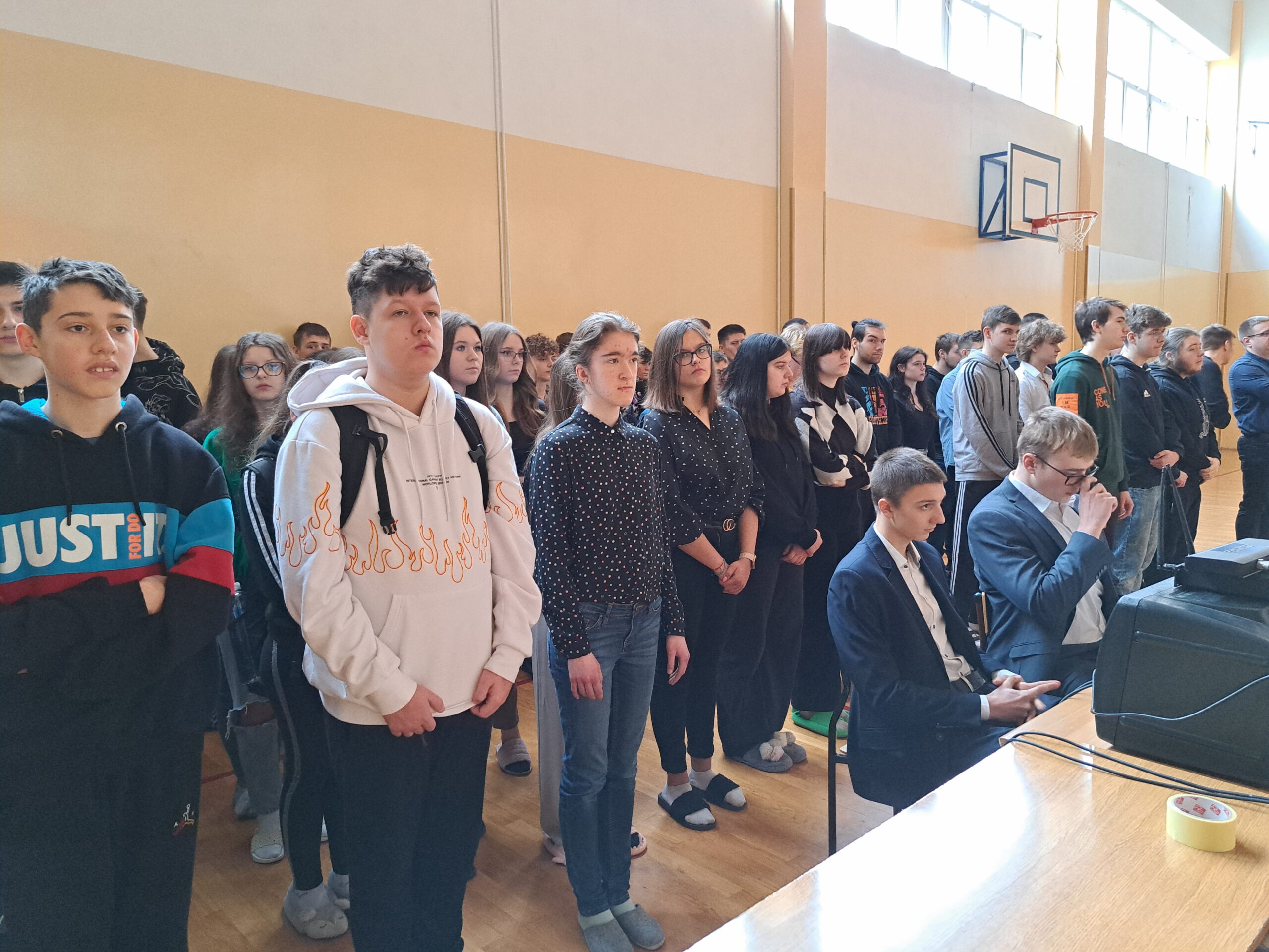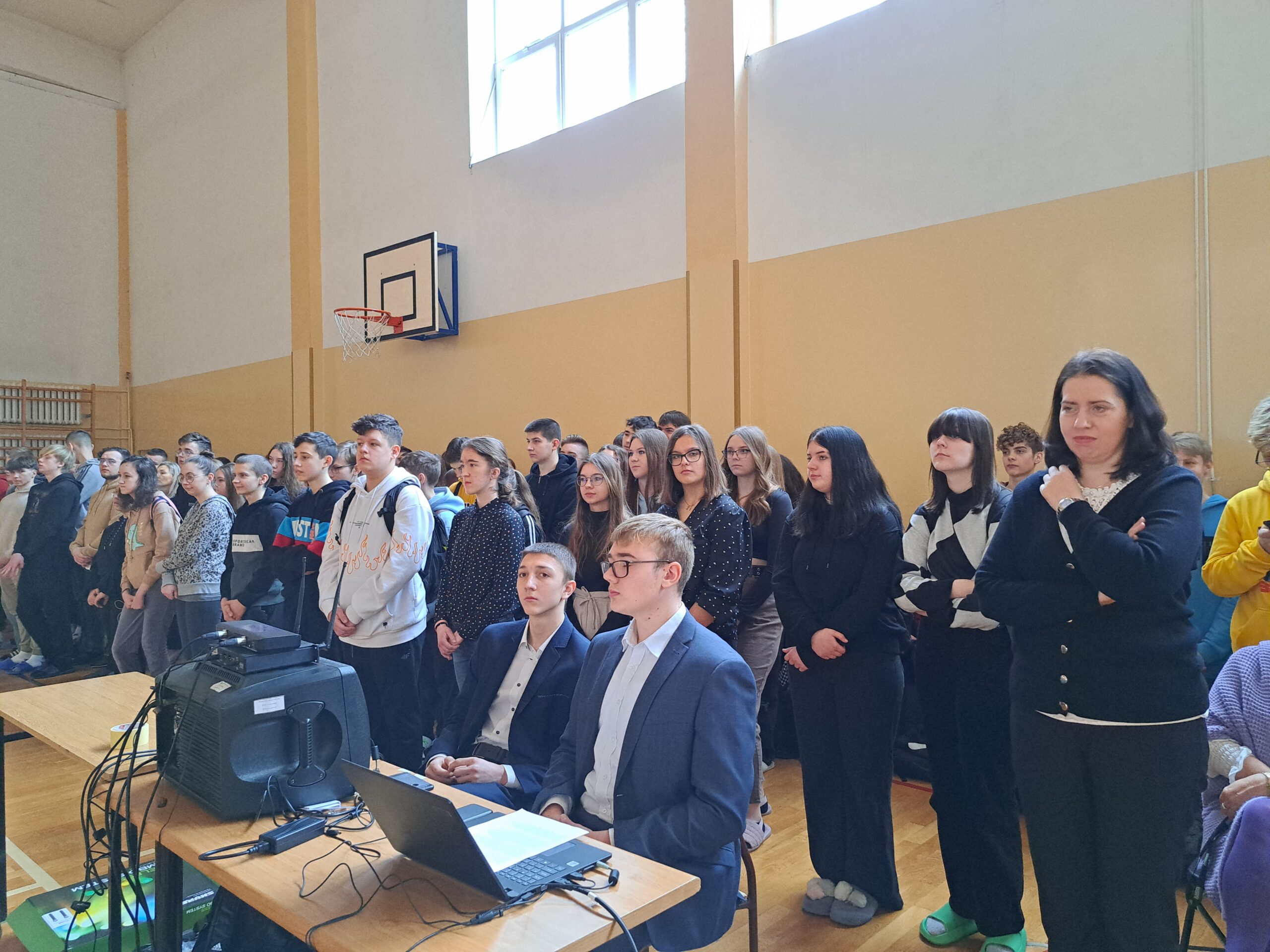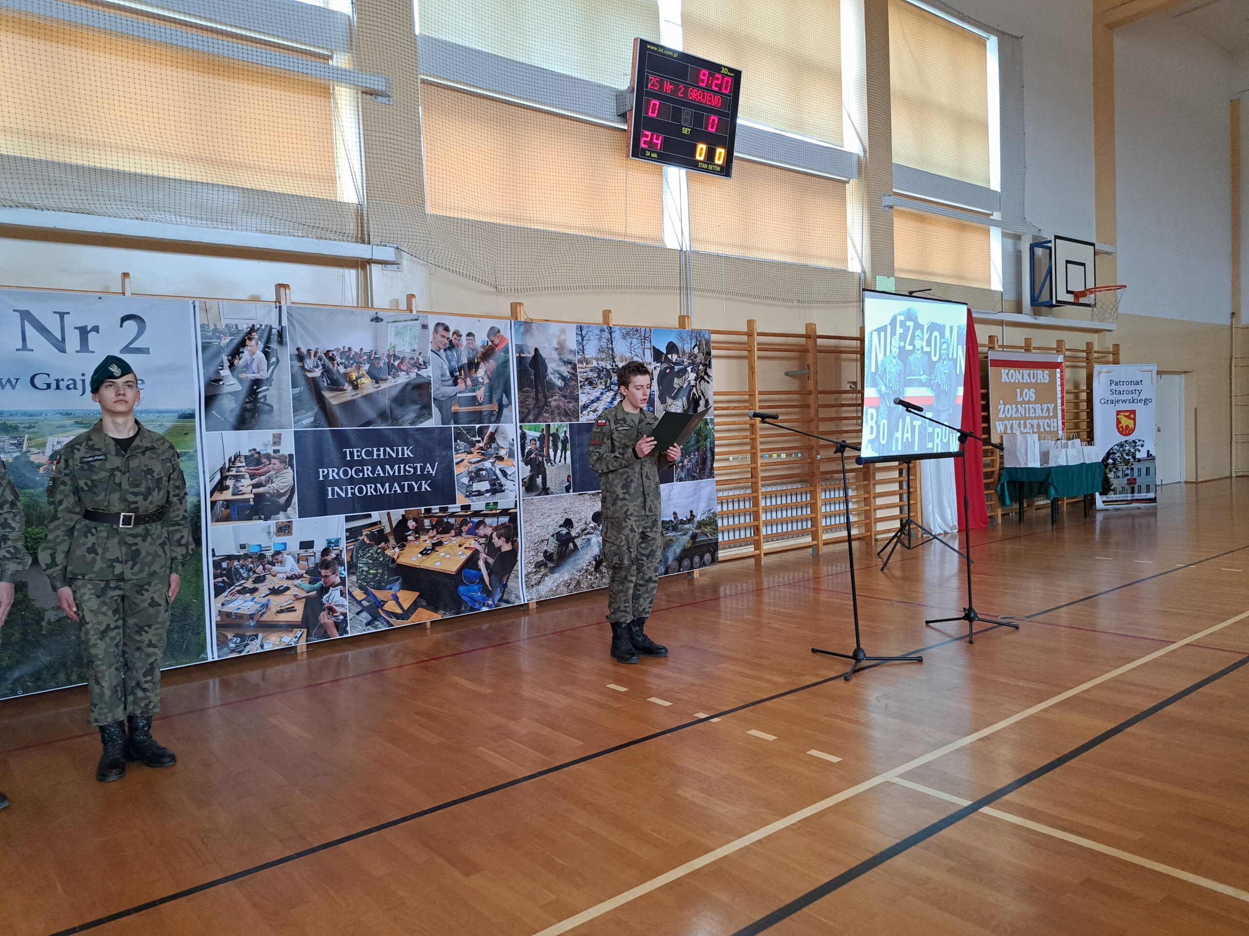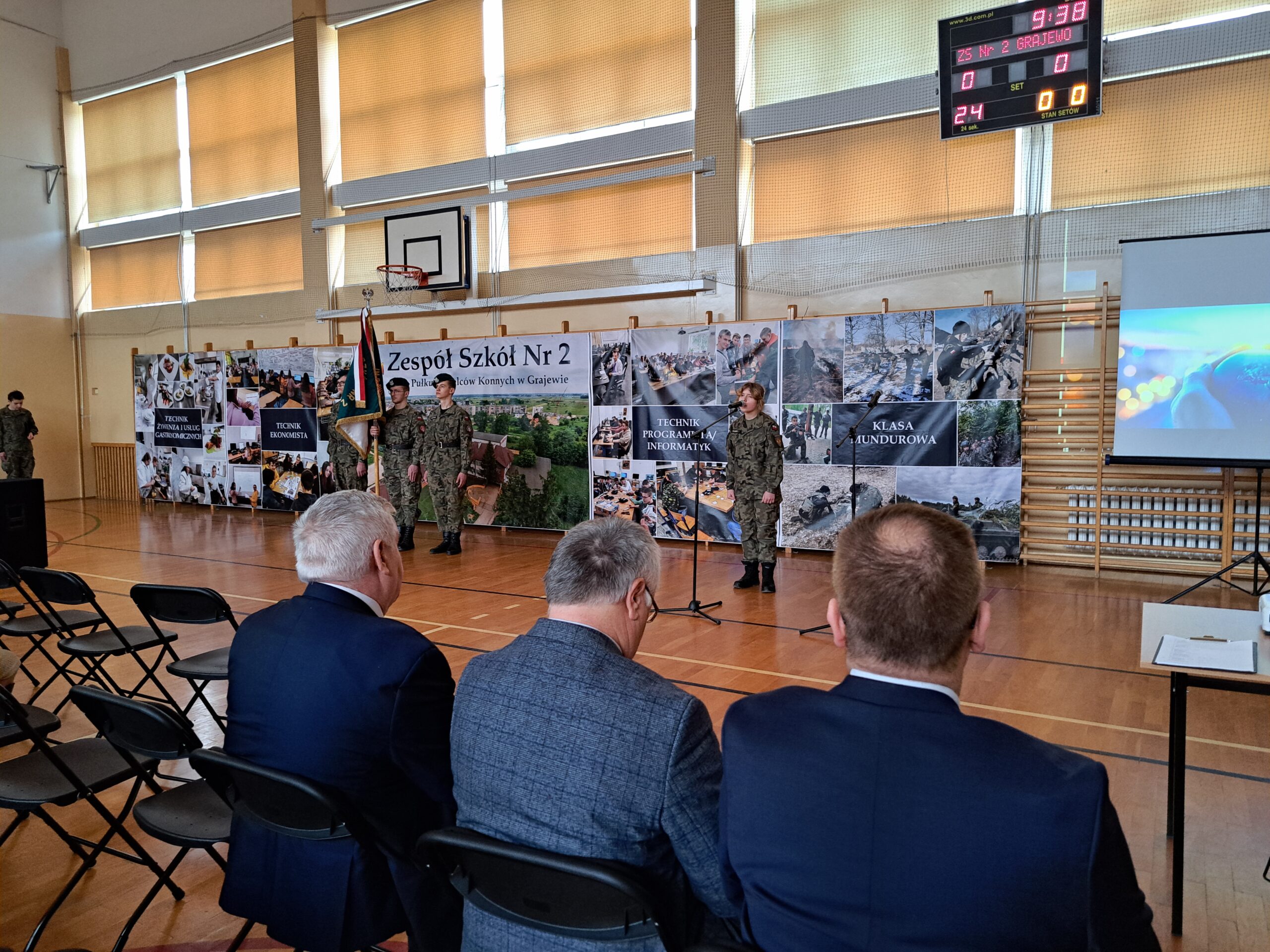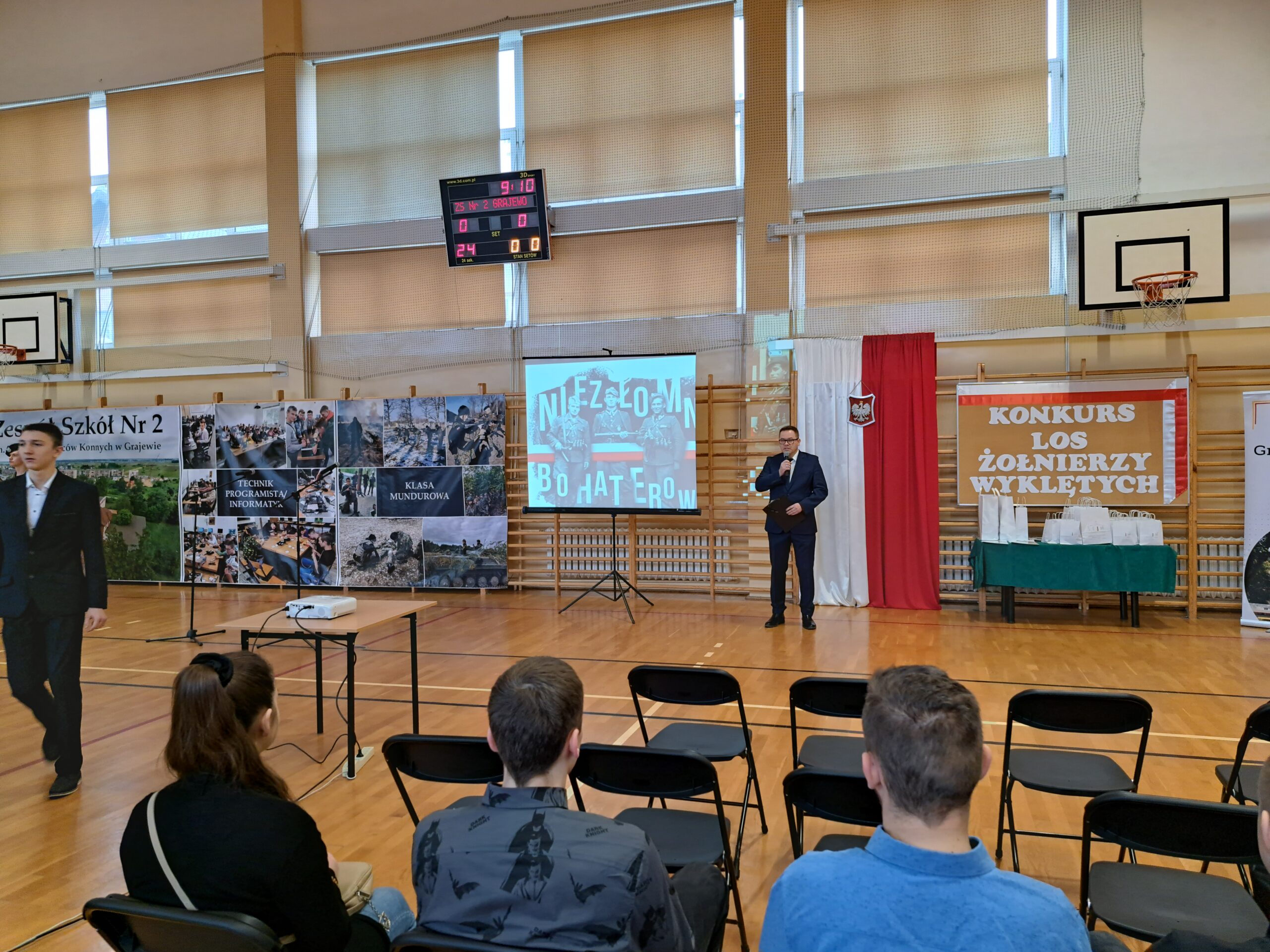 03.03.2023 r. o godz. 9.00 na sali gimnastycznej Zespołu Szkół Nr 2 im. 9. PSK w Grajewie odbyła się akademia z okazji obchodów Narodowego Dnia Pamięci Żołnierzy Wyklętych przygotowana przez Panią Halinę Waszkiewicz oraz uczniów klas mundurowych. W uroczystości aktywny udział wzięli: Mateusz Turowski klasa 1w sp (lektor), Gabriela Zuzanna Komor klasa 1w sp (śpiew), Szymon Chomiczewski klasa 2w sp (śpiew), Oliwier Cybula klasa 2w sp (śpiew), Oliwier Kuryś klasa 2w sp (śpiew) oraz klasy mundurowe. Pomoc techniczna : Filip Żukowski i Bartek Żbikowski uczniowie klasy 1p sp