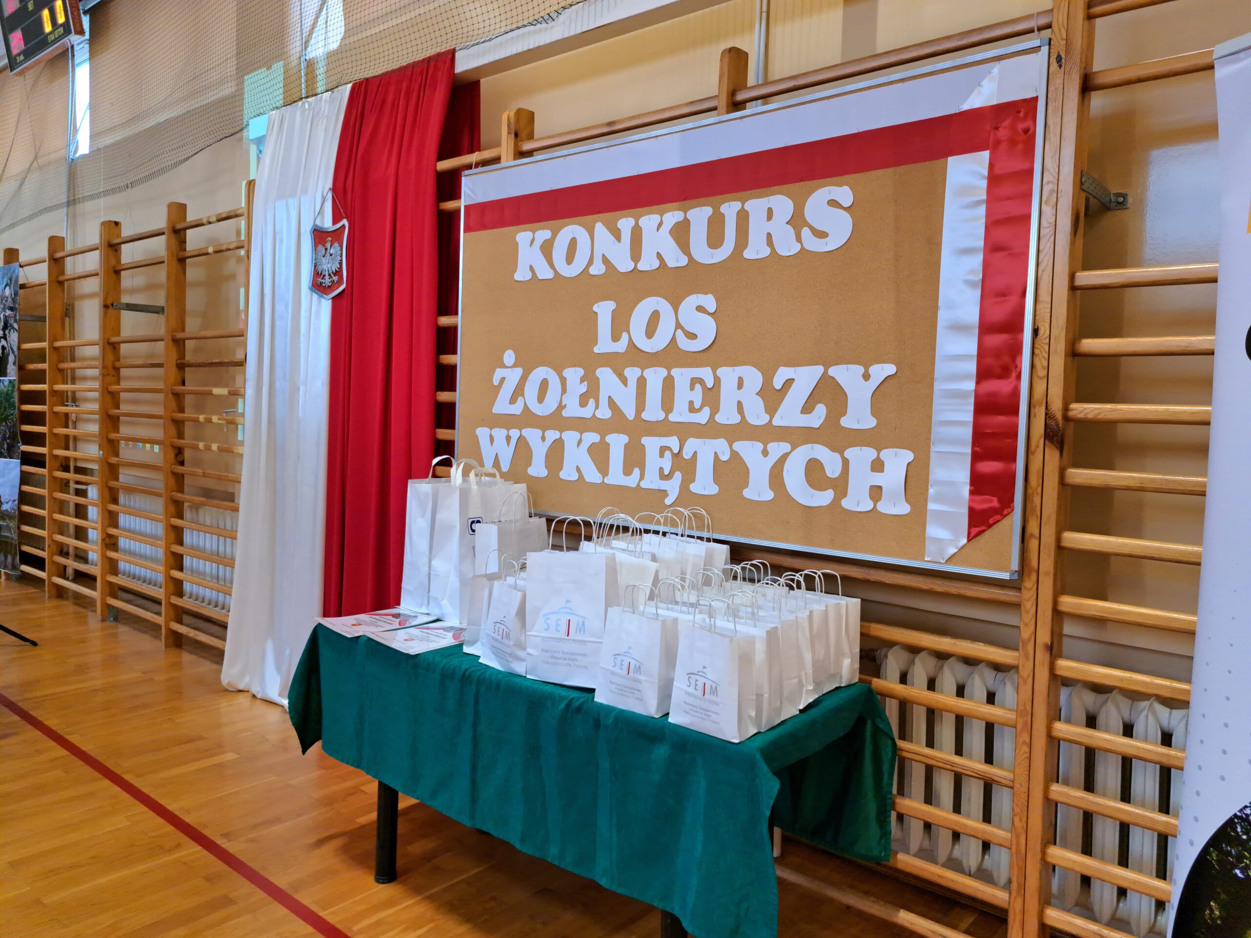 Po części oficjalnej goście przenieśli się na słodki poczęstunek, a uczniowie klas ósmych ze szkół podstawowych z terenu powiatu grajewskiego wzięli udział w finale konkursu wiedzy o Żołnierzach Wyklętych. Uczestnikami konkursu byli uczniowie ze SP w Radziłowie, SP w Danówku, SP w Szczuczynie, SP w Wierzbowie oraz SP nr 4 w Grajewie. Konkurs miał formę testu składającego się z 30 pytań, przygotowanego przez nauczyciela historii Panią Halinę Waszkiewicz na platformie testportal. Konkurs wiedzy o Żołnierzach Wyklętych odbył się pod patronatem Starosty Grajewskiego Pana Waldemara Remfelda oraz Posła na SEJM RP Pana Kazimierza Gwiazdowskiego.