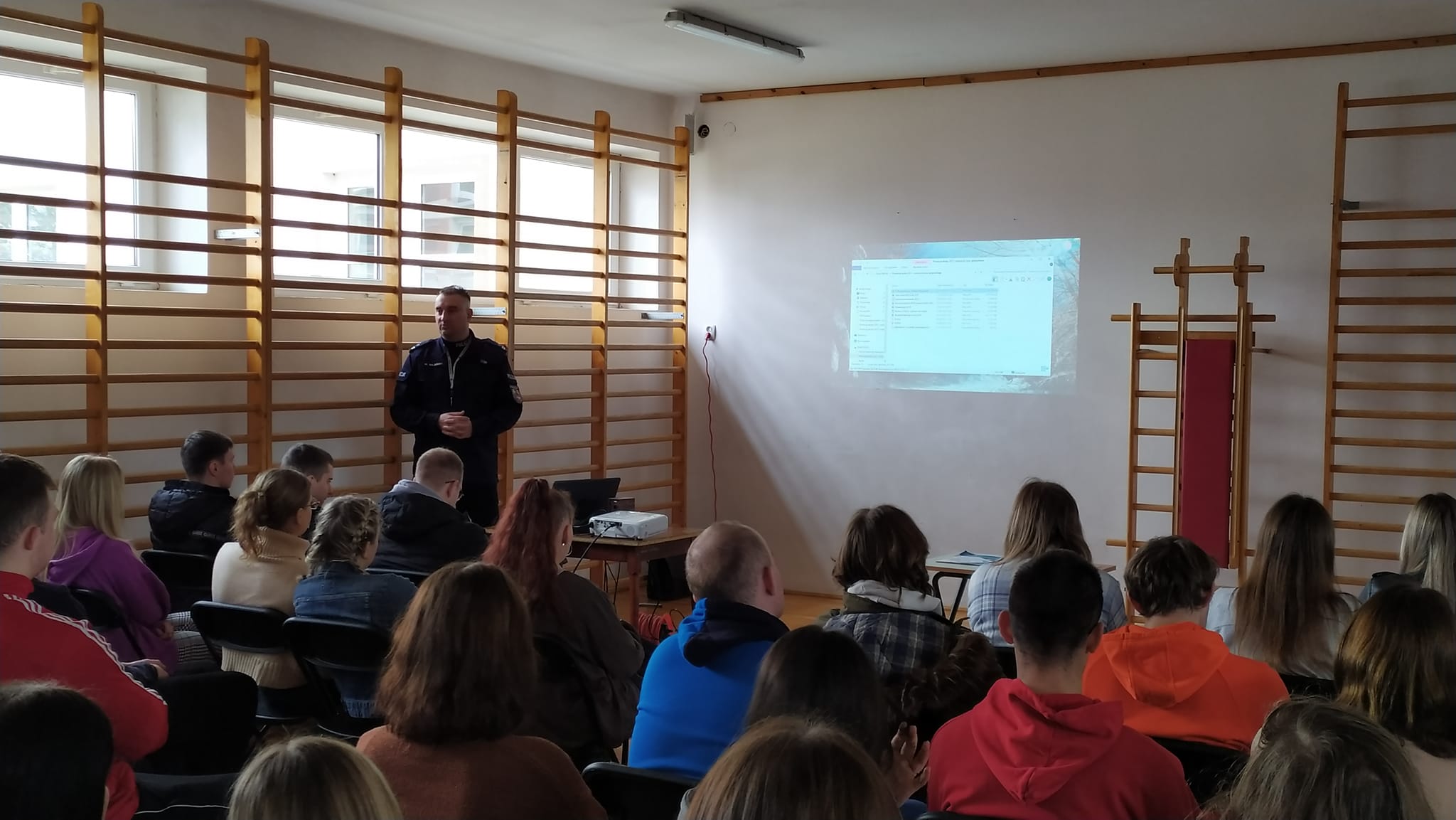 14.03.2023 r. Zastępca Komendanta Powiatowej Policji w Grajewie spotkał się z uczniami klas maturalnych Zespołu Szkół Nr 2 im. 9. PSK w Grajewie. Na spotkaniu poruszonych zostało wiele kwestii, m.in. dlaczego praca w policji jest służbą, na czym polega praca policjantów na co dzień i czy rzeczywiście warto podjąć pracę w policji. Przedstawiono strukturę formacji, jej główne zadania oraz omówiono etapy rekrutacji.
