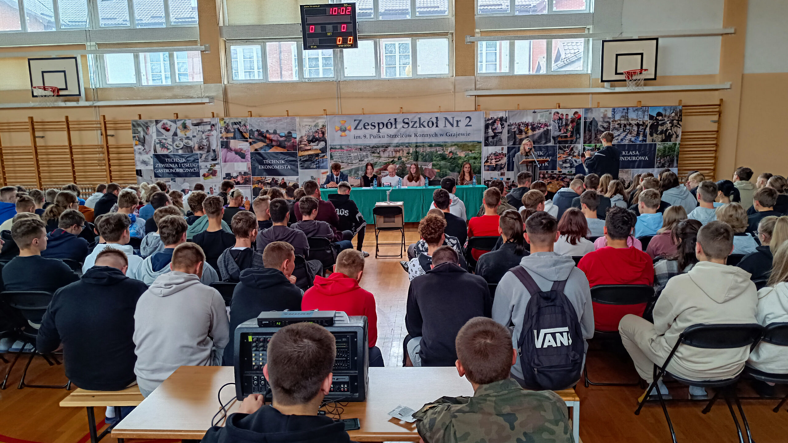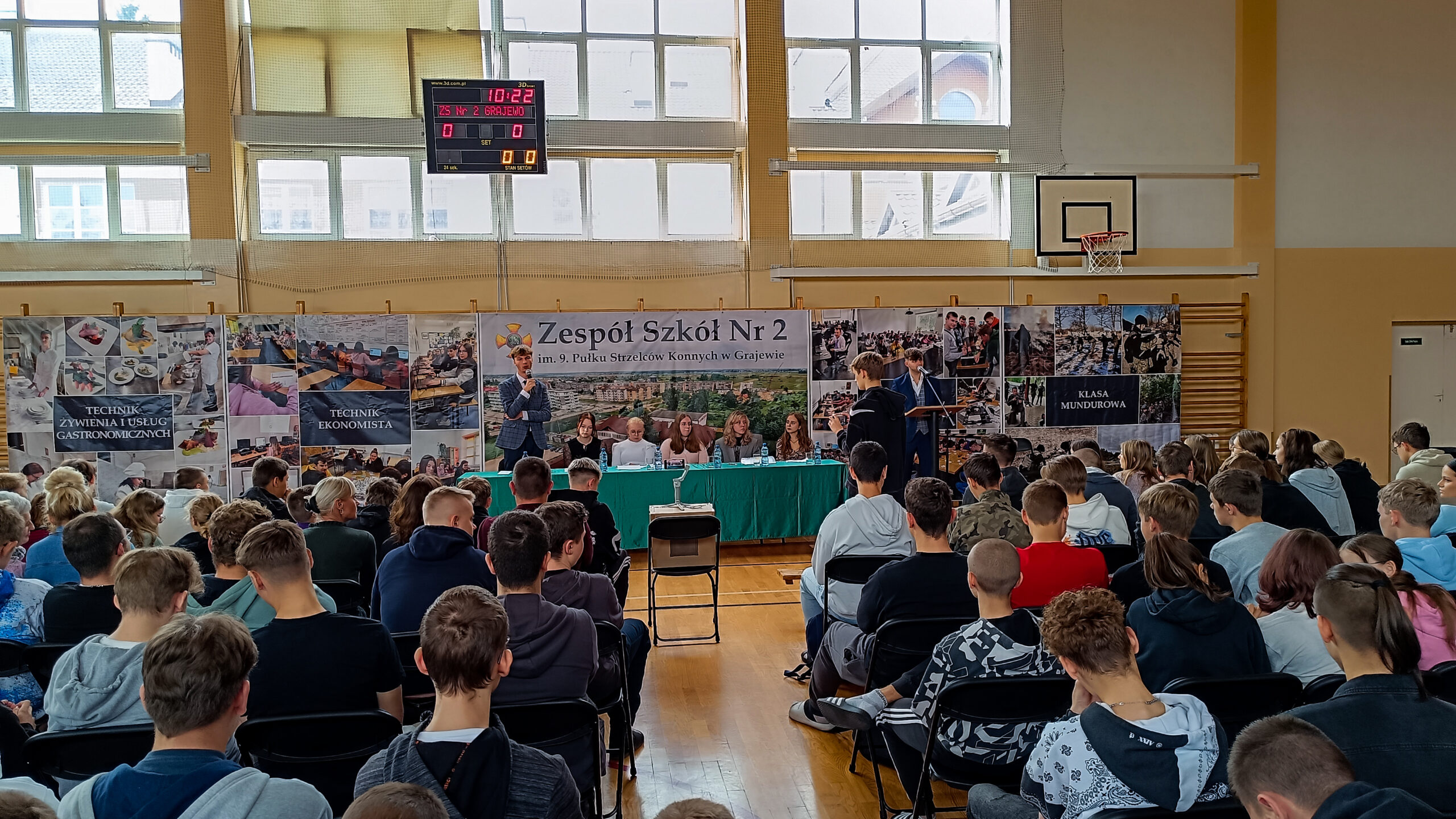 Dnia 05.10.2023 r. na sali gimnastycznej Zespołu Szkół Nr 2 im. 9. PSK w Grajewie miało miejsce niecodzienne wydarzenie – debata kandydatów na Przewodniczącego Samorządu Uczniowskiego.