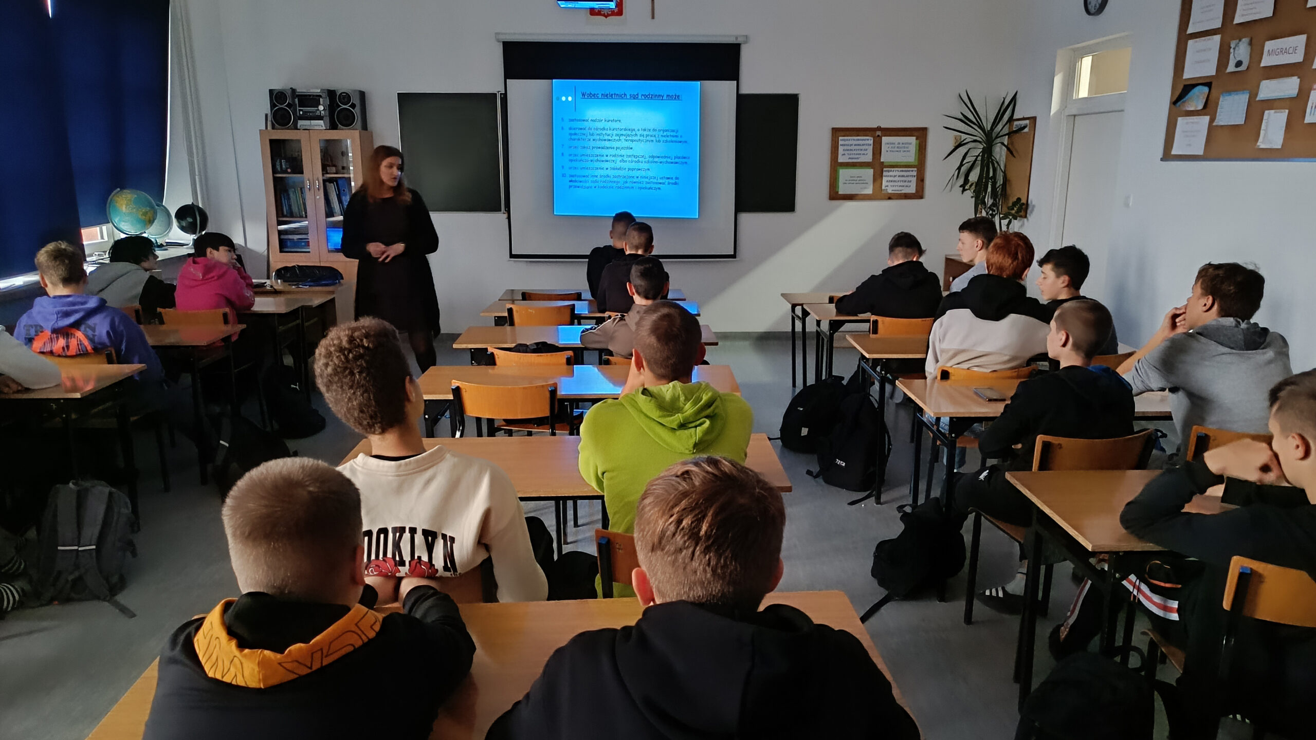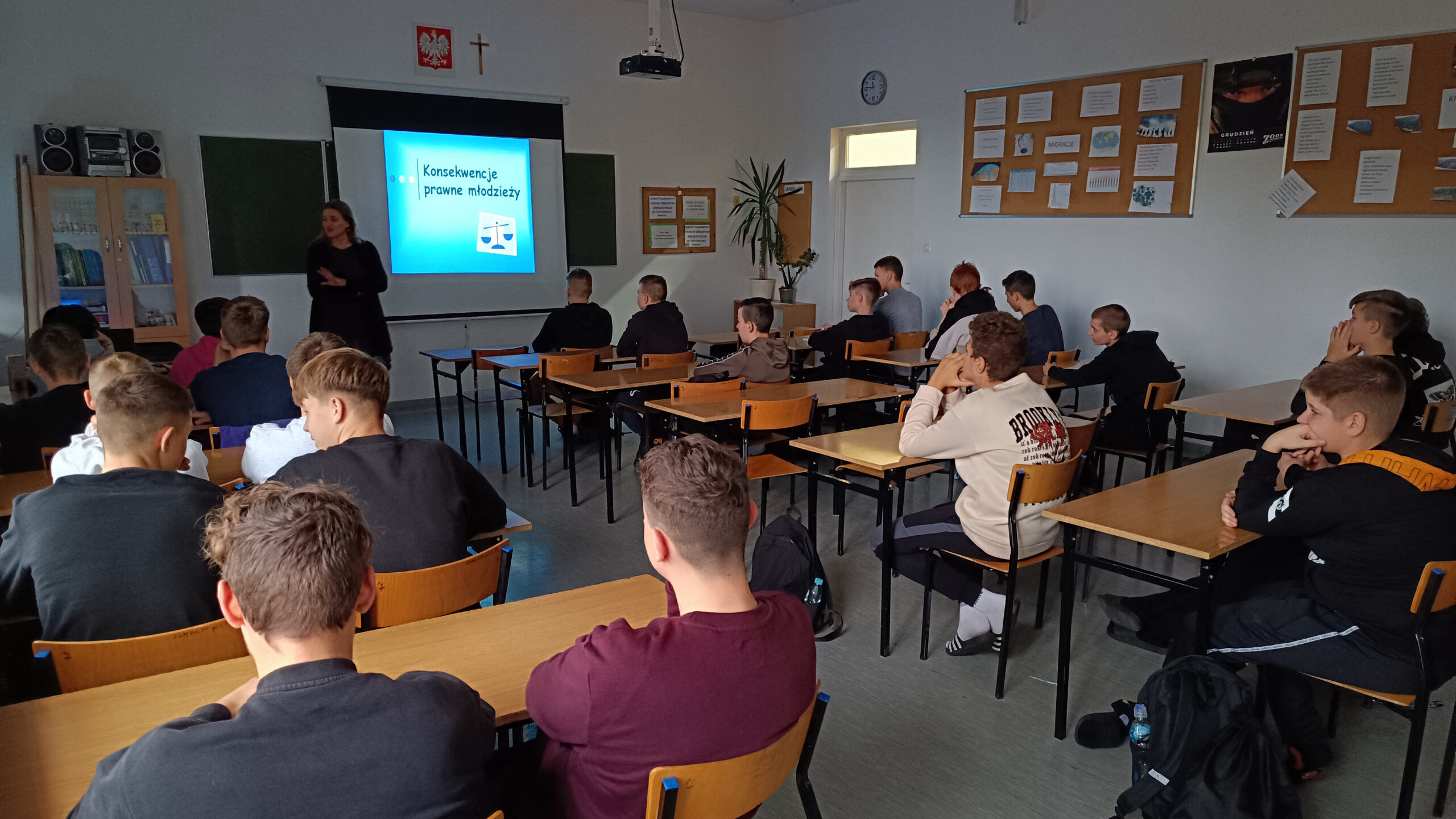 W trakcie spotkania Pani Rodzeń omówiła z uczniami szereg istotnych kwestii, m.in. różne rodzaje przestępstw, konsekwencje prawne nieletnich oraz sposoby unikania niebezpiecznych sytuacji.