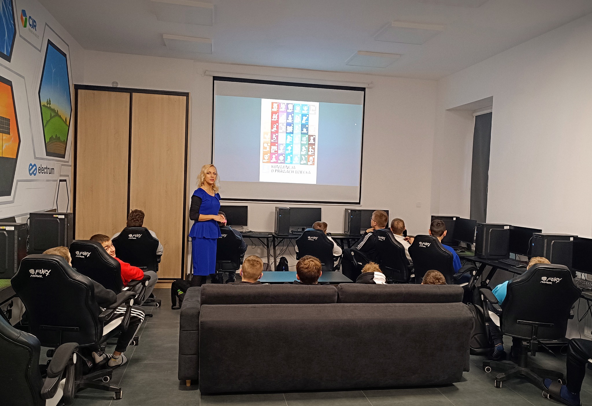 Rzecznik Praw Ucznia na zajęciach przybliżył uczniom temat konwencji praw dziecka. Młodzież nie tylko słuchała, ale także aktywnie uczestniczyła w lekcjach tworząc karty pracy i rywalizując w quizach o prawach dziecka na platformie Kahoot!.