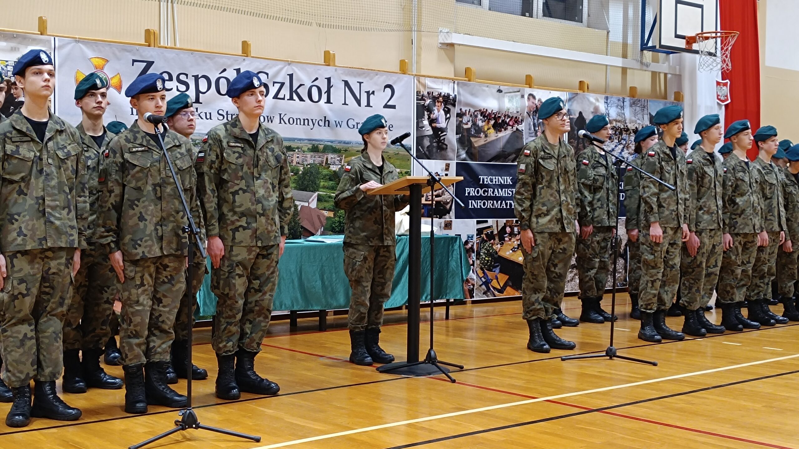Dnia 6 grudnia 2023 roku, z dumą i radością byliśmy świadkami niezwykłego momentu w Zespole Szkół Nr 2 im. 9 Pułku Strzelców Konnych w Grajewie. Strzelcy – uczniowie klasy mundurowej 1w złożyli swoje uroczyste ślubowanie.