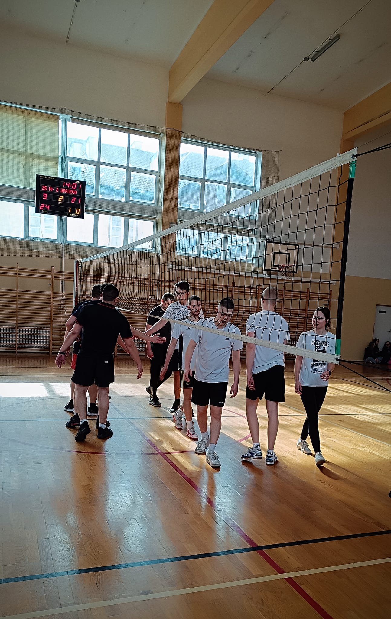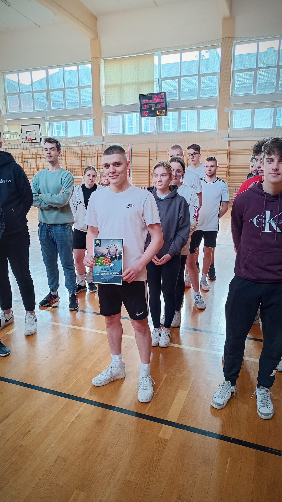 Po wręczeniu dyplomów zwycięska drużyna turnieju (uczniowie klasy 4w) rozegrała mecz piłki siatkowej
