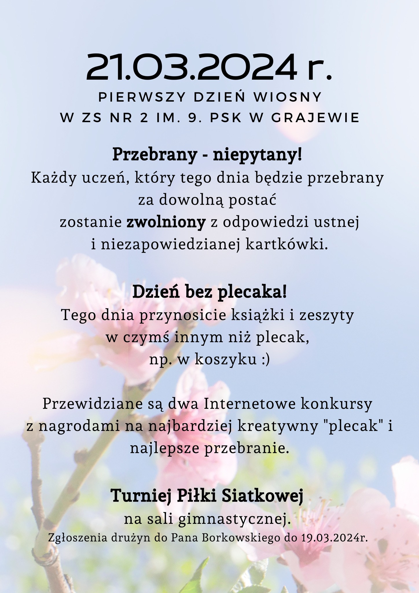 21 marca 2024 r. w ZS Nr 2 im. 9. PSK w Grajewie obowiązywała zasada: przebrany – niepytany. Uczniowie przebrani za dowolne postacie byli zwolnieni z odpowiedzi ustnej i z niezapowiedzianych kartkówek.