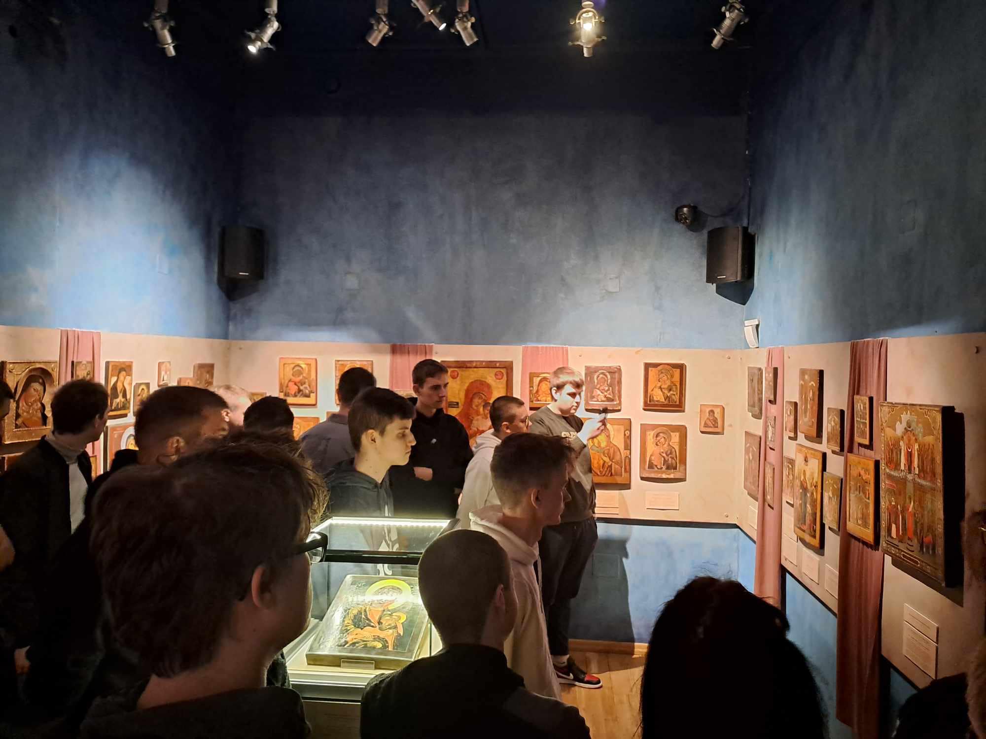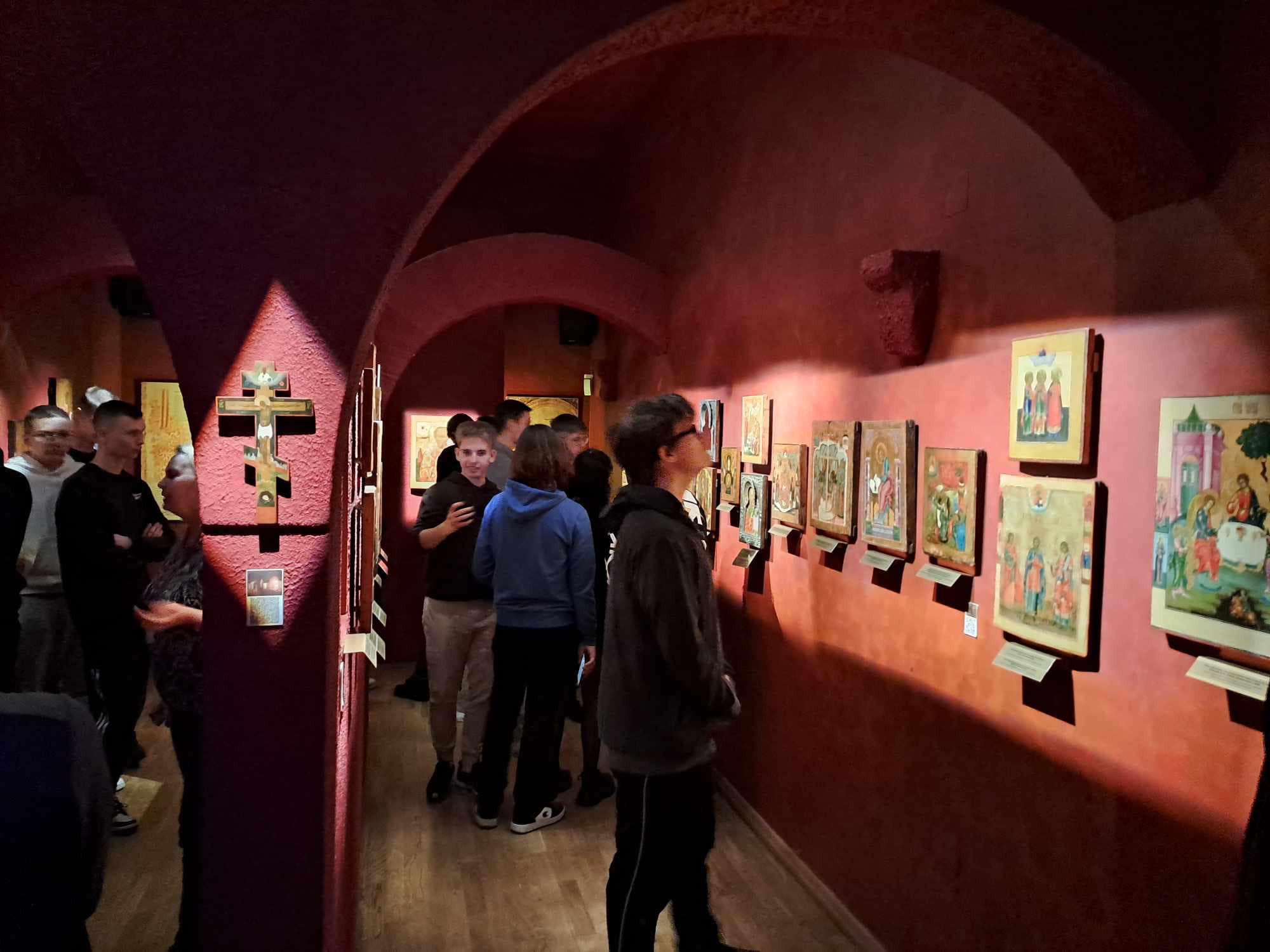 W Supraślu uczniowie odwiedzili jedno z najbardziej wyjątkowych miejsc w mieście – Muzeum Ikon. Młodzi ludzie mieli możliwość podziwiania sakralnego malarstwa. Przyciemnione światła i jednogłosowy śpiew chóralny przeniósł młodych ludzi do zupełnie innej mistycznej czasoprzestrzeni.