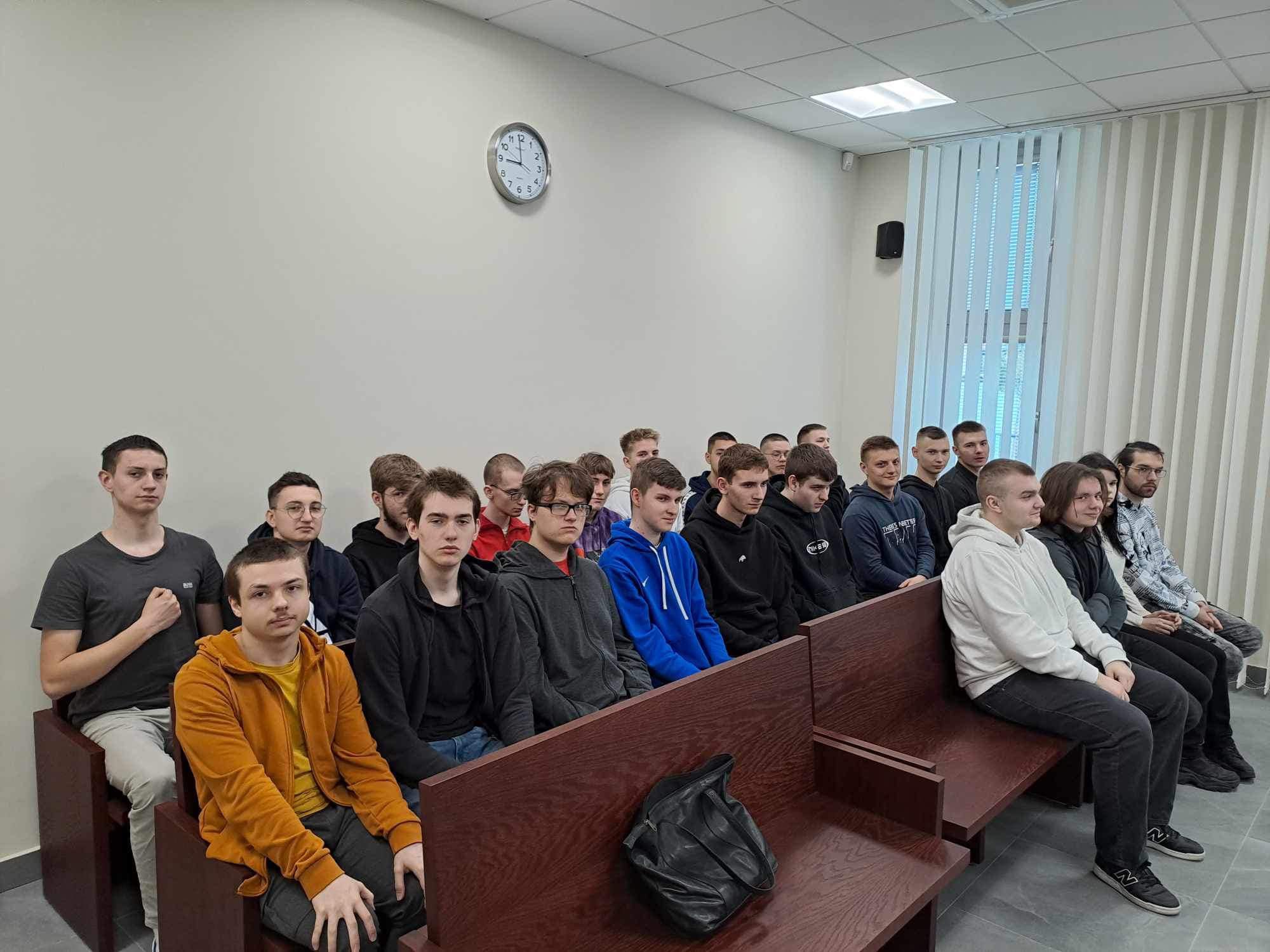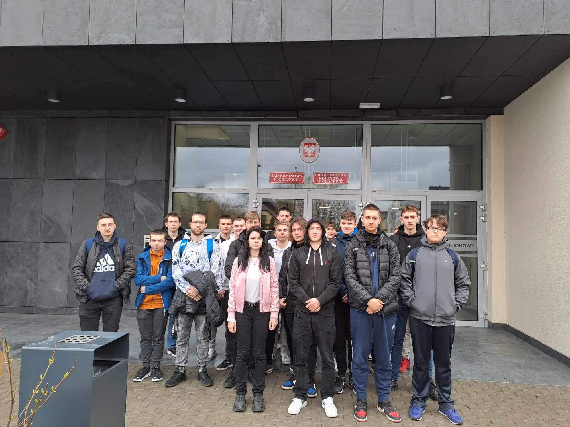 05 kwietnia 2024 r. uczniowie klasy IV d Technik Informatyk w ramach zajęć lekcyjnych na chwilę zamienili szkolne sale na salę rozpraw i ławę dla publiczności w Sądzie Rejonowym w Grajewie. Uczniowie mieli okazję odwiedzić Sąd Rejonowy i wziąć udział w charakterze publiczności w jednej z wyznaczonych na ten dzień rozpraw karnych. Takie spotkanie to znakomita okazja do poznania postępowania sądowego, rozmowy z sędzią prowadzącą oraz możliwość zadawania pytań i ujrzenia sądu od wewnątrz, na żywo jak bije jego serce.