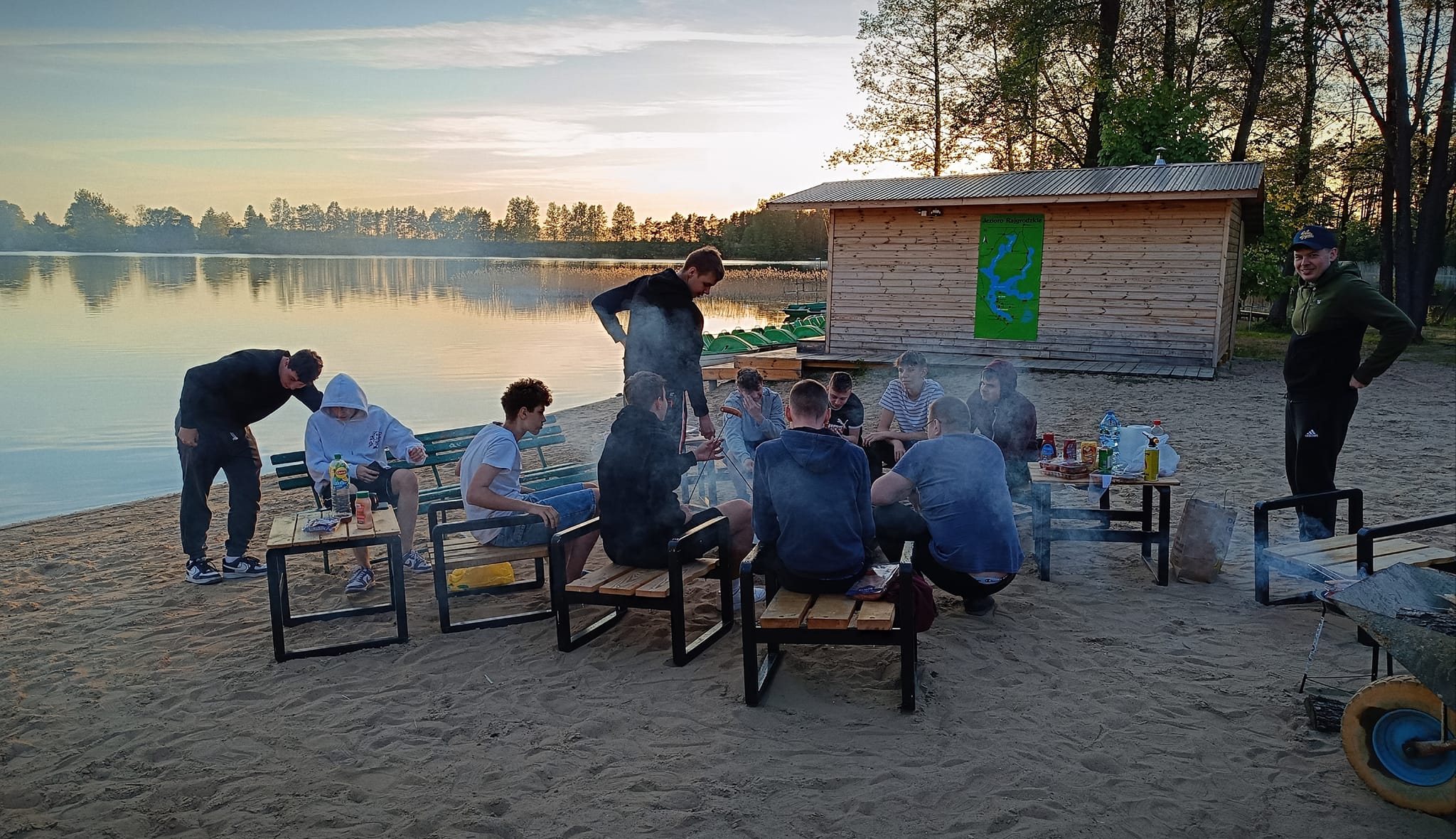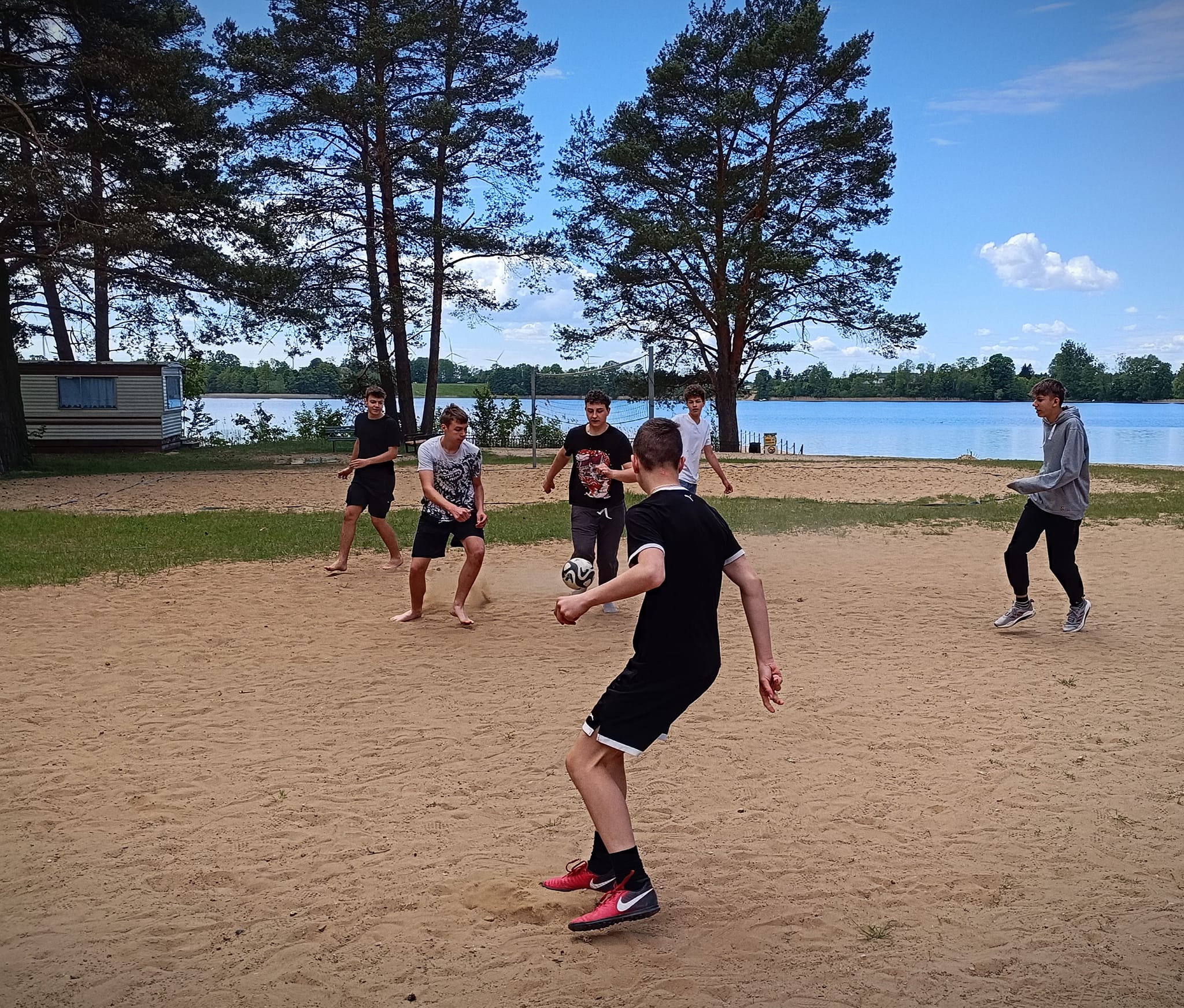 Uczniowie klasy 1dp (technik informatyk, technik programista) mieli okazję wziąć udział w biwaku nad jeziorem. Spędzili aktywnie czas – grając w siatkówkę i piłkę nożną – otoczeni drzewami i śpiewem ptaków. Nie mogło zabraknąć ogniska i grilla nad brzegiem jeziora oraz zabaw i rozmów integracyjnych w domkach.