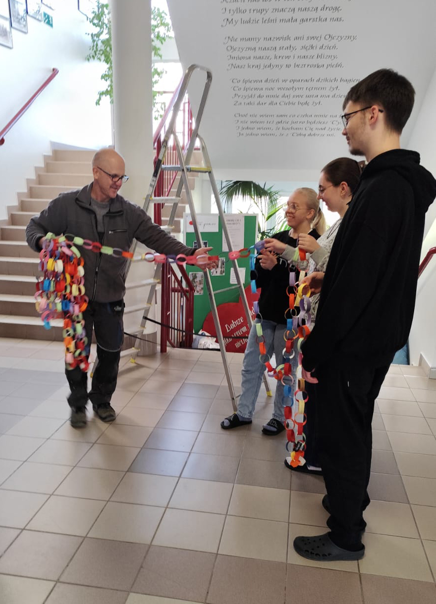 Szkolna codzienność stwarza wiele sytuacji, dzięki którym można uczyć się tolerancji. Dlatego też uczniowie naszej szkoły w ramach obchodów Międzynarodowego Dnia Tolerancji wzięli udział w nietypowej lekcji wychowawczej. „Szanuję Cię”, „Akceptuję Twój kolor skóry”, „Jestem otwarty na Twoje poglądy” to tylko wybrane słowa które wybrzmiały na stworzonym przez wszystkie klasy Łańcuchu Tolerancji. Niech ta szkolna akcja stanie się okazją do refleksji nad własną postawą w odniesieniu do innych osób. Bądźmy tolerancyjni na co dzień, nie tylko od święta, bo tolerancja łączy ludzi i zmienia świat. Pamiętajmy, że pozytywna energia, którą przekazujemy drugiemu człowiekowi, wraca do nas ze zdwojoną siłą!