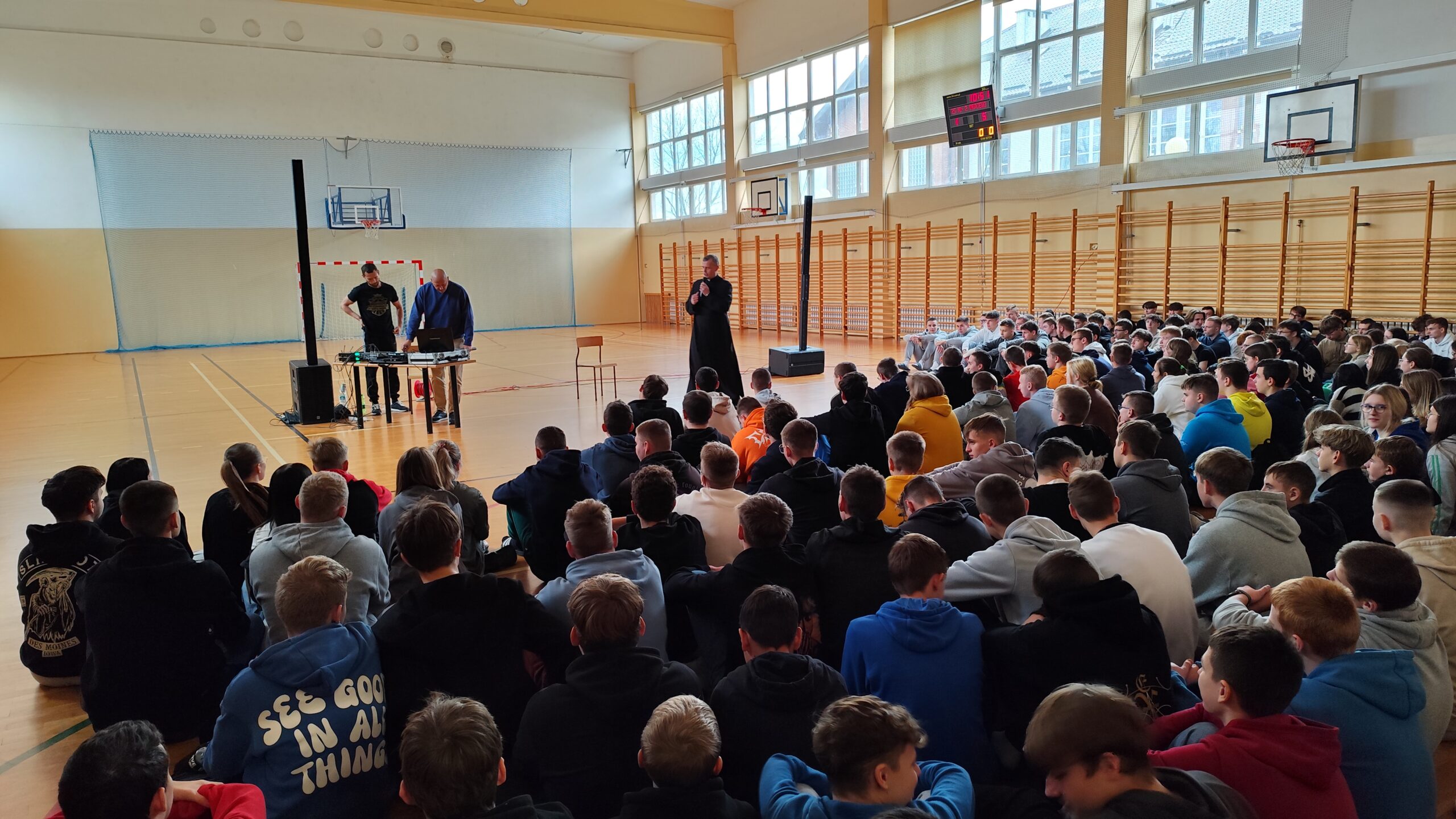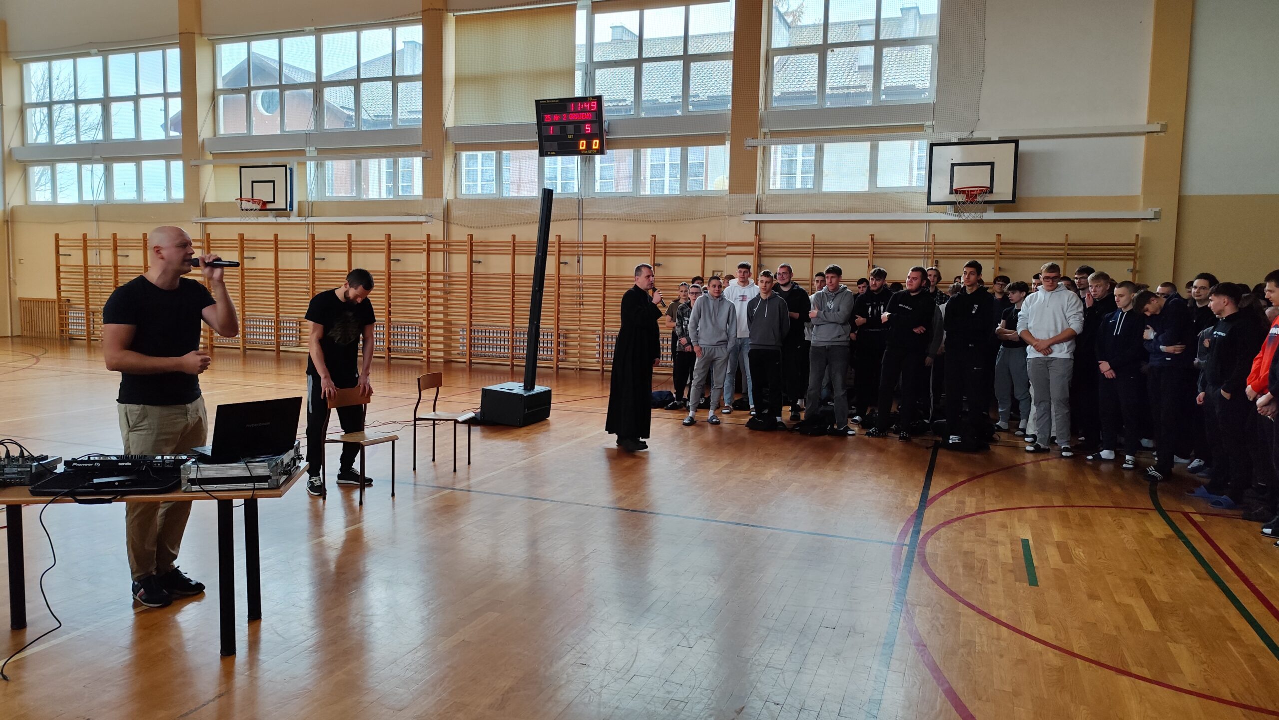 Dnia 21.11.2024 r. na sali gimnastycznej Zespołu Szkół Nr 2 im. 9. Pułku Strzelców Konnych w Grajewie odbył się koncert profilaktyczny pod hasłem „Wyrwani z Niewoli” zorganizowany przez naszego wspaniałego księdza Adama Ulatowskiego oraz pedagogów szkolnych – Panią Beatę Szczepańską oraz Panią Paulinę Markowską.