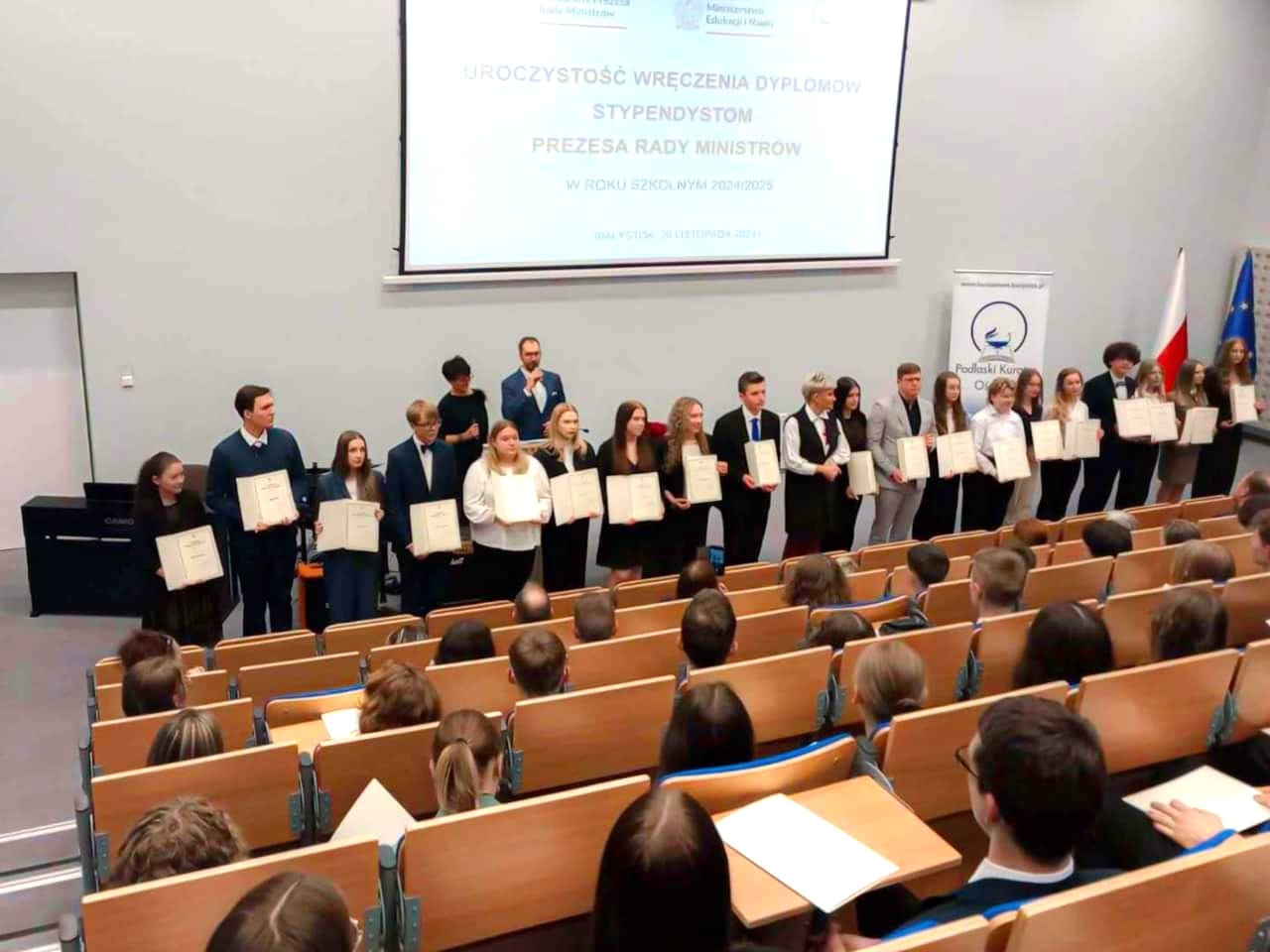 Dnia 26 listopada 2024 r. w II Liceum Ogólnokształcącym w Białymstoku odbyło się uroczyste wręczenie dyplomów -Stypendium Prezesa Rady Ministrów.