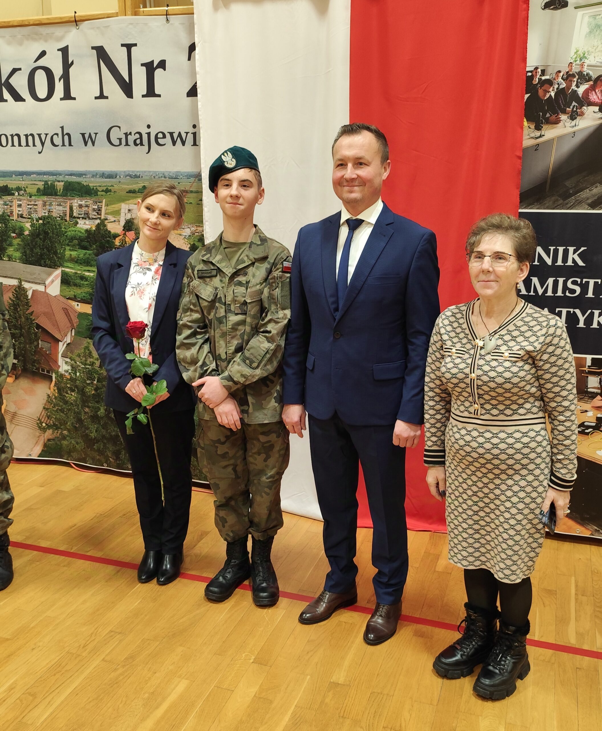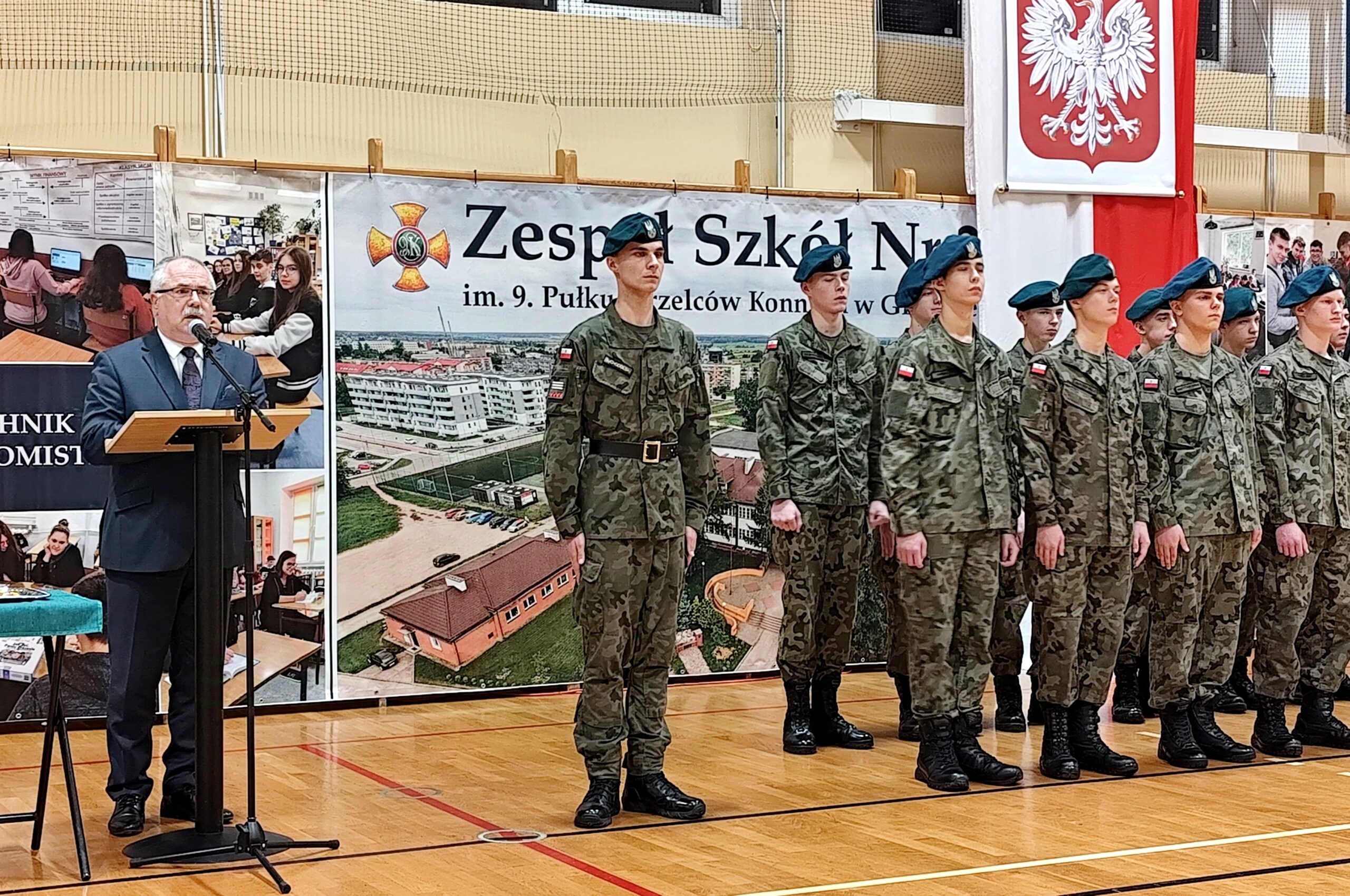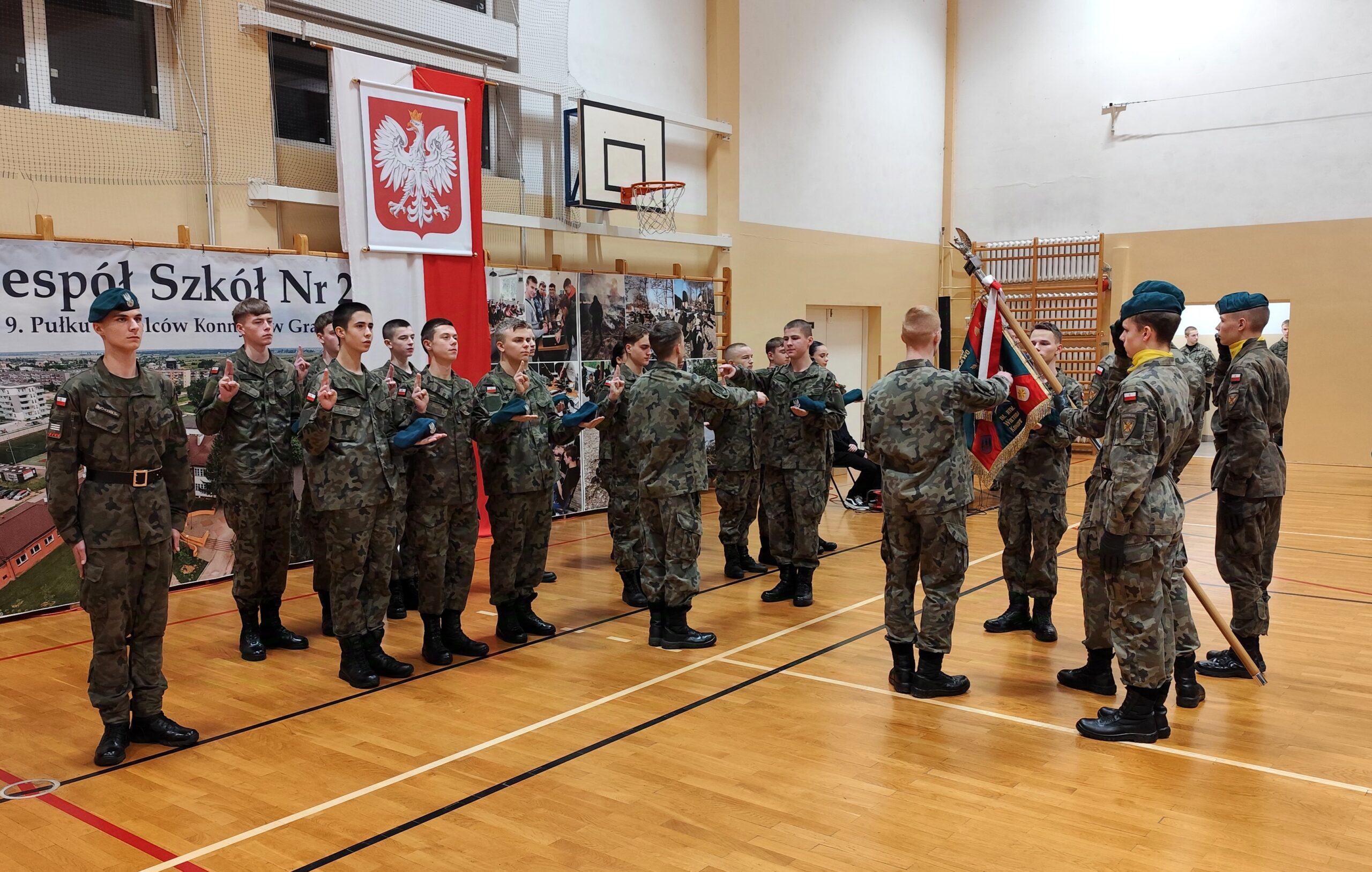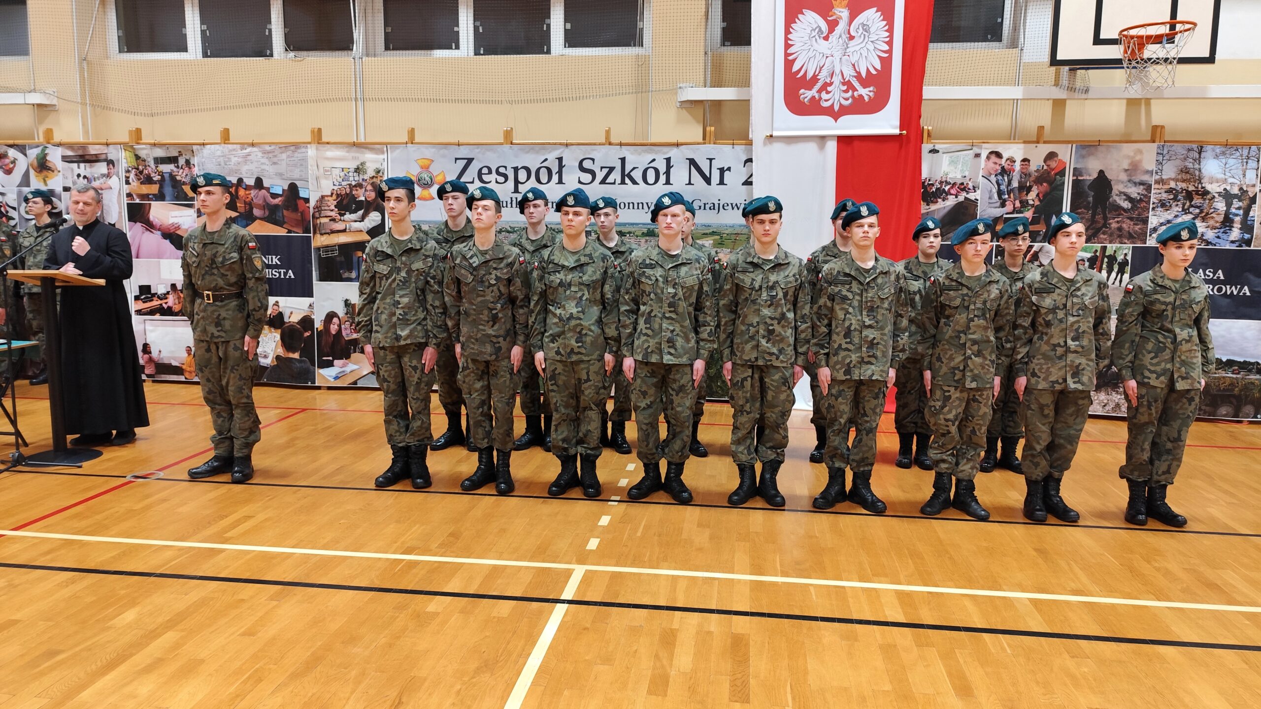 Dnia 5 grudnia 2024 r. w Zespole Szkół Nr 2 im. 9. Pułku Strzelców Konnych w Grajewie miało miejsce wyjątkowe wydarzenie, które na długo pozostanie w pamięci uczniów i ich bliskich – Uroczyste Przyrzeczenie Strzeleckie klasy 1w.