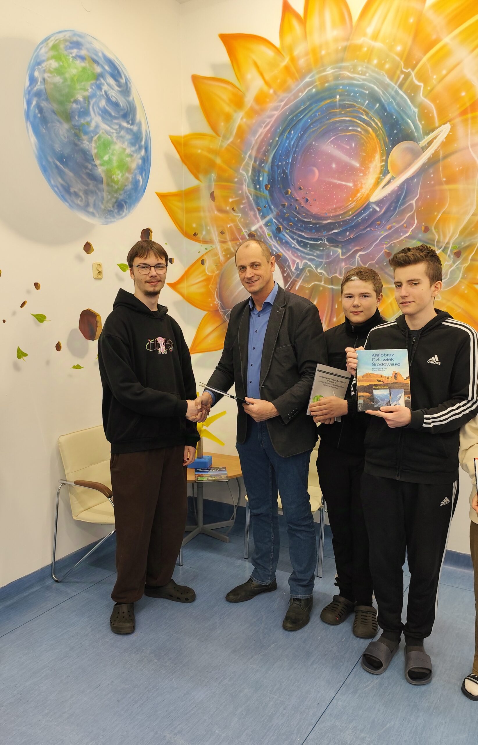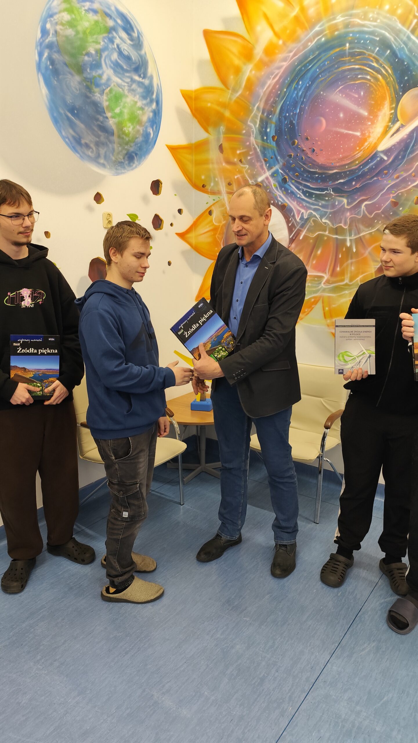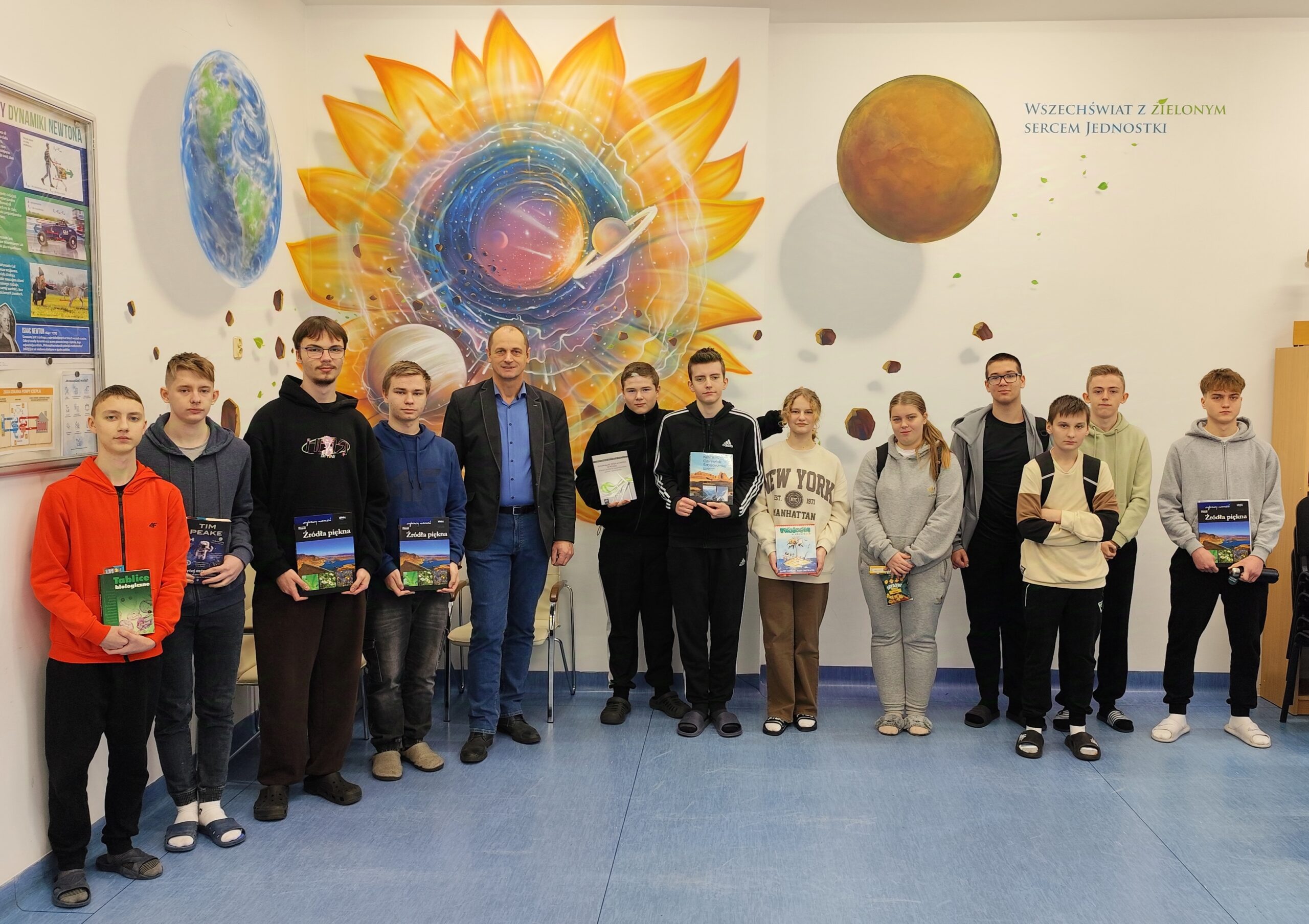 Wręczenie nagród oraz podsumowanie debaty „Postęp technologiczny to właściwa droga dla człowieka, która pozwoli mu pokonać kryzys klimatyczny i zadbać o planetę Ziemię”, która odbyła się w pracowni OZE dnia 20.11.2024 r. z uwagi na udział naszej szkoły w projekcie WSZECHŚWIAT Z ZIELONYM SERCEM JEDNOSTKI realizowanego w ramach Programu Regionalnego Wsparcia Edukacji Ekologicznej, część pn. „EKOPRACOWNIA – ZIELONE SERCE SZKOŁY”.