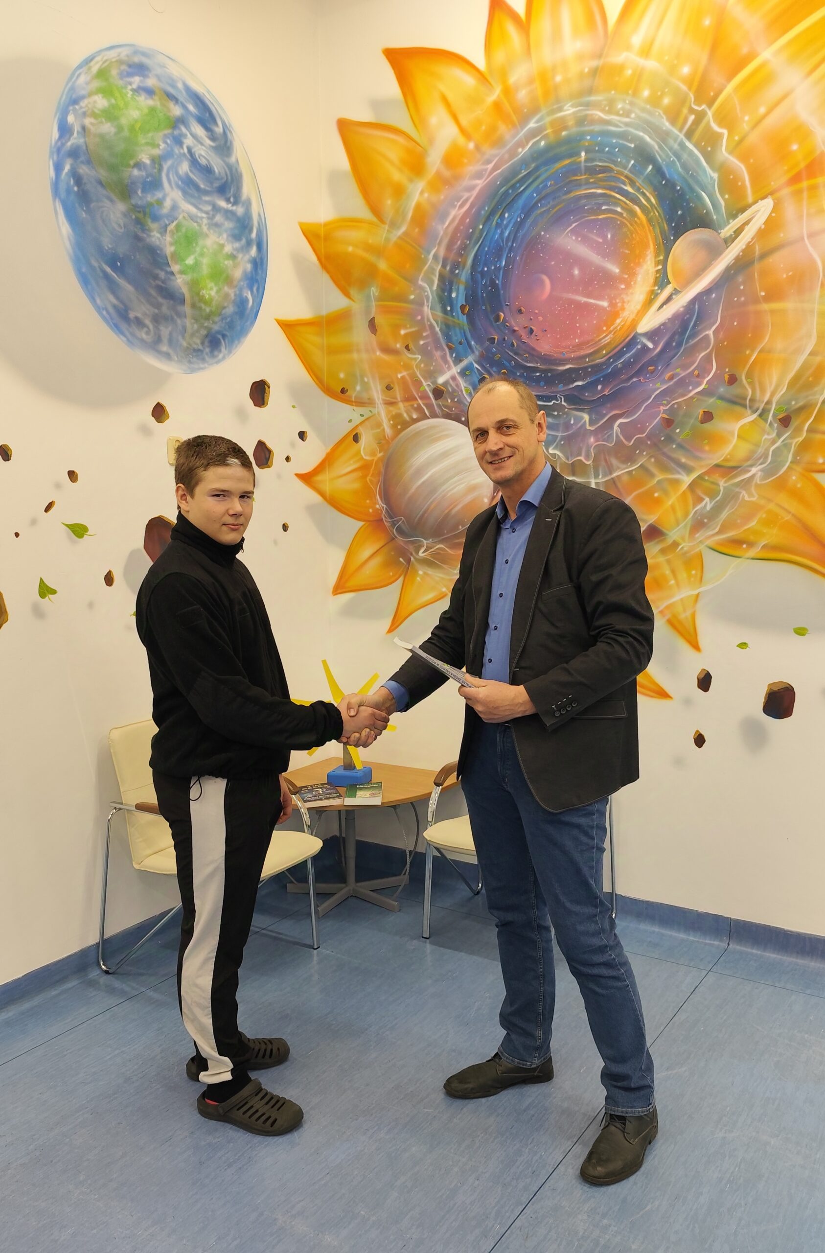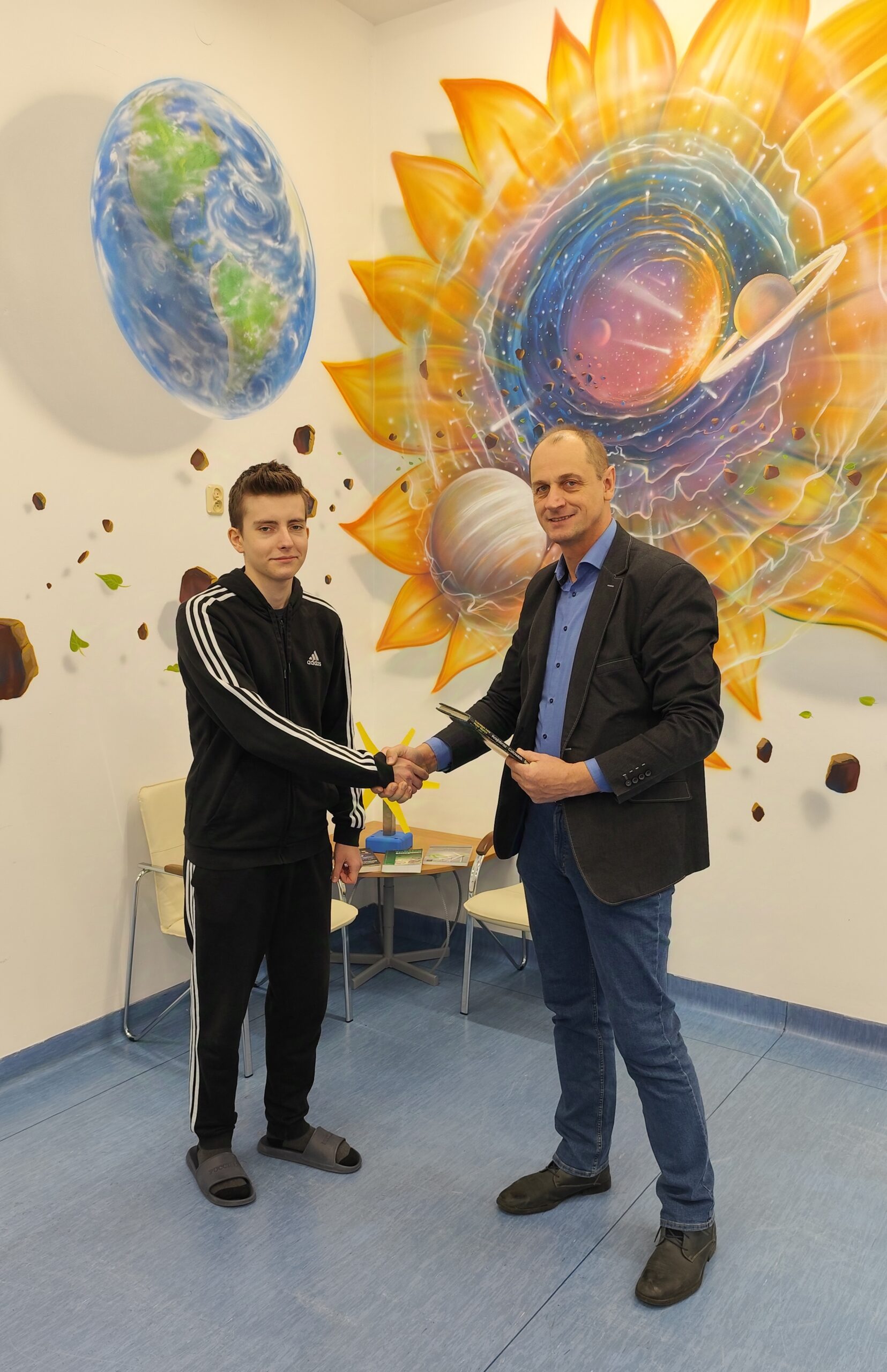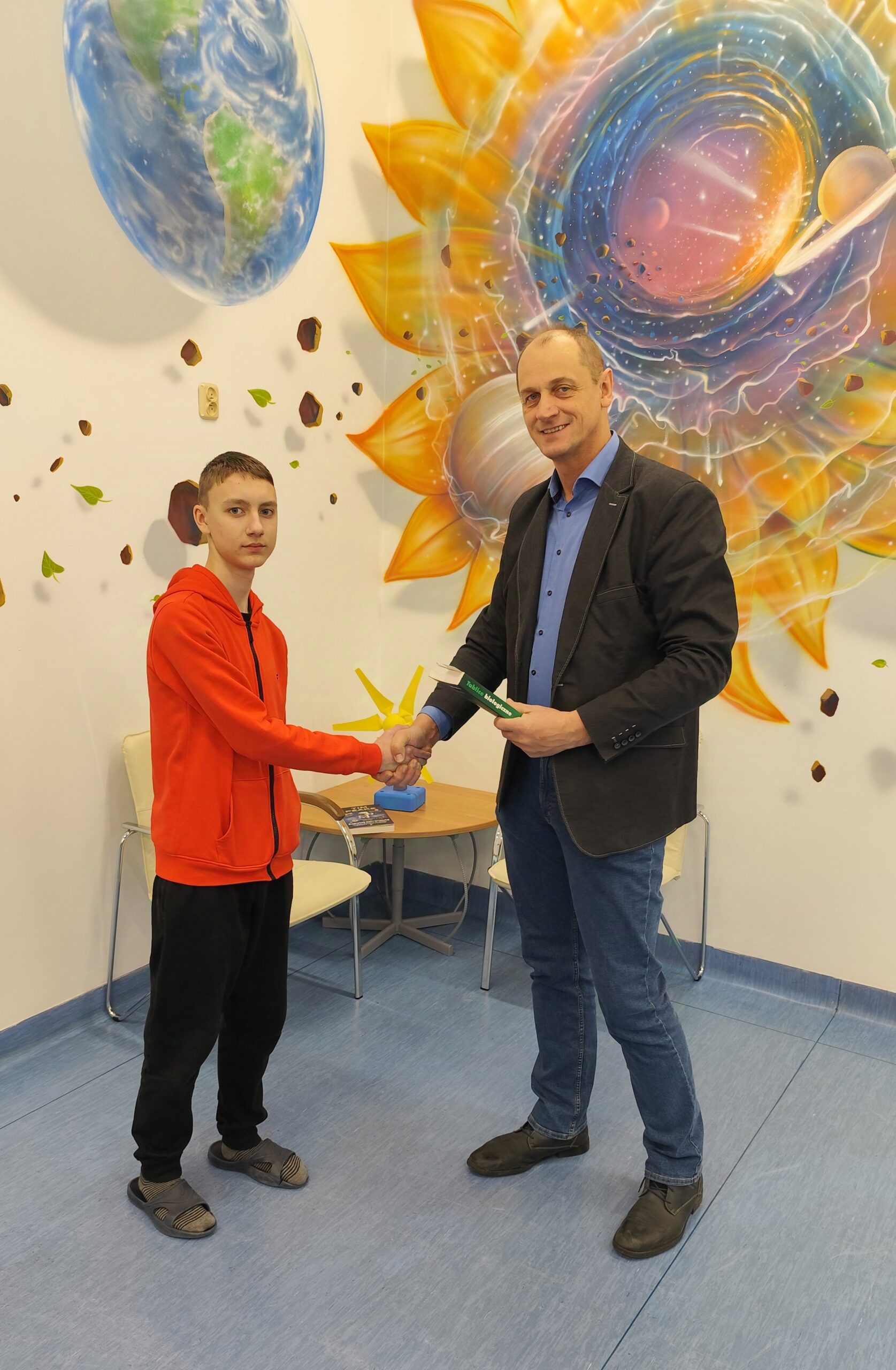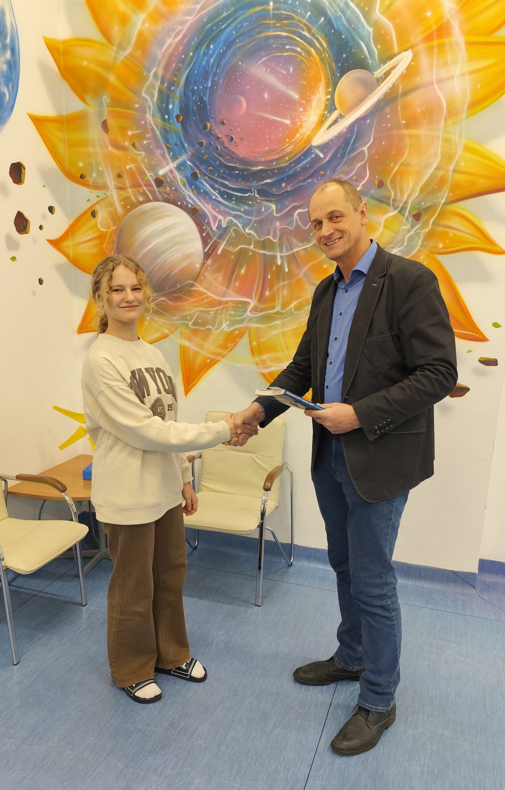 Wręczenie nagród oraz podsumowanie debaty „Postęp technologiczny to właściwa droga dla człowieka, która pozwoli mu pokonać kryzys klimatyczny i zadbać o planetę Ziemię”, która odbyła się w pracowni OZE dnia 20.11.2024 r. z uwagi na udział naszej szkoły w projekcie WSZECHŚWIAT Z ZIELONYM SERCEM JEDNOSTKI realizowanego w ramach Programu Regionalnego Wsparcia Edukacji Ekologicznej, część pn. „EKOPRACOWNIA – ZIELONE SERCE SZKOŁY”.