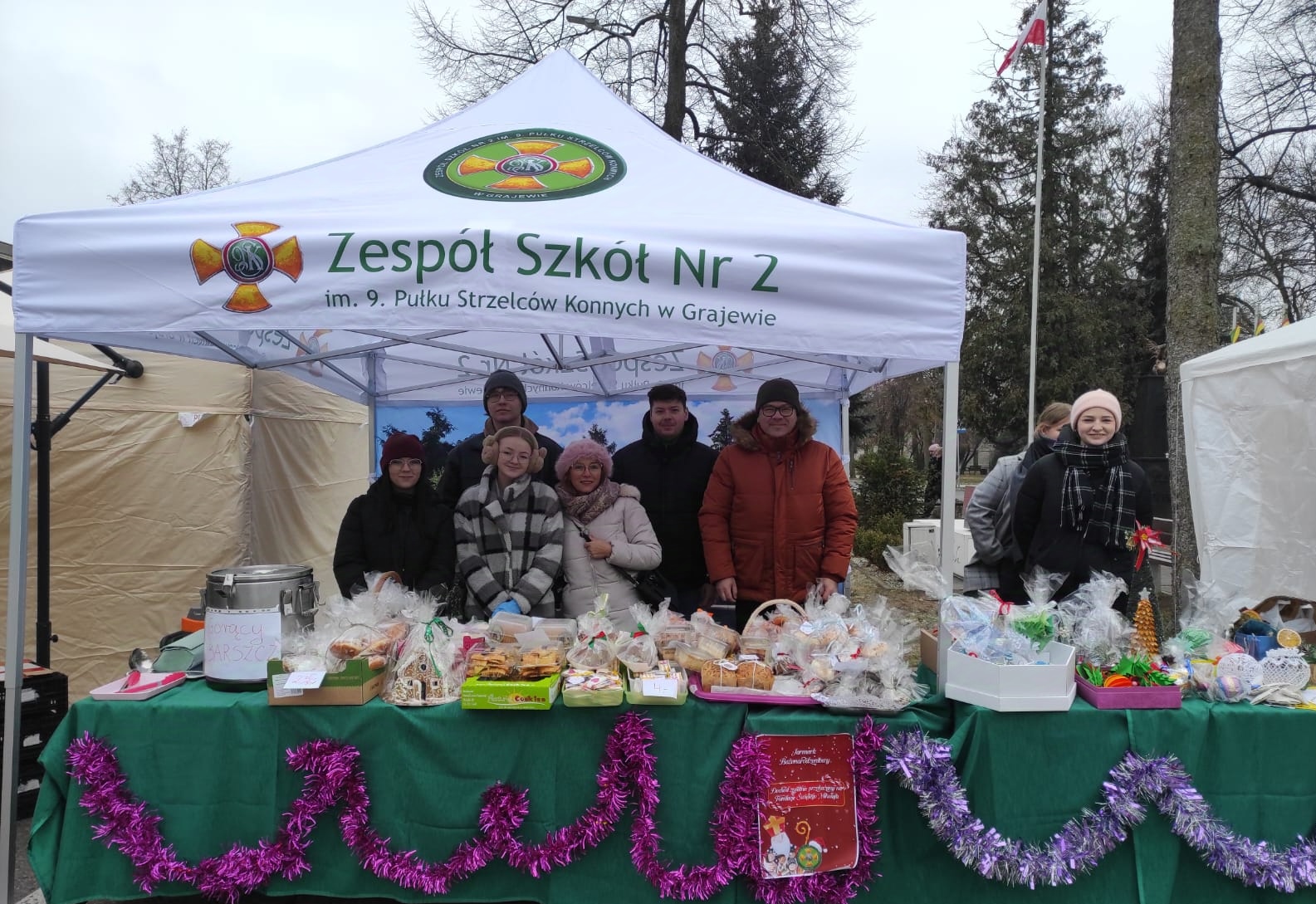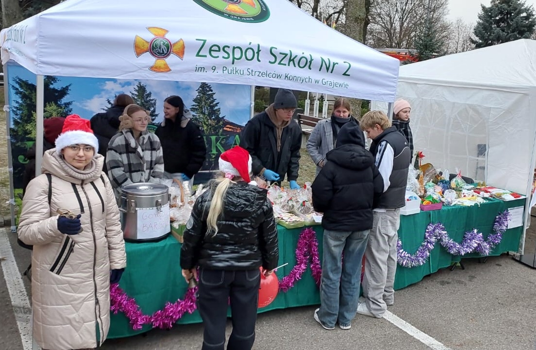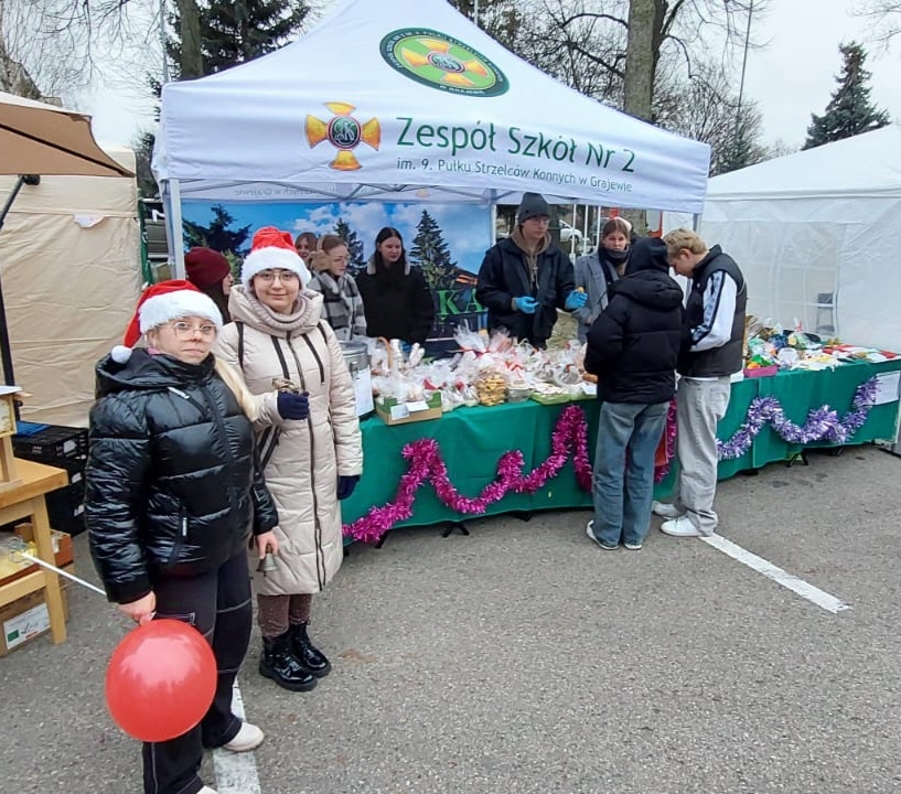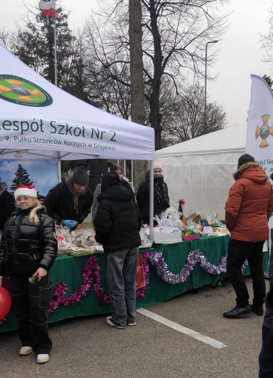 Dnia 14 grudnia 2024 r. Zespół Szkół Nr 2 im. 9. PSK w Grajewie wziął udział w Jarmarku Bożonarodzeniowym, który odbył się pod Urzędem Miasta Grajewo. Na stoisku naszej szkoły można było poczuć prawdziwą magię świąt – serwowaliśmy gorący barszcz z pasztecikami, pyszne domowe wypieki, a także zachwycaliśmy ręcznie robionymi ozdobami świątecznymi oraz wydrukami 3D w klimacie świąt.