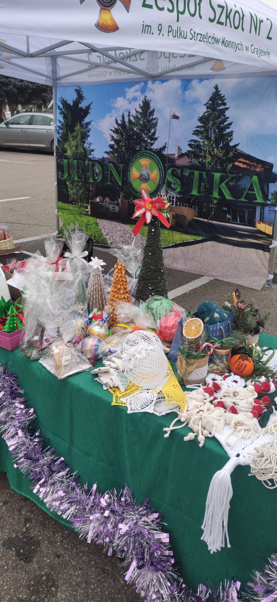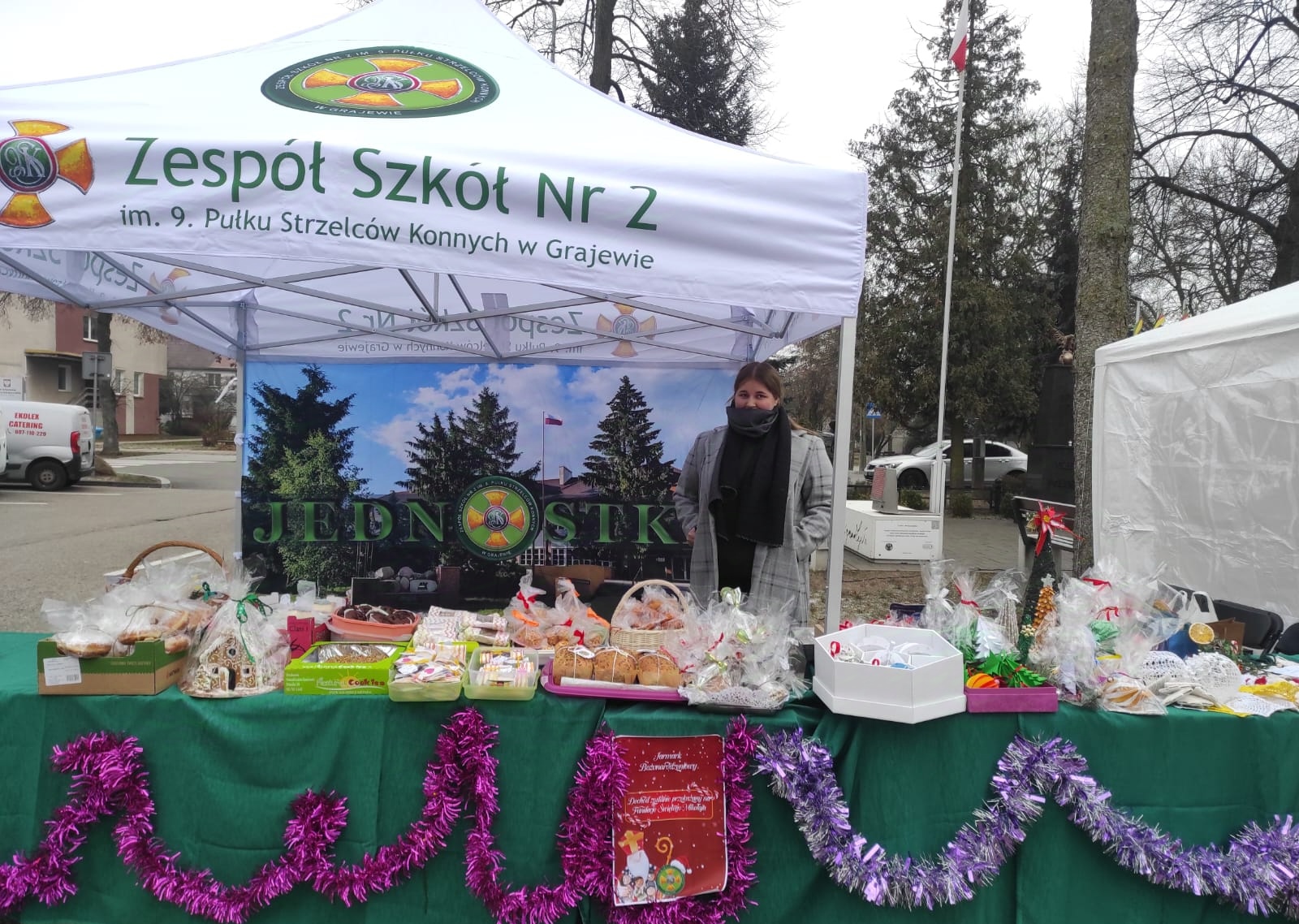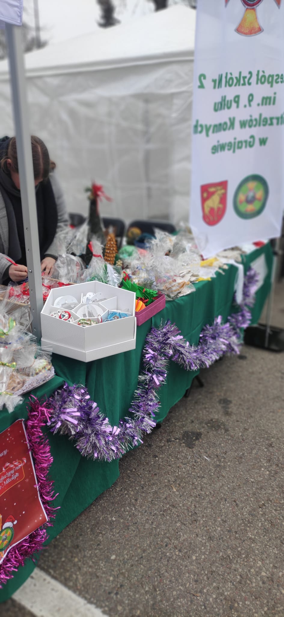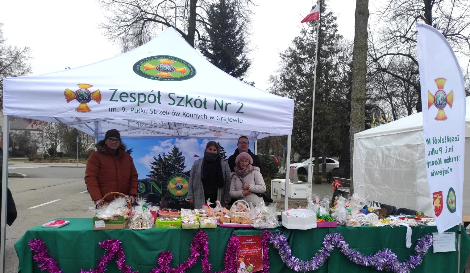 Dnia 14 grudnia 2024 r. Zespół Szkół Nr 2 im. 9. PSK w Grajewie wziął udział w Jarmarku Bożonarodzeniowym, który odbył się pod Urzędem Miasta Grajewo. Na stoisku naszej szkoły można było poczuć prawdziwą magię świąt – serwowaliśmy gorący barszcz z pasztecikami, pyszne domowe wypieki, a także zachwycaliśmy ręcznie robionymi ozdobami świątecznymi oraz wydrukami 3D w klimacie świąt.