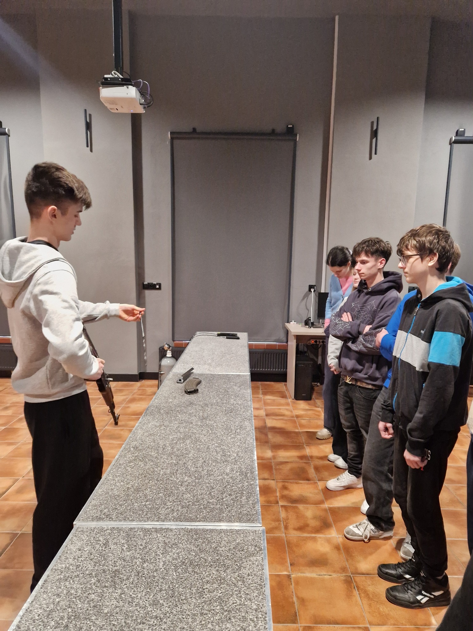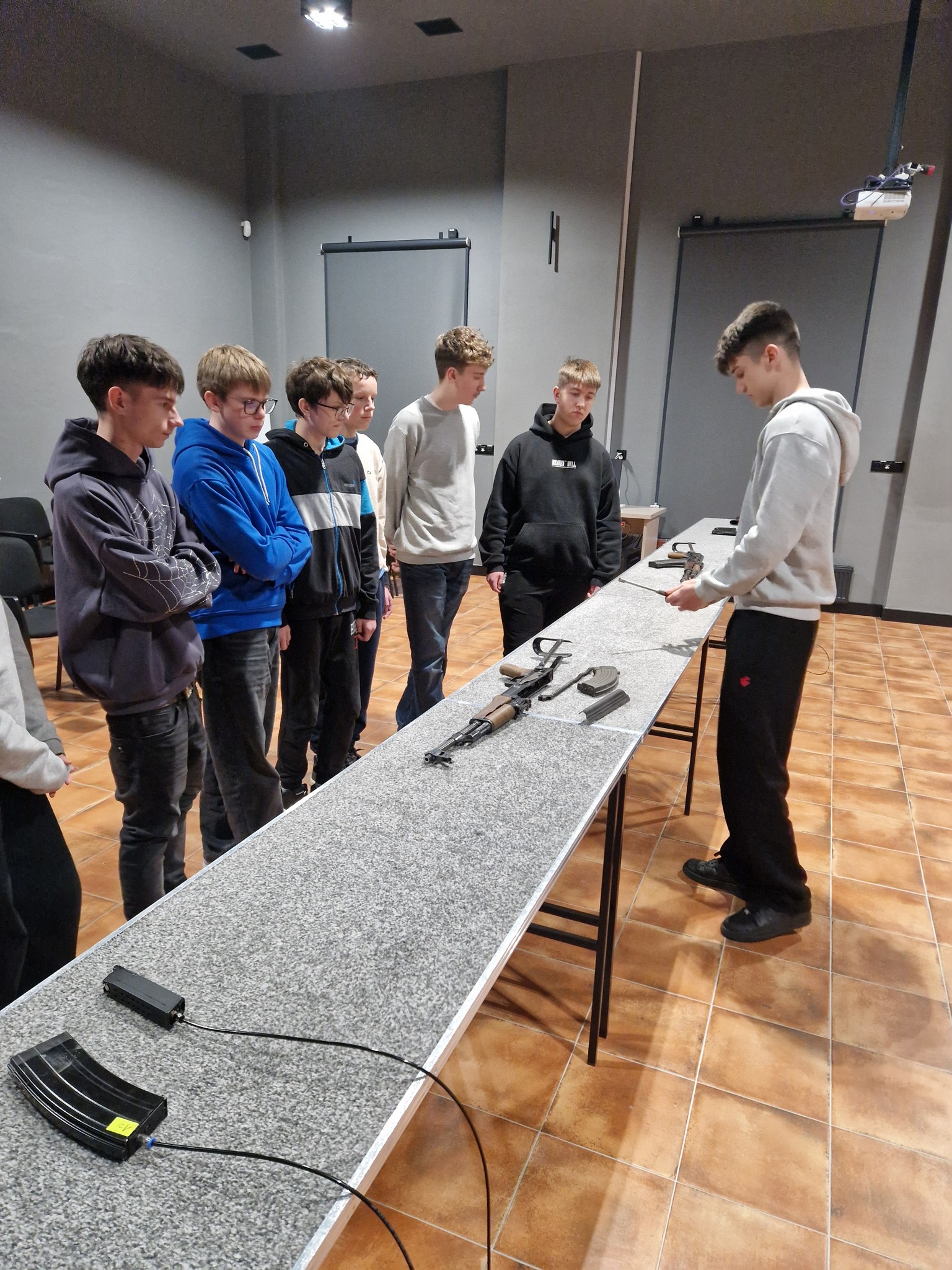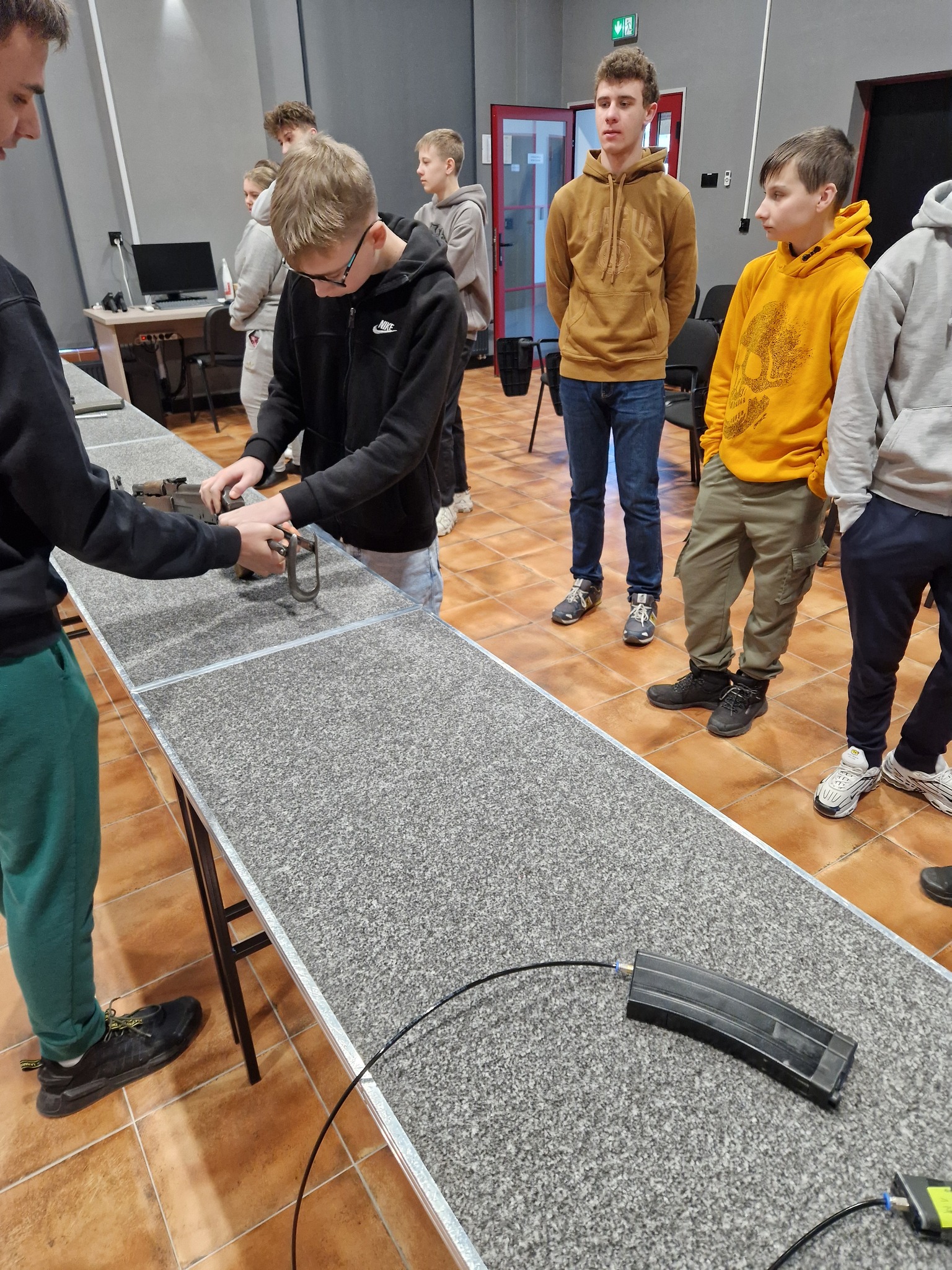 Podstawy strzelania z broni pneumatycznej przeprowadził p. Radosław Skorupa. Natomiast rozkładanie i składanie broni przeprowadzili uczniowie kl. 3w: Oliwier Suchodolski, Gabriela Komor oraz kl. 2w: Krzysztof Zawistowski, Łukasz Zyskowski.