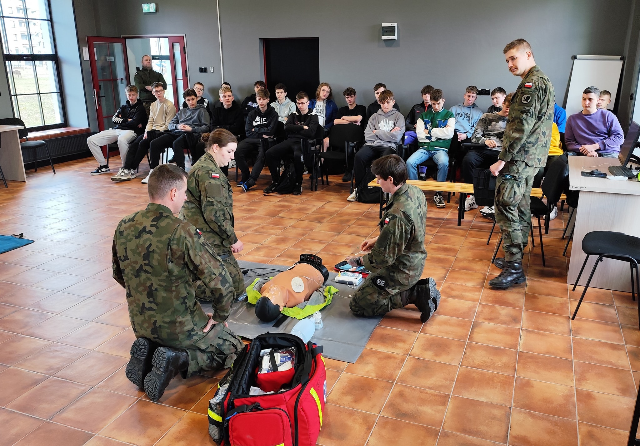 Dnia 17.03.2025 r. uczniowie klas 3dp, 2ae i 2dp wzięli udział w szkoleniu z ratownictwa medycznego, które poprowadzili żołnierze 2. Brygady Pancernej Legionów z Czerwonego Boru oraz 2. Brygady Zmotoryzowanej z Wojewodzina wchodzących w skład 1.Dywizja Piechoty Legionów marszałka Józefa Piłsudskiego.