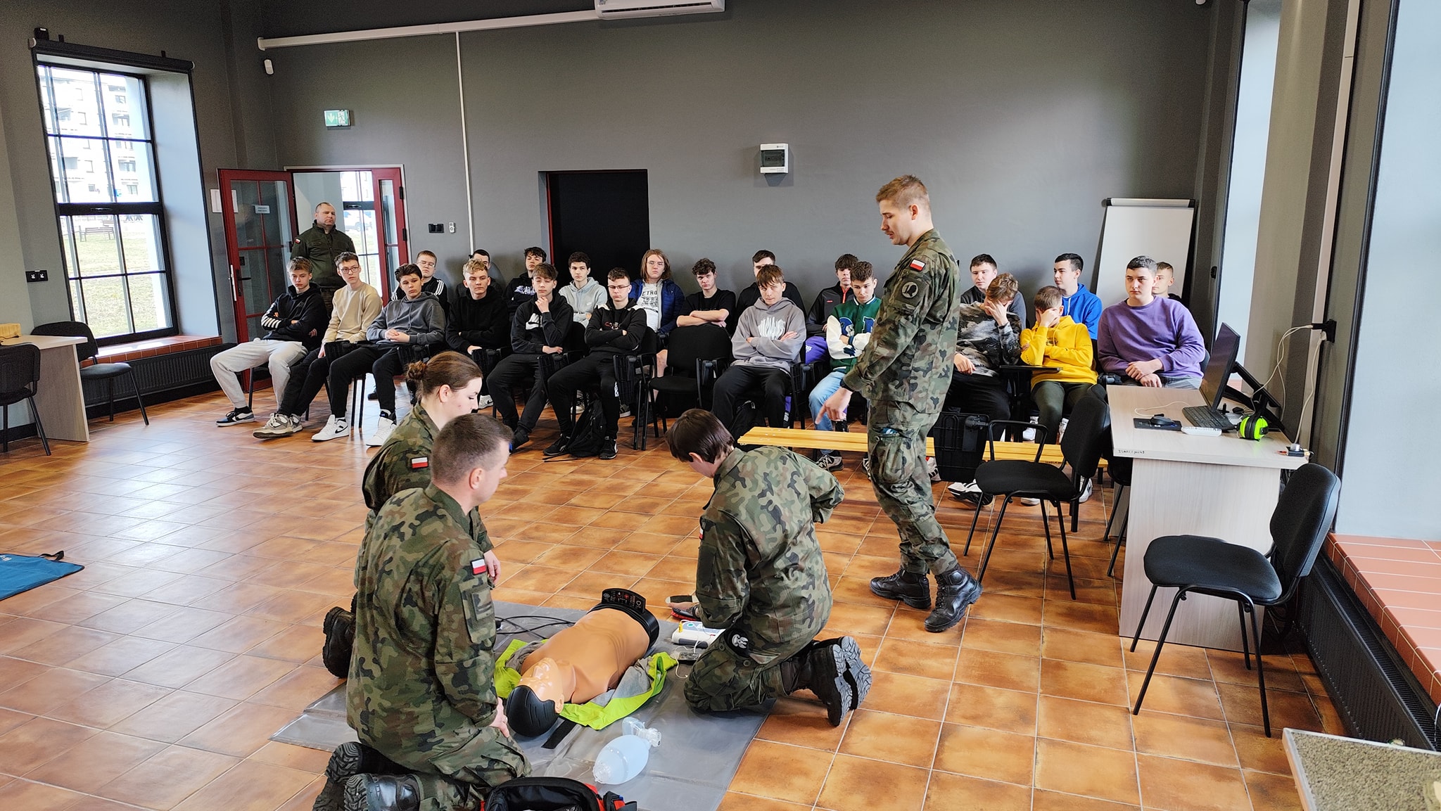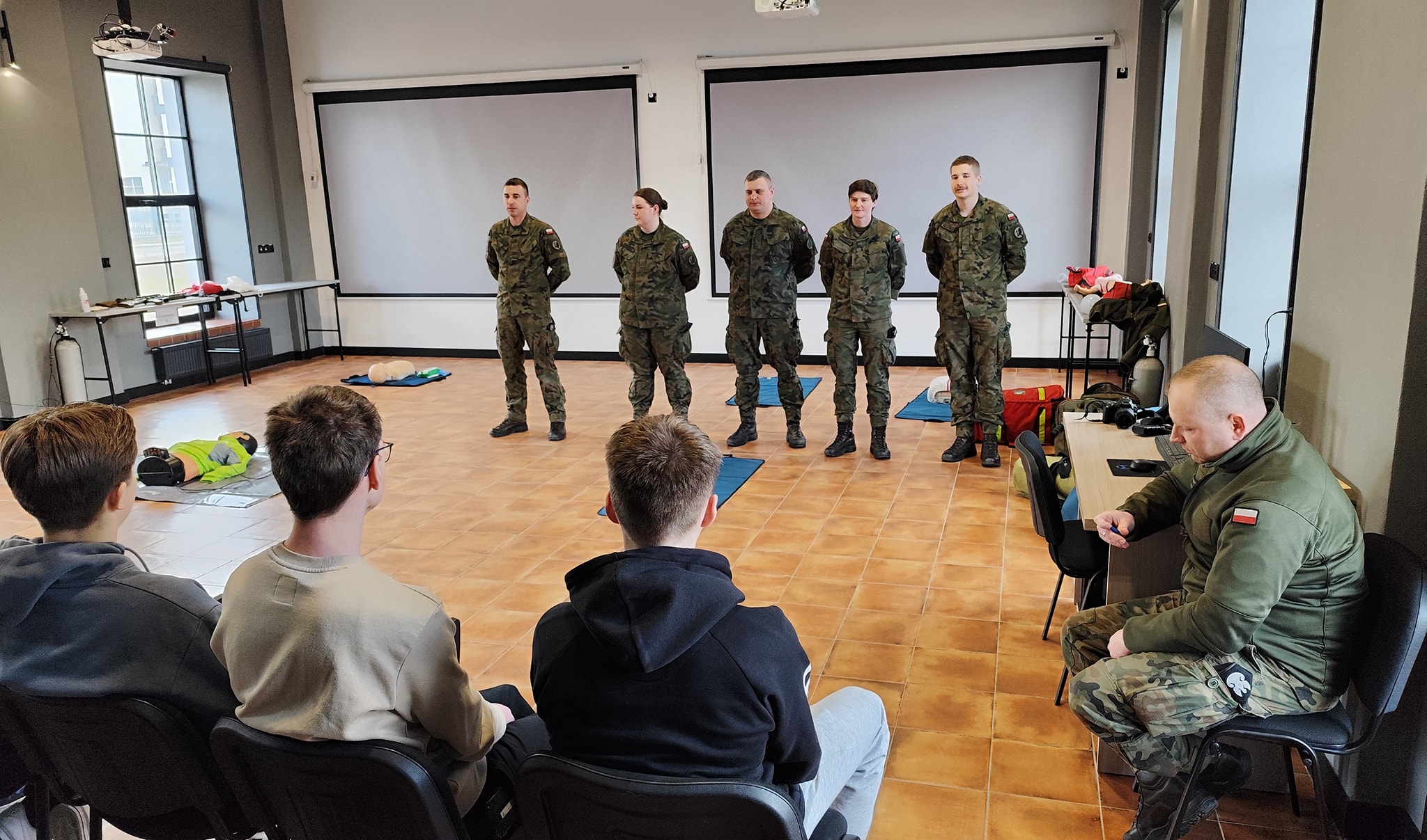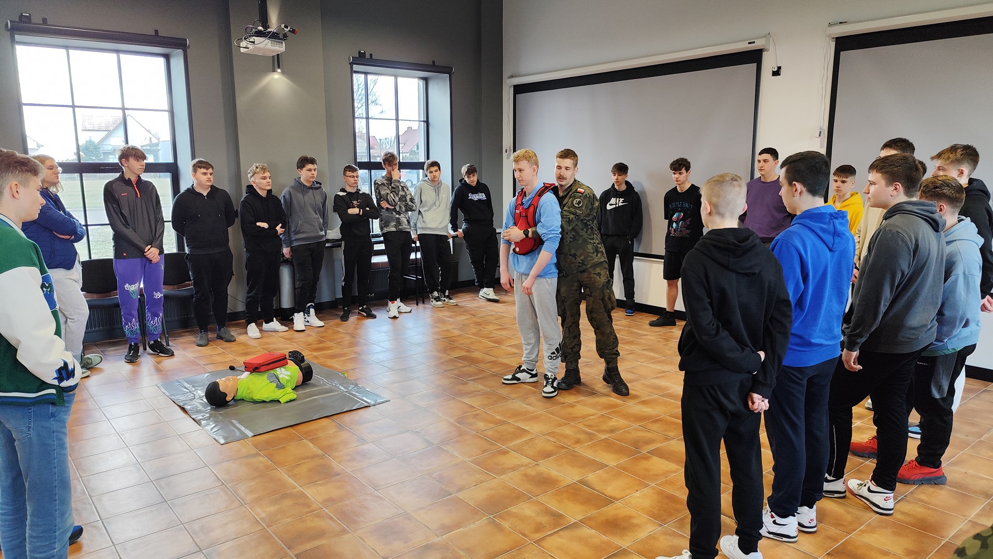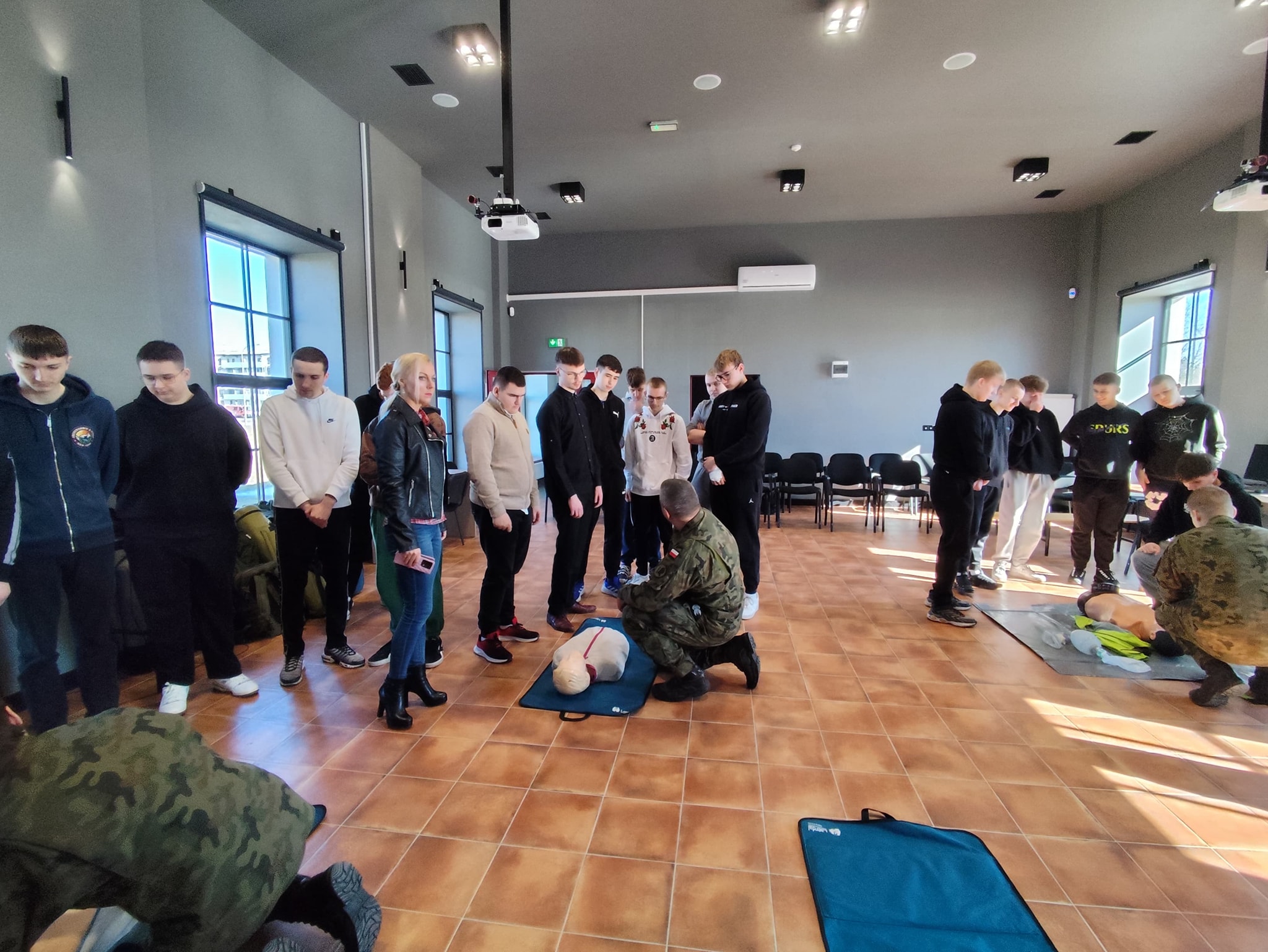 Dnia 17.03.2025 r. uczniowie klas 3dp, 2ae i 2dp wzięli udział w szkoleniu z ratownictwa medycznego, które poprowadzili żołnierze 2. Brygady Pancernej Legionów z Czerwonego Boru oraz 2. Brygady Zmotoryzowanej z Wojewodzina wchodzących w skład 1.Dywizja Piechoty Legionów marszałka Józefa Piłsudskiego.