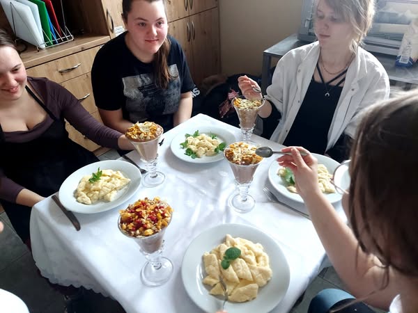 Klasa gastronomiczna przygotowała pierogi leniwe i kisiel czekoladowy.