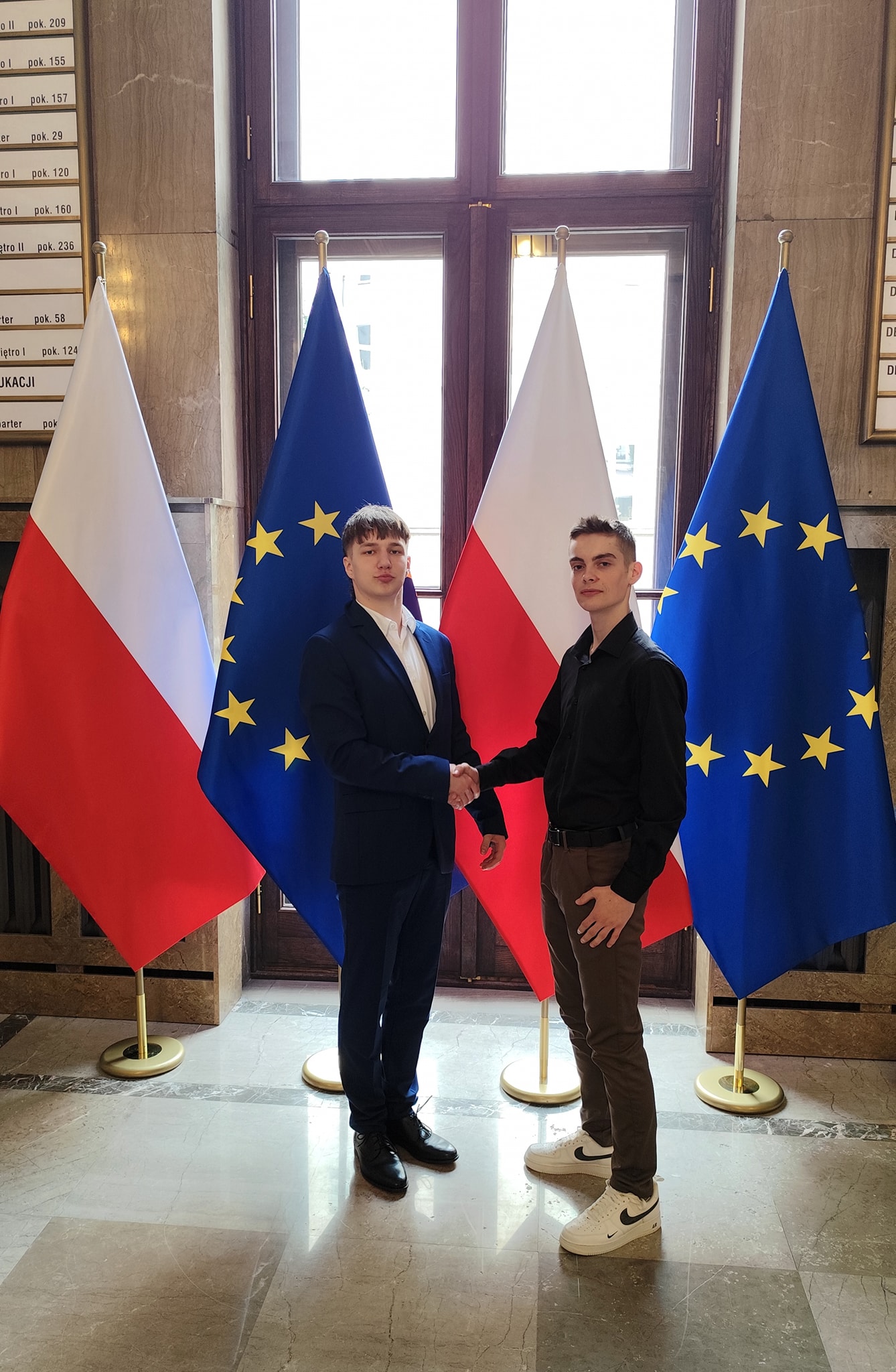 Dnia 26.03.2025 r. uczniowie Zespołu Szkół Nr 2 im. 9. PSK w Grajewie – Adrian Mróz z klasy 4ae (technik ekonomista) oraz Patryk Dziarnowski z klasy 5d (technik informatyk) wzięli udział w ogólnopolskim etapie V edycji Olimpiady Wiedzy o Prawach Ucznia, który odbył się w Ministerstwie Sprawiedliwości. Do finału spośród 750 uczniów awansowało 30 osób, w tym uczniowie naszej szkoły!!
