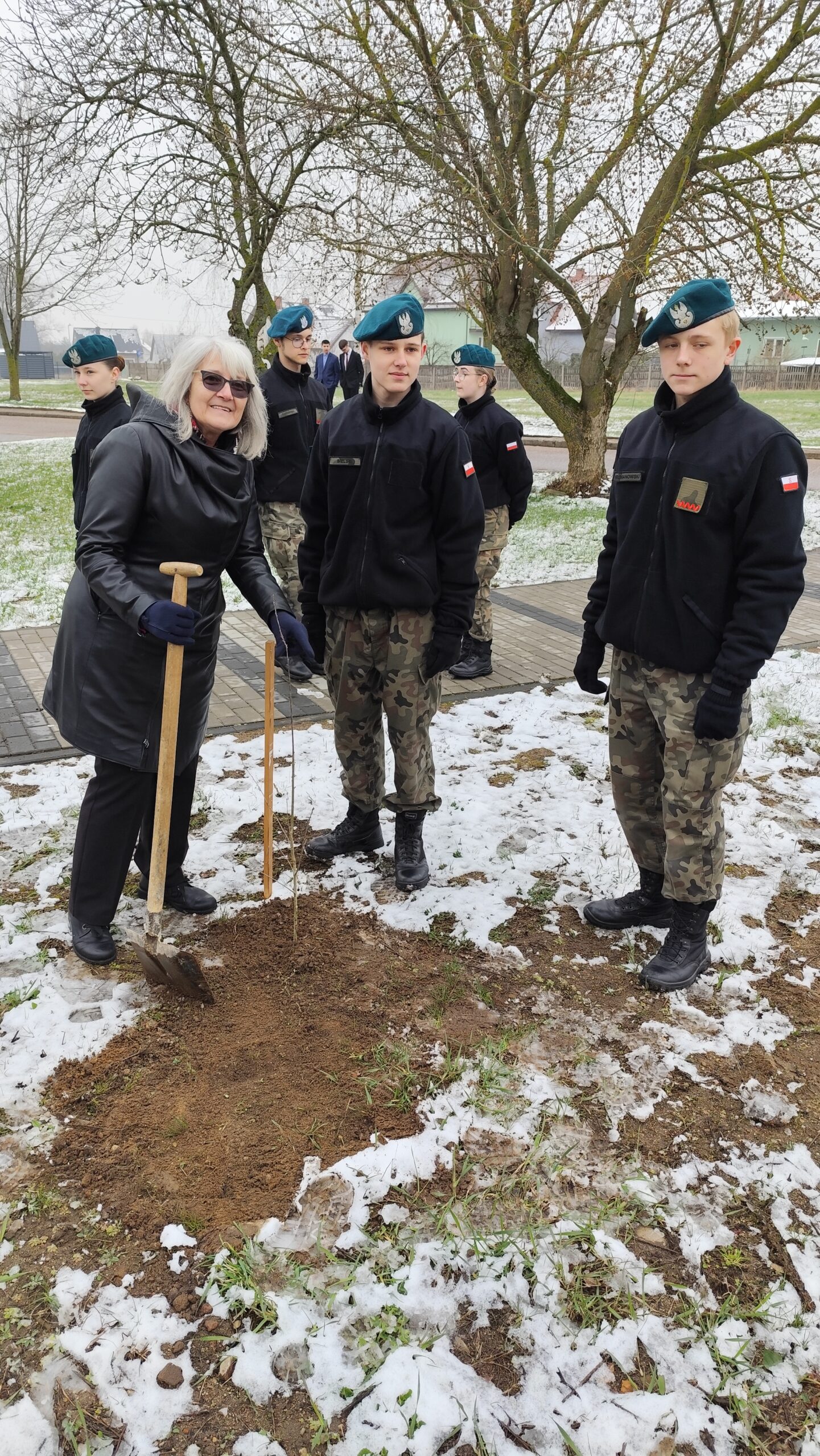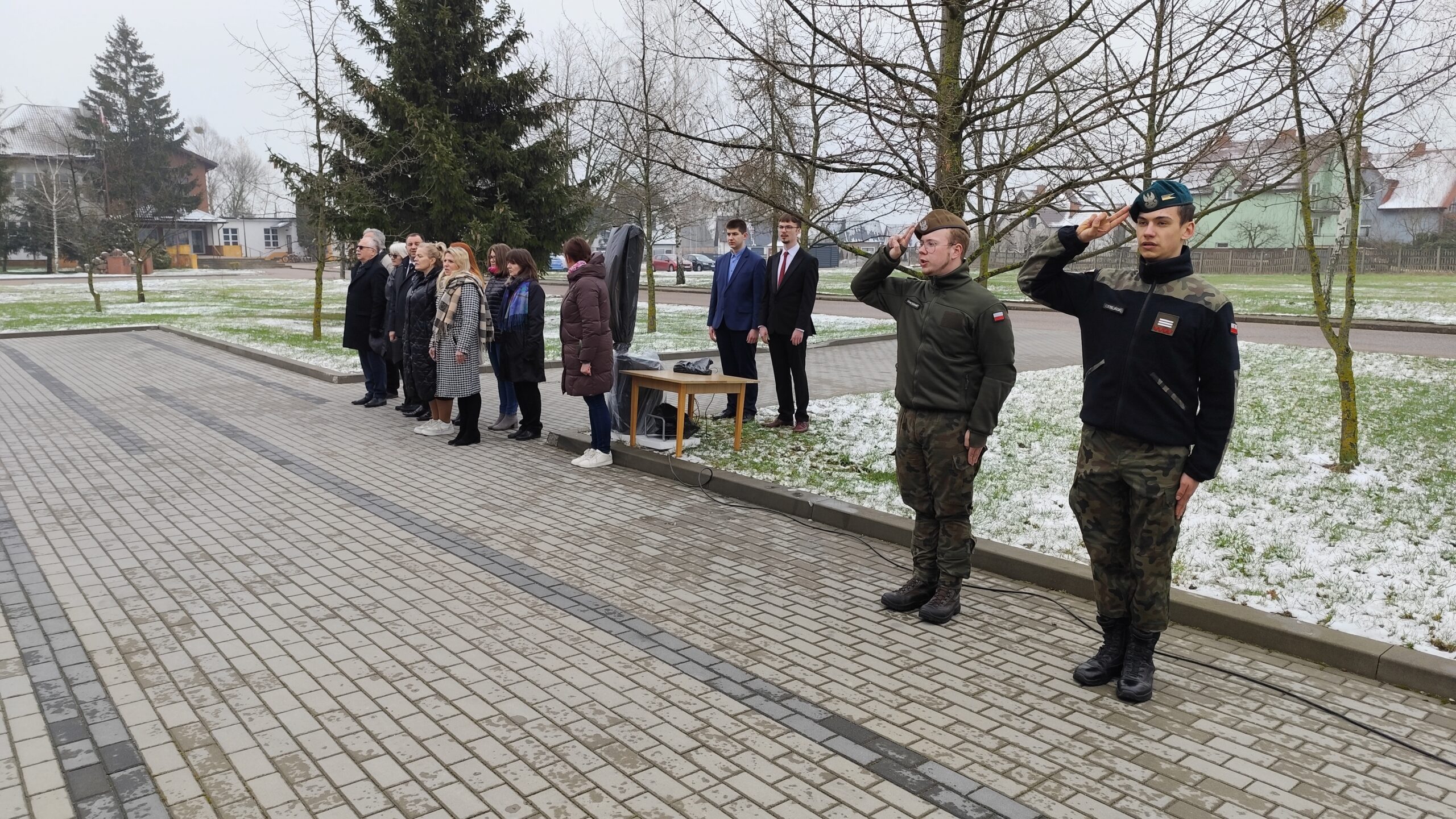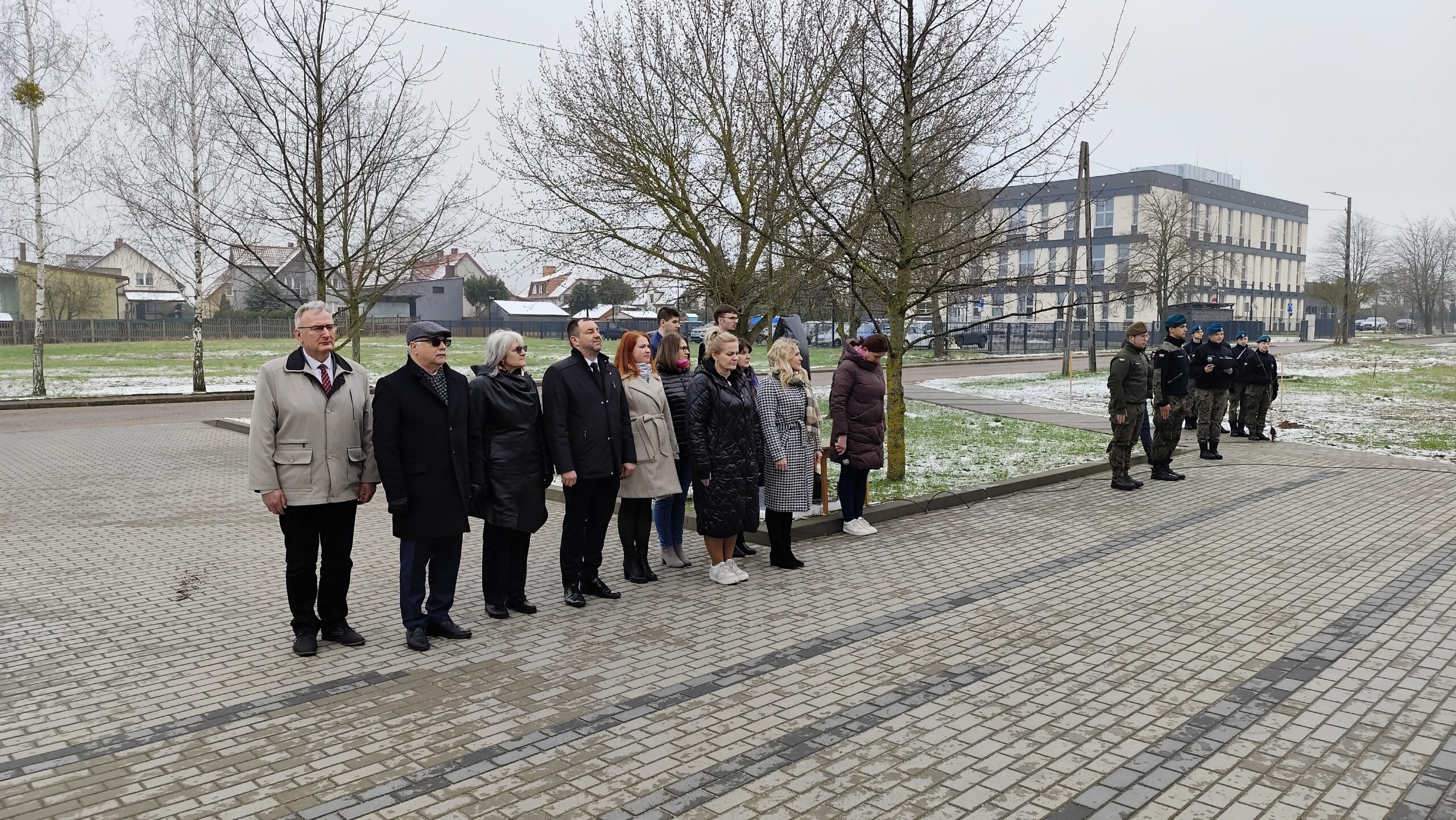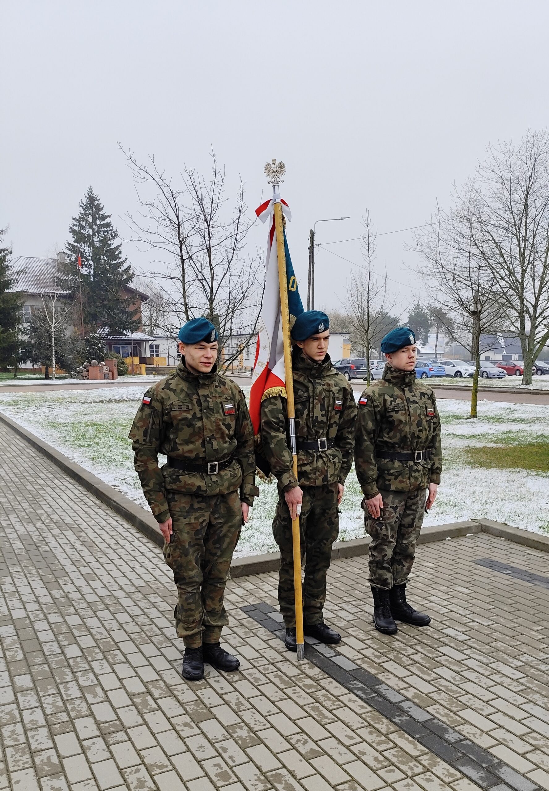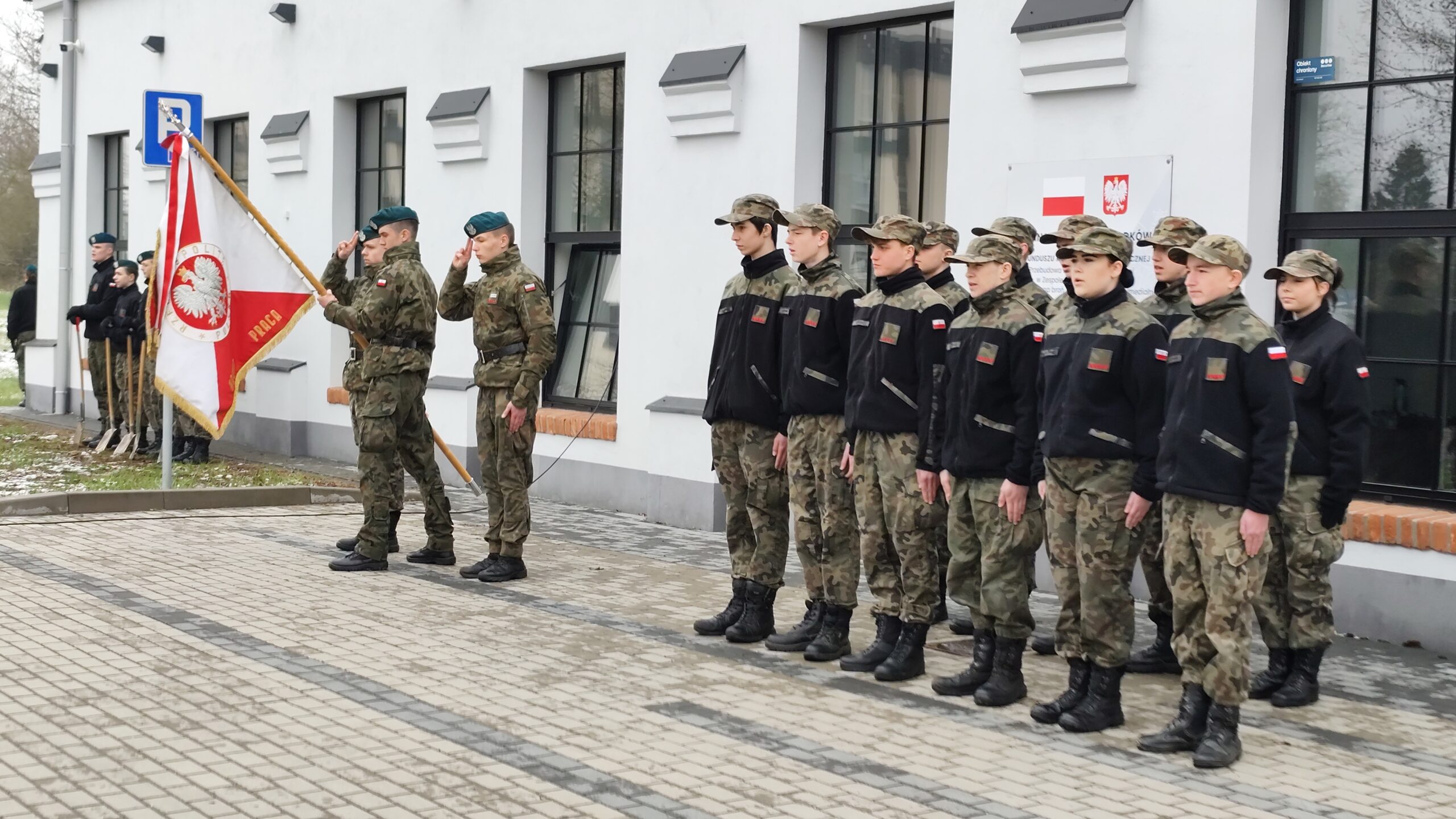 Dnia 11 kwietnia 2025 r. na terenie szkoły w uroczystym apelu upamiętniliśmy tragiczny los od strzału w tył głowy Żołnierzy 9. Pułku Strzelców Konnych. Na budynku Grajewskiego Centrum Edukacji Obronnej została odsłonięta Tablica Pamięci z nazwiskami pomordowanych żołnierzy 9. PSK, a przed budynkiem posadziliśmy szczególne drzewka pamięci – dęby, jako symbol długowieczności i twardości Naszej pamięci o tych, których tradycje i dobre imię kontynuujemy.
