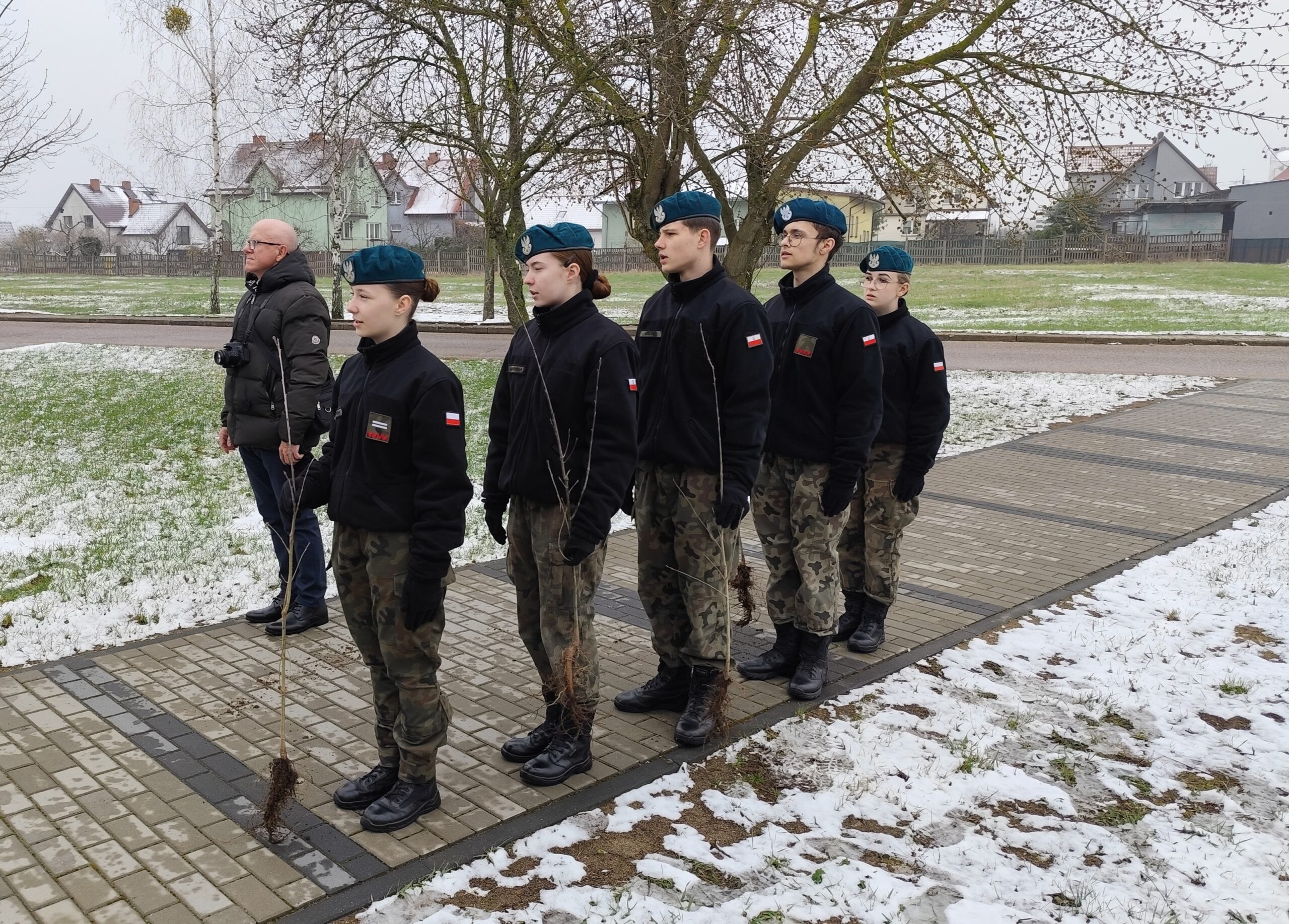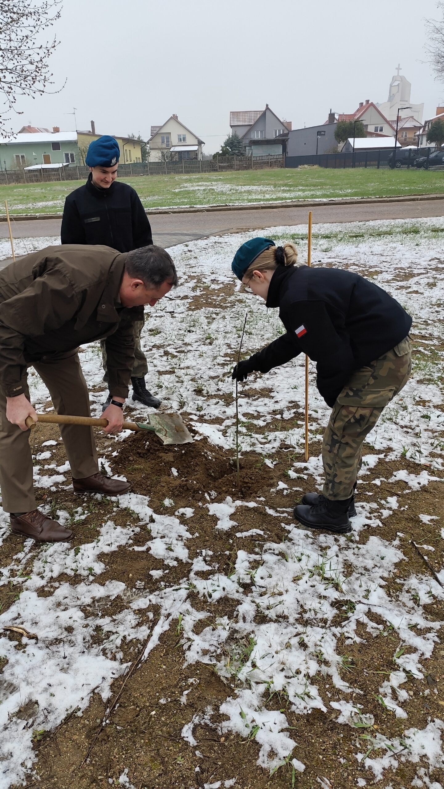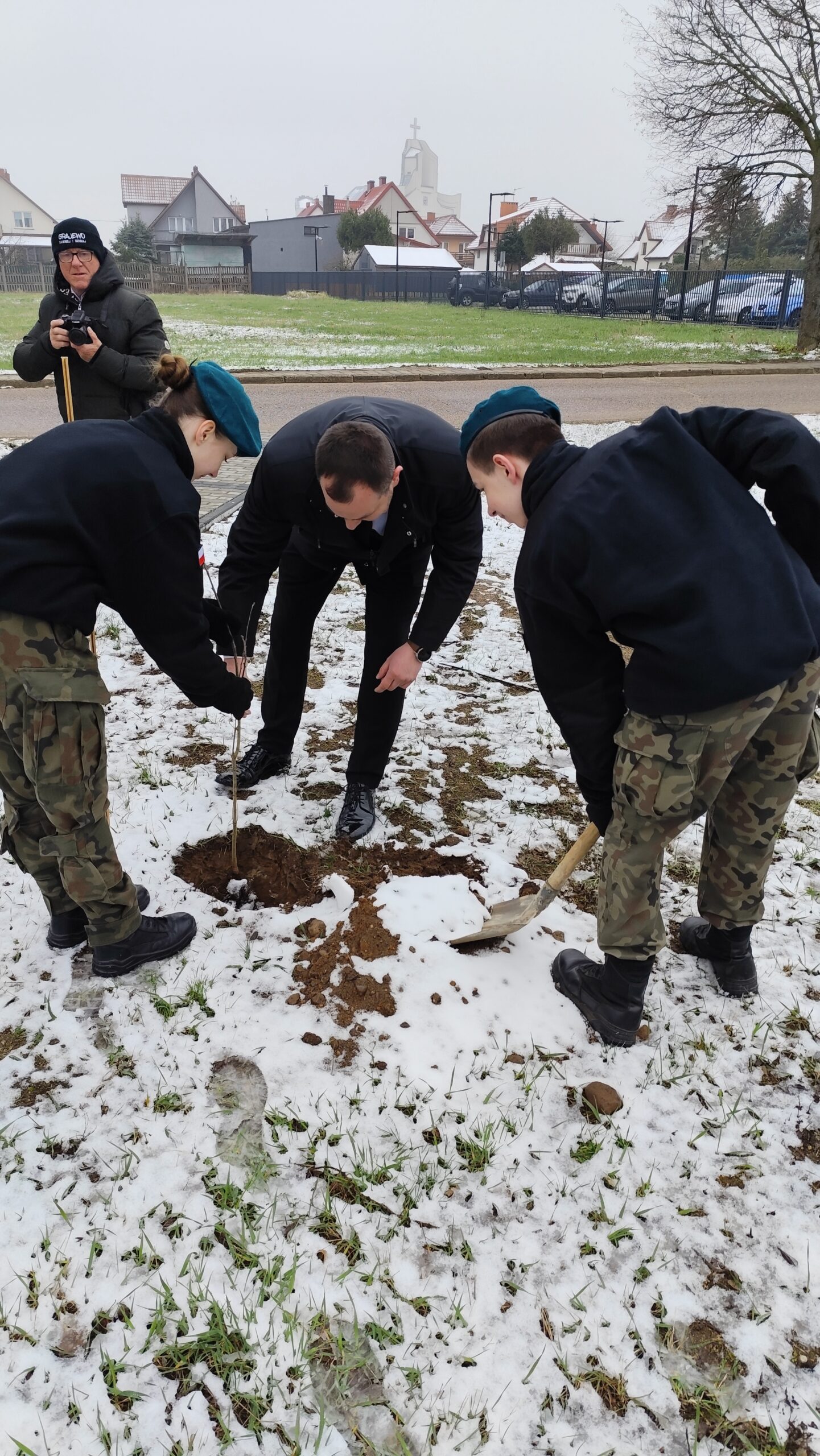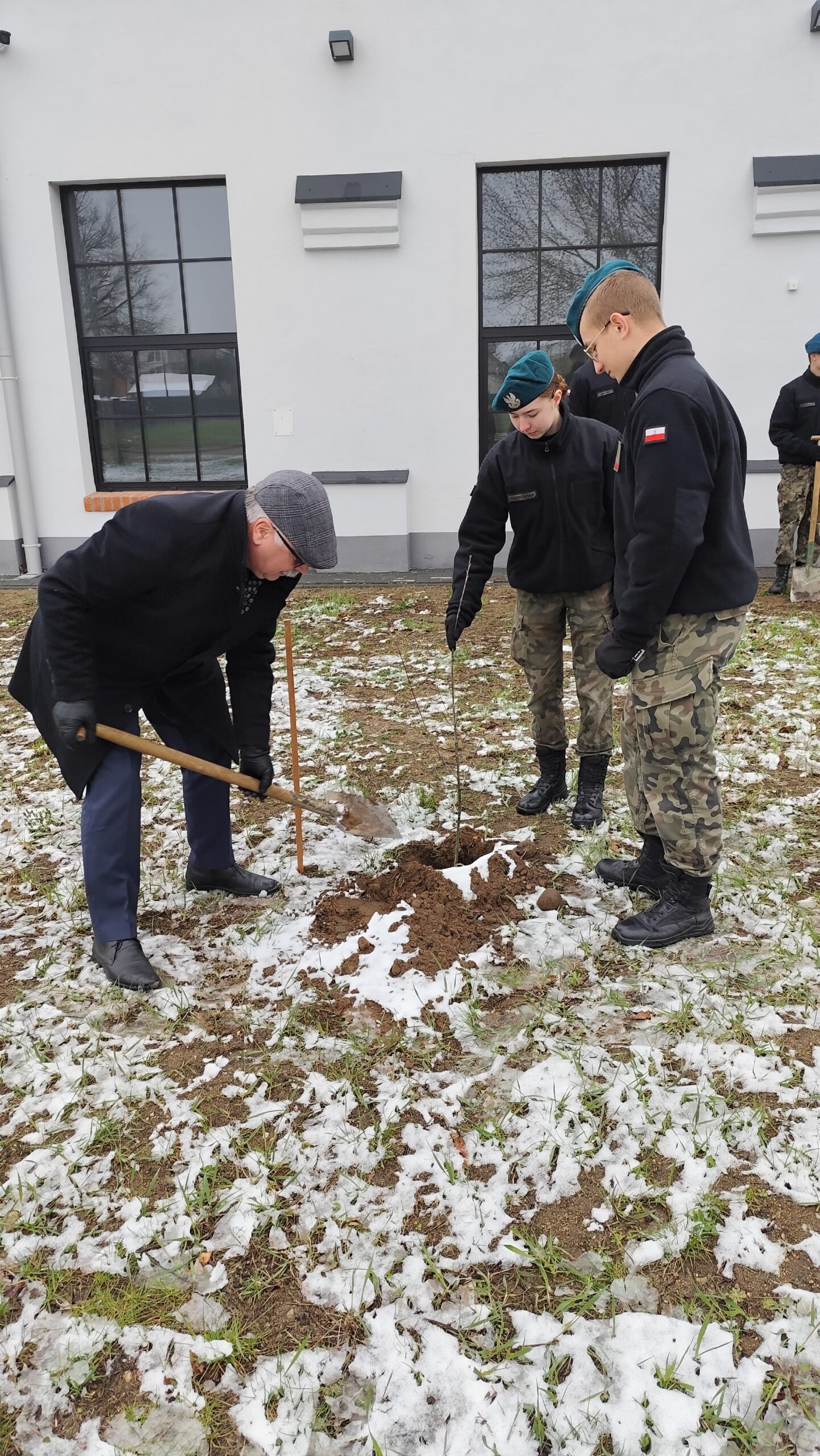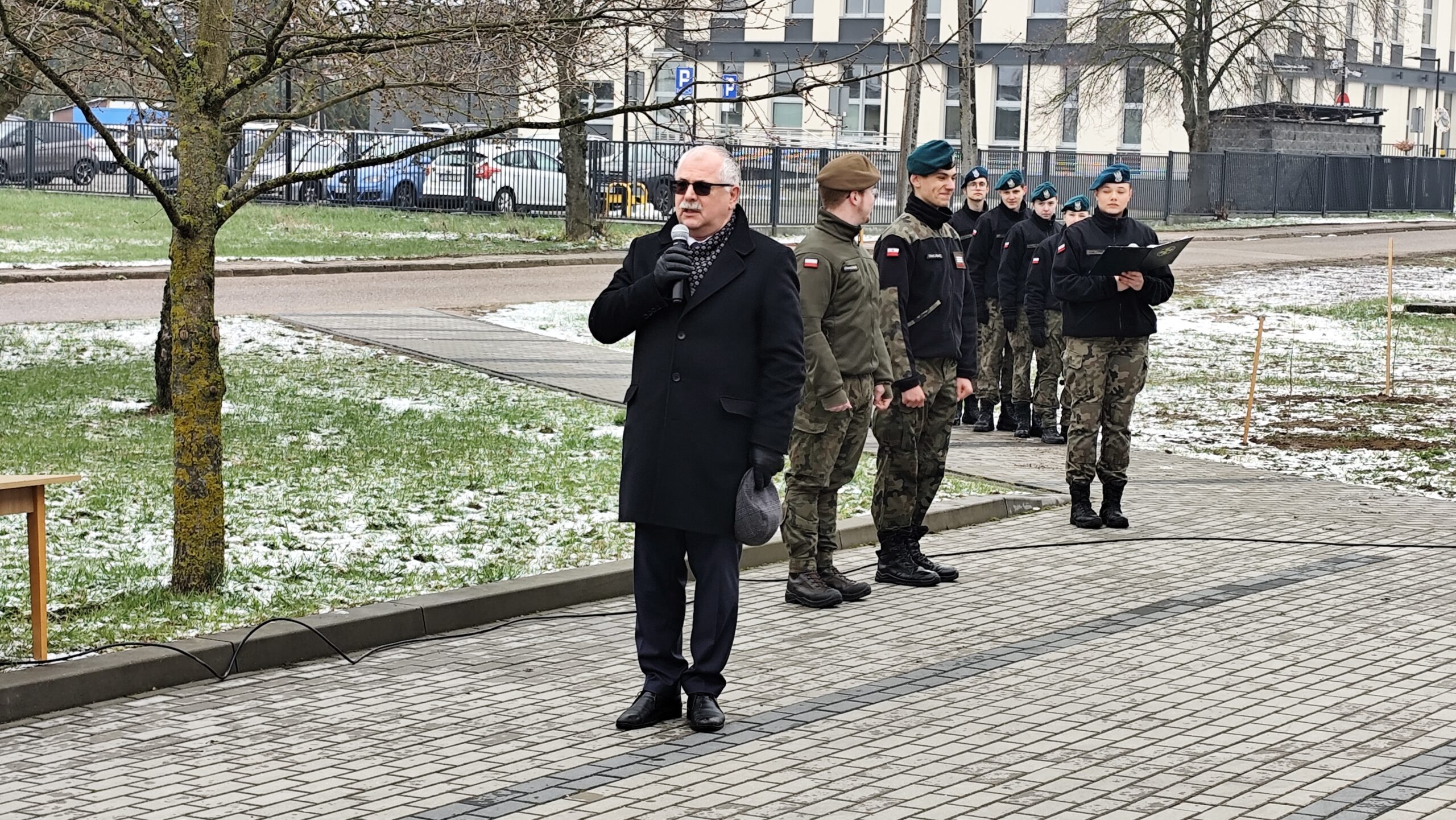 Dnia 11 kwietnia 2025 r. na terenie szkoły w uroczystym apelu upamiętniliśmy tragiczny los od strzału w tył głowy Żołnierzy 9. Pułku Strzelców Konnych. Na budynku Grajewskiego Centrum Edukacji Obronnej została odsłonięta Tablica Pamięci z nazwiskami pomordowanych żołnierzy 9. PSK, a przed budynkiem posadziliśmy szczególne drzewka pamięci – dęby, jako symbol długowieczności i twardości Naszej pamięci o tych, których tradycje i dobre imię kontynuujemy.