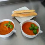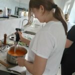 Dzisiejsze gotowanie klasy 1a. Krem z pomidorów z chlebkami własnego wypieku, a na deser Brownie czekoladowe.