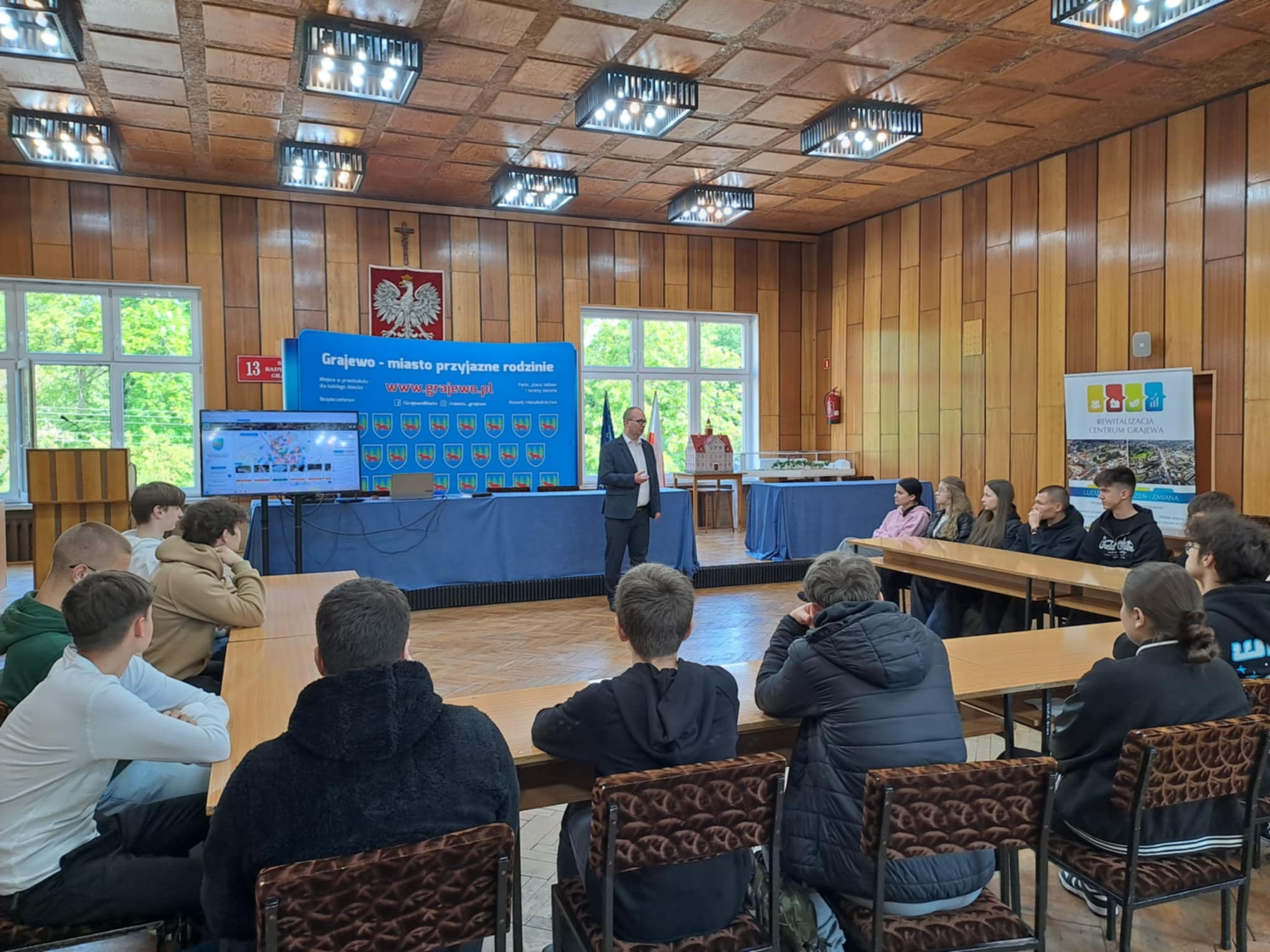 Burmistrz wyjaśnił jak działa administracja lokalna, jakie decyzje podejmuje władza samorządowa oraz w jaki sposób realizowane są projekty i inicjatywy na rzecz mieszkańców Grajewa.