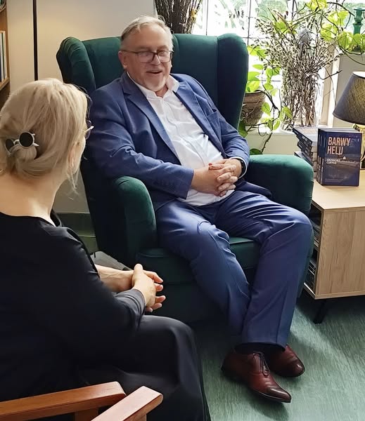 „Barwy Helu” to ostatni, ale wyjątkowy akcent, zamykający grywalizację GRANIE W POMAGANIE. Spotkanie autorskie z Panem Grzegorzem Curyło – emerytowanym polonistą i dyrektorem szkoły, laureatem konkursów recytatorskich, członkiem Rady Kultury w Grajewie, a przede wszystkim pisarzem – to prawdziwa uczta intelektualna! To odkrywanie tajemnic kryminałów retro, to pieczołowitość pisarska, to miłość prawdy historycznej i prawdziwe historie miłości Grajewa (i Grajewianki jednej…), to nienasycenie pięknem języka ojczystego i wiele wiele więcej. Po raz pierwszy w naszej czytelni, nie ostatni.