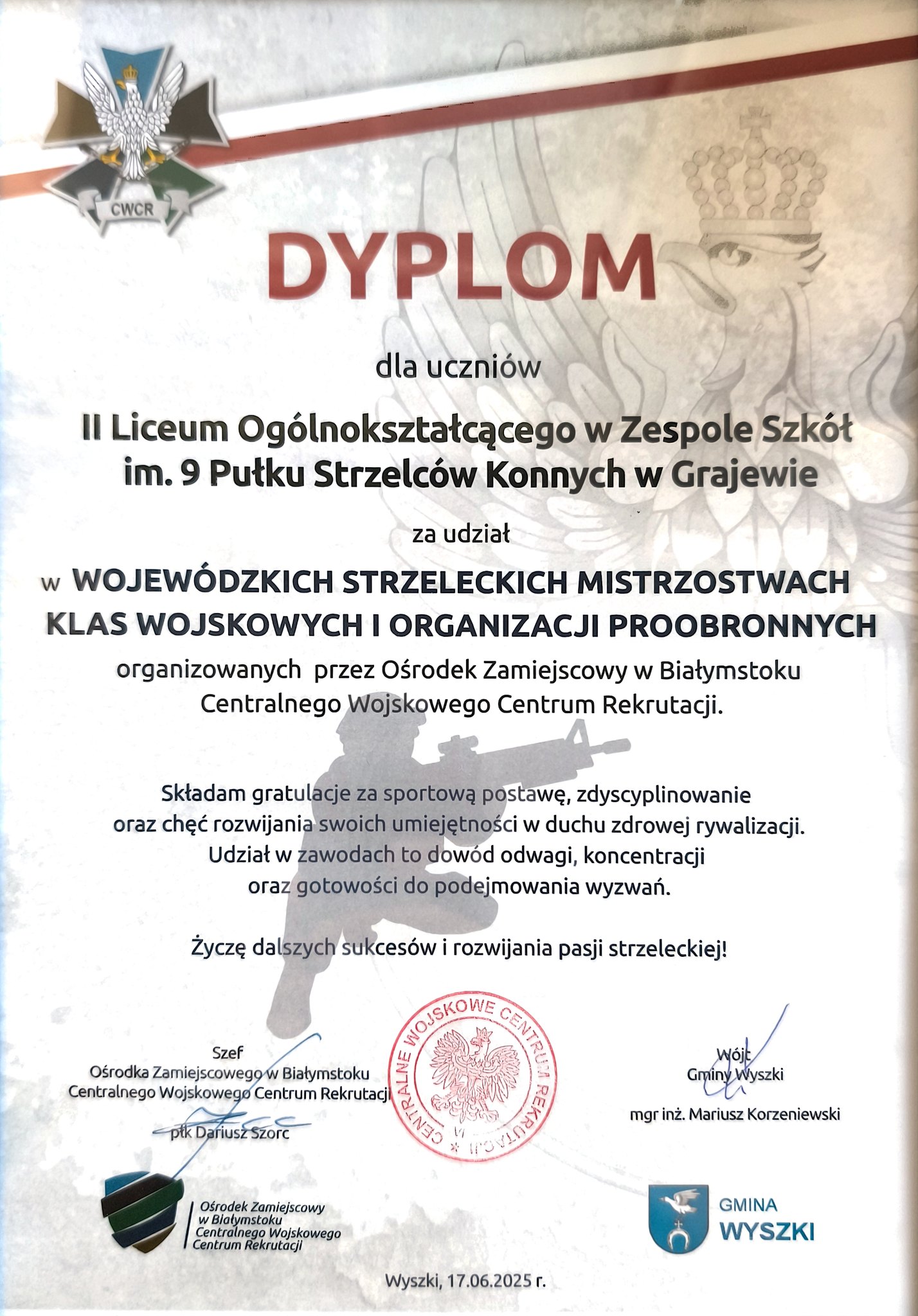W dniu 17 czerwca odbyły się Wojewódzkie Strzeleckie Mistrzostwa Klas Wojskowych i Organizacji Proobronnych, zorganizowane przez Ośrodek Zamiejscowy w Białymstoku Centralnego Wojskowego Centrum Rekrutacji.