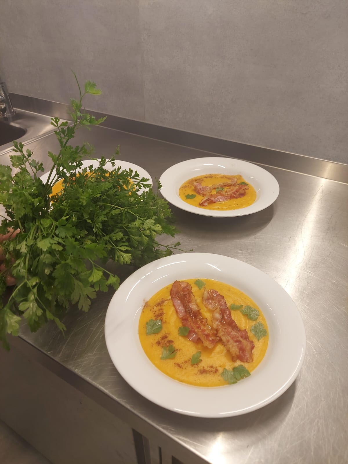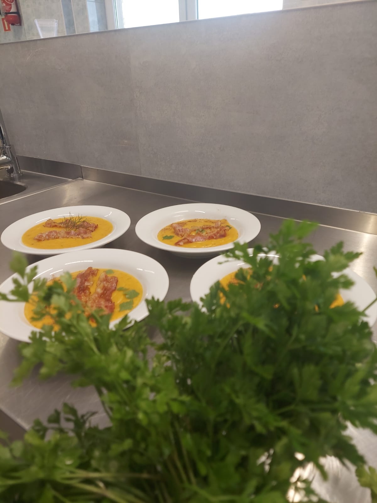 Jesień na talerzu Published 18 września 2025 | Autor: Paulina Agnieszka Skorupa Klasa 1a dziś serwuje pyszną, ziemniaczaną zupę krem z aromatycznymi chipsami z boczku.